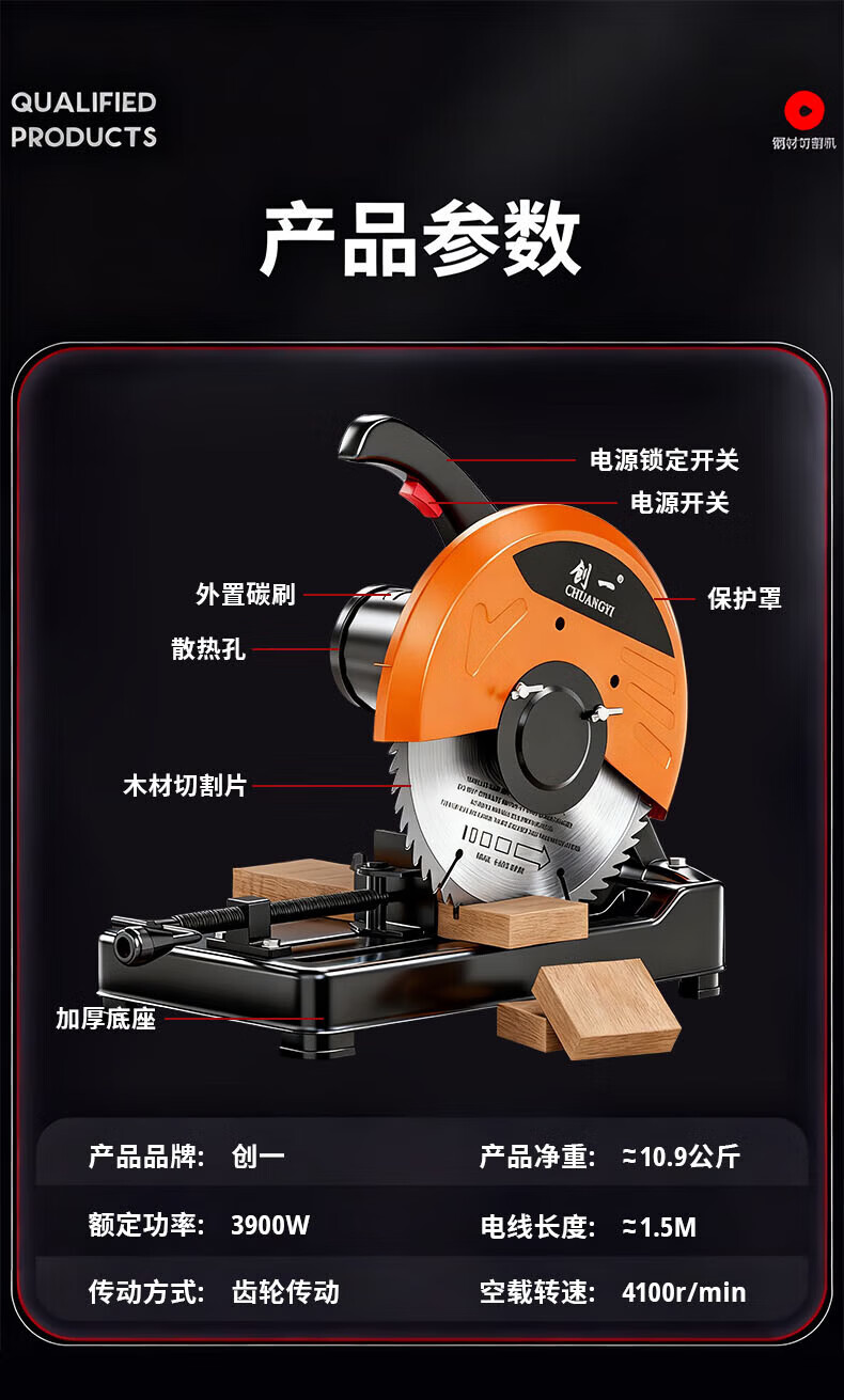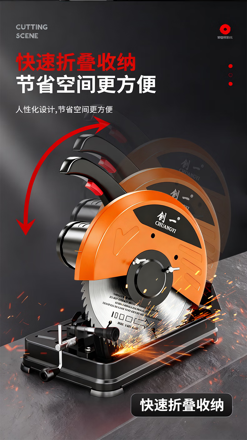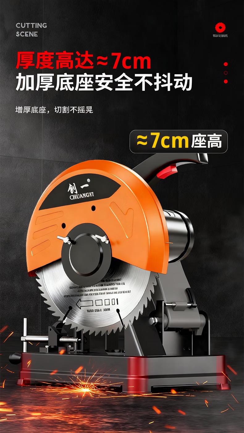Chuangyi profile cutting machine 355 high-power household multi-functional wood metal steel machine saw aluminum machine woodworking toothless saw heavy-duty reinforced model 1 14-inch woodworking sheet + 1 grinding wheel sheet