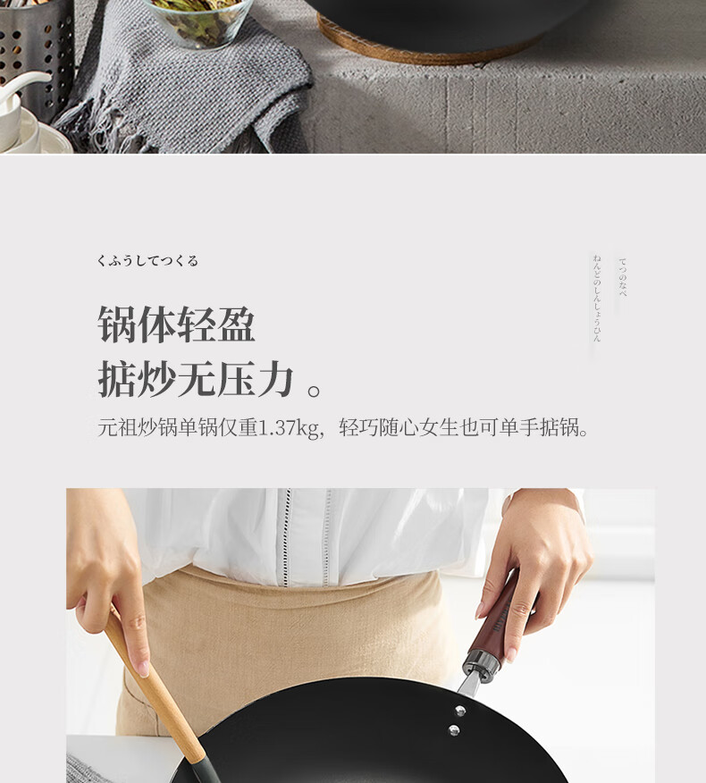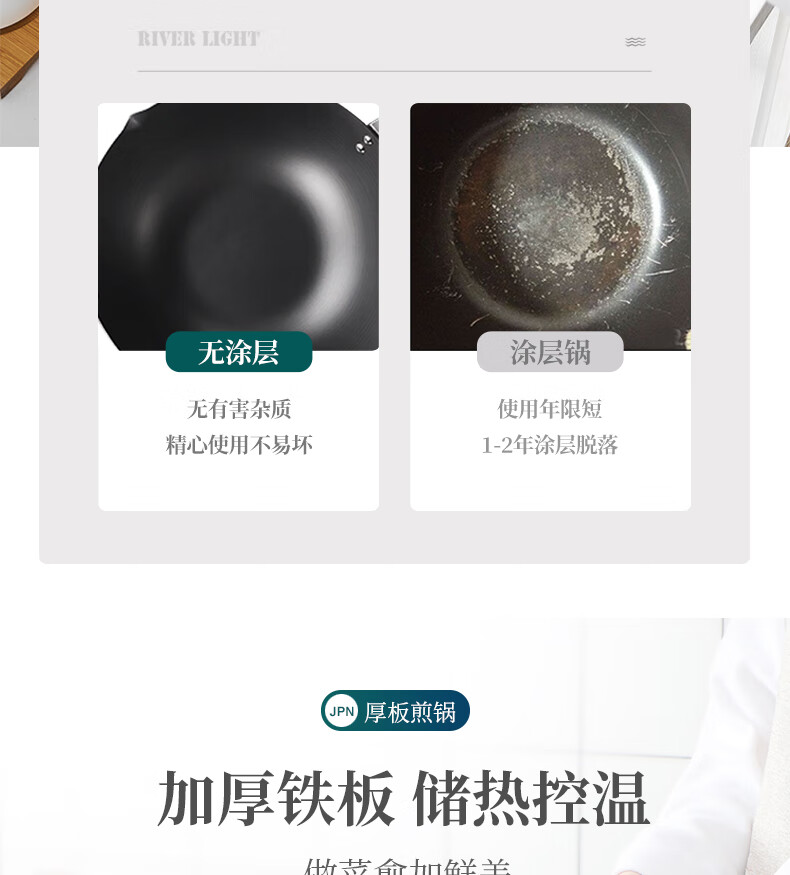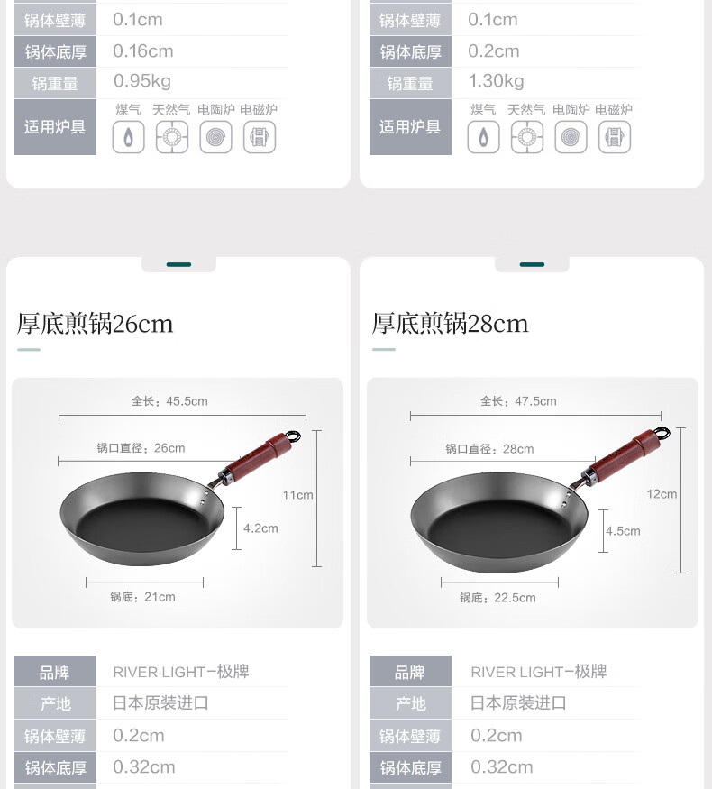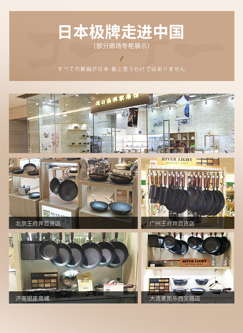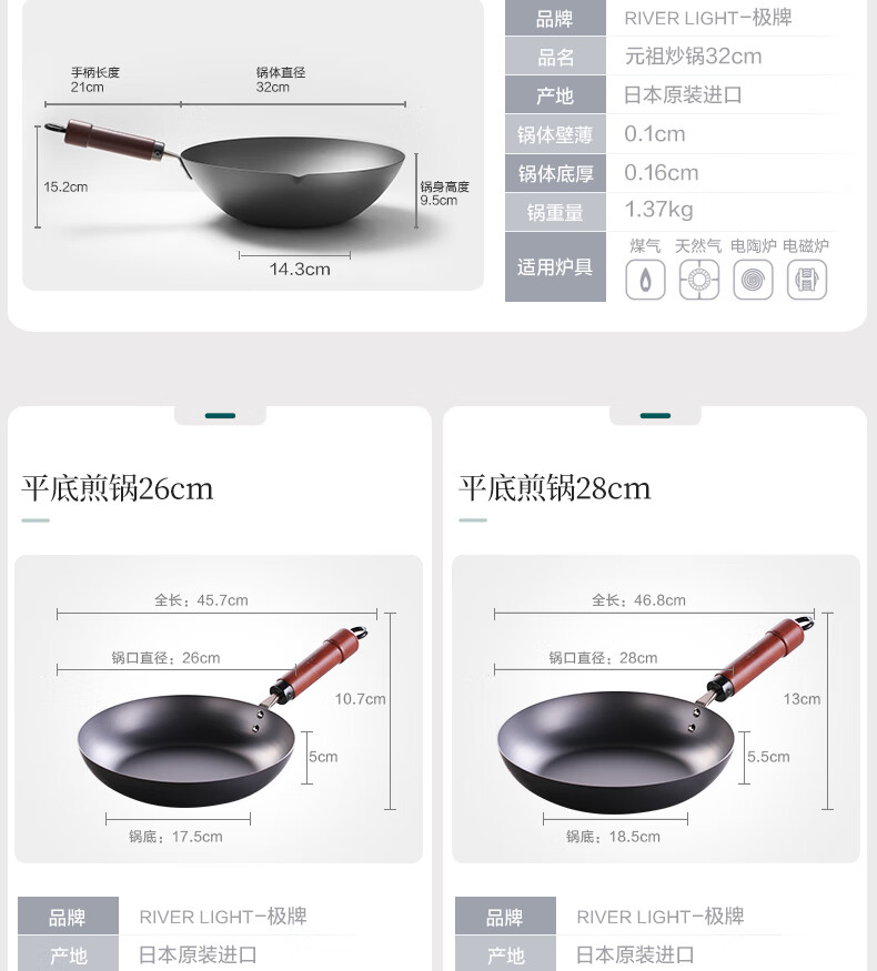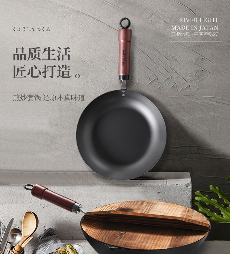 RIVER LIGHT Japanese original Riverlight brand iron pan 32cm household wok set five Yuanzu wok 35 + thick plate frying pan 26