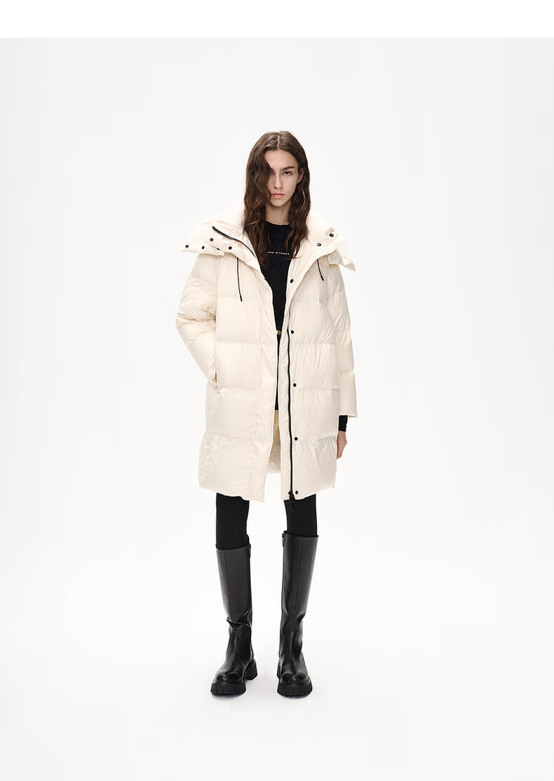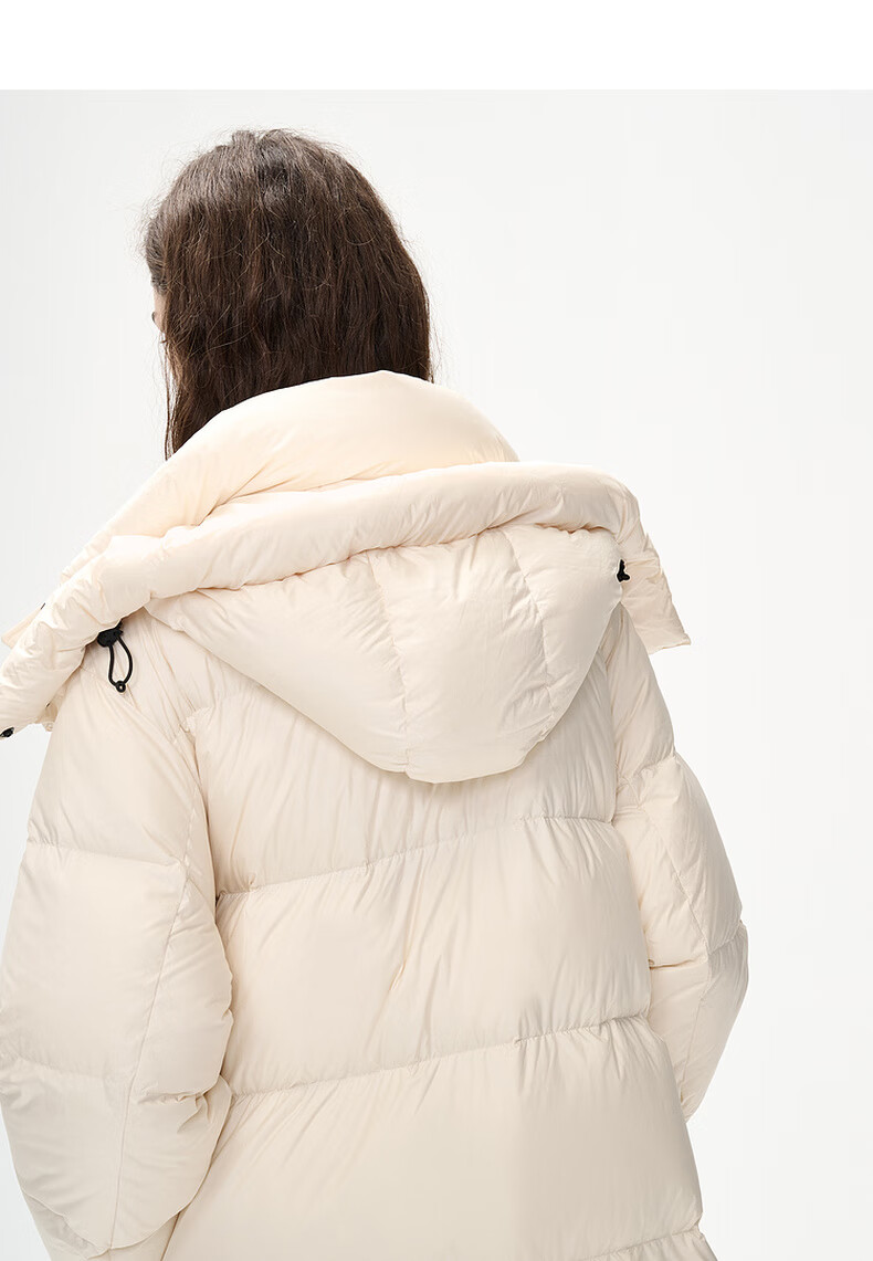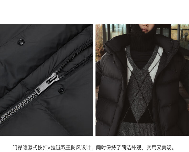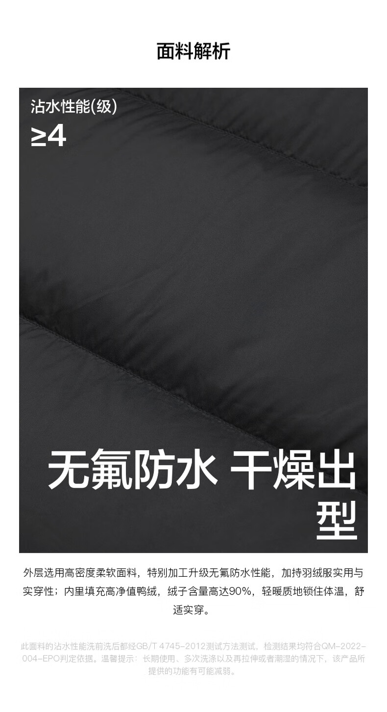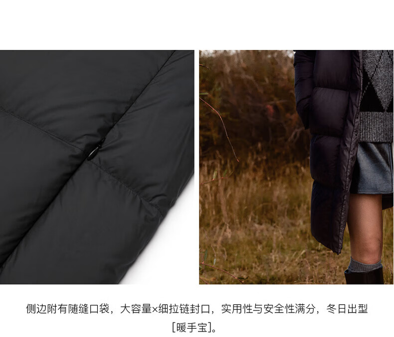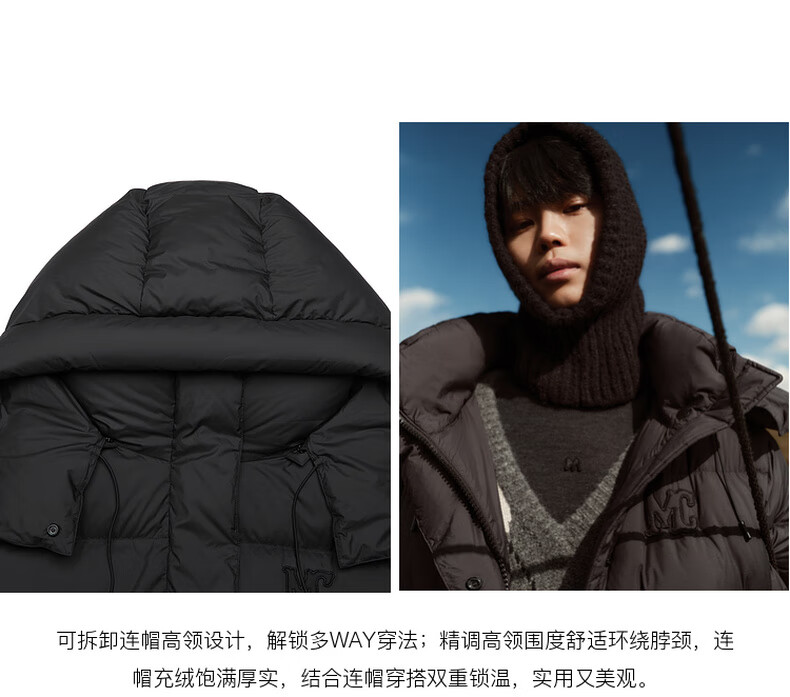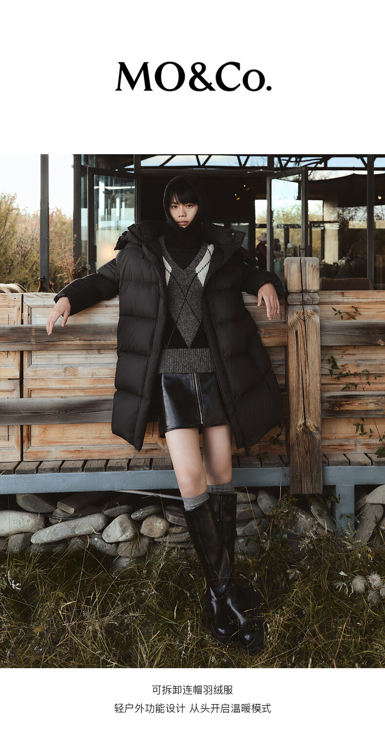 MO&Co. Down Jacket 90 velvet fluorine-free waterproof surface layer detachable hood head and neck integrated protection mid-length high fluffy light outdoor black S /160