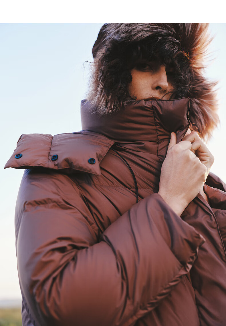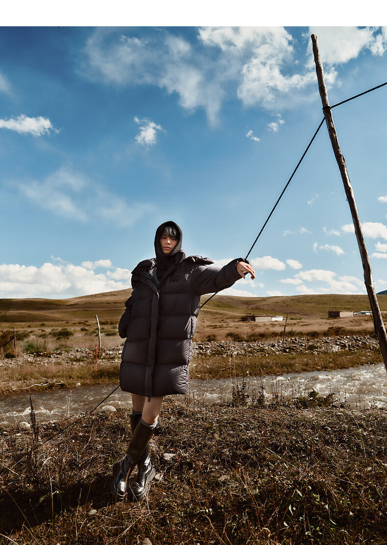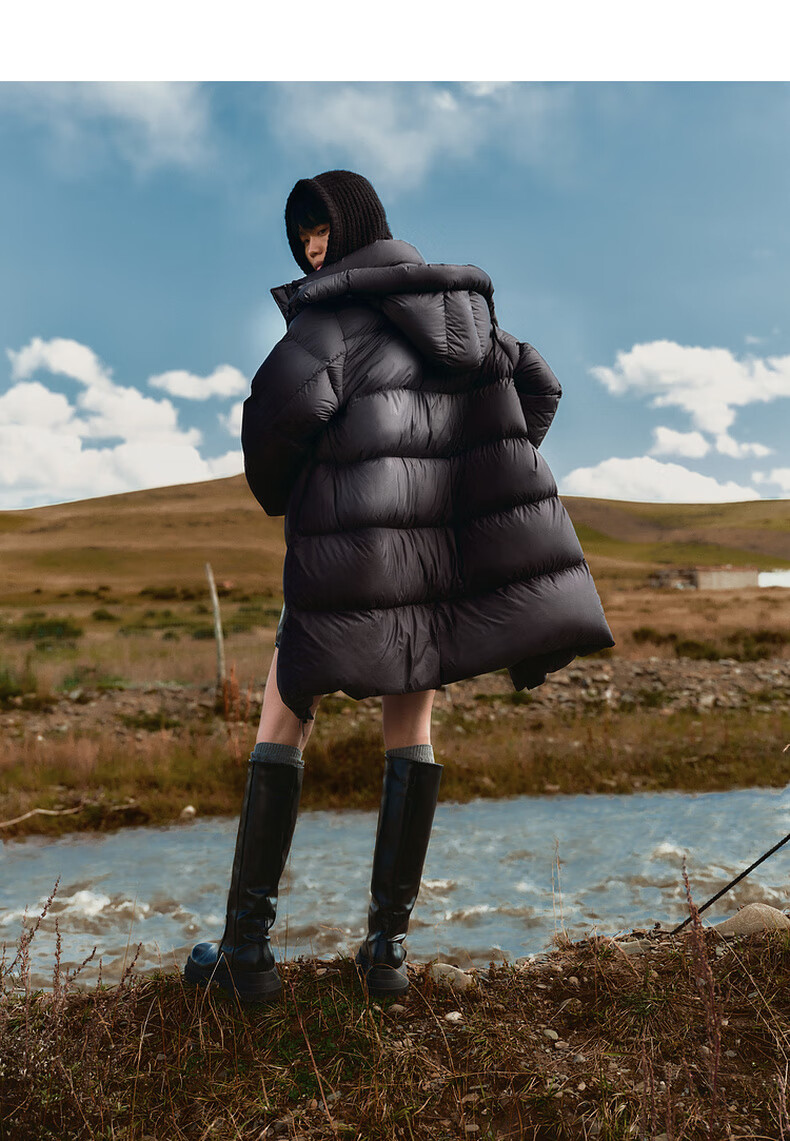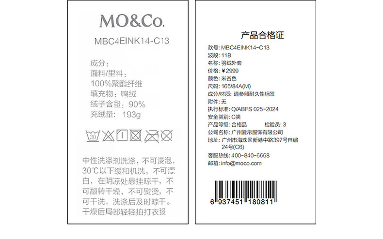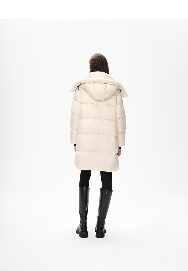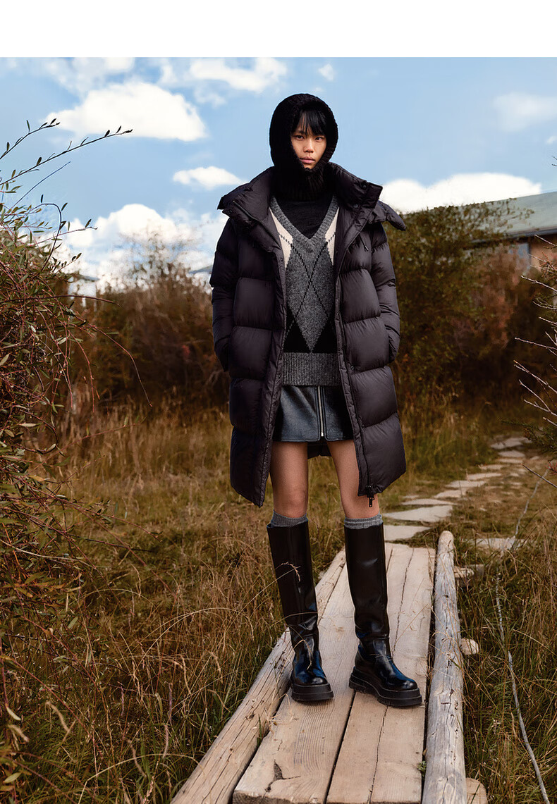 MO&Co. Down Jacket 90 velvet fluorine-free waterproof surface layer detachable hood head and neck integrated protection mid-length high fluffy light outdoor black S /160