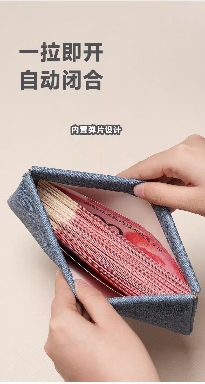 OIMG Large Capacity Women's 2025 New Cash Wallet Simple Coin Purse Lipstick Key Automatic Closing Storage Bag Dark Blue