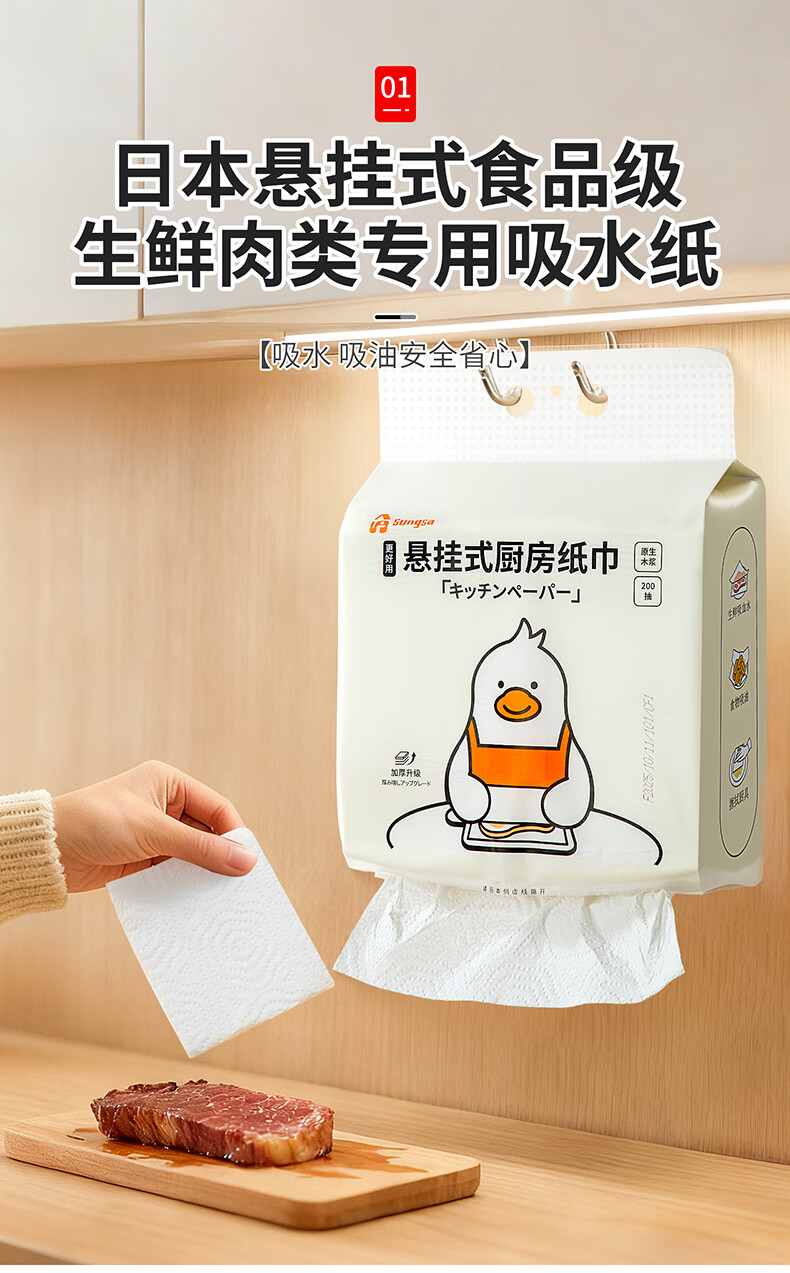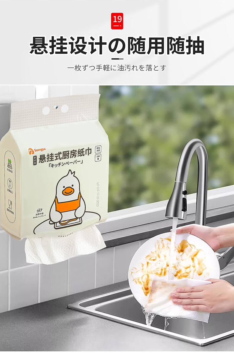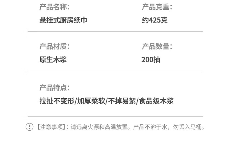 Home KATEI STORY Japanese kitchen paper towels hanging type 400 large pack kitchen special oil-absorbing paper paper removable cooking paper towels hanging type 1 layer 400 sheets*1 pack 233mm*190mm