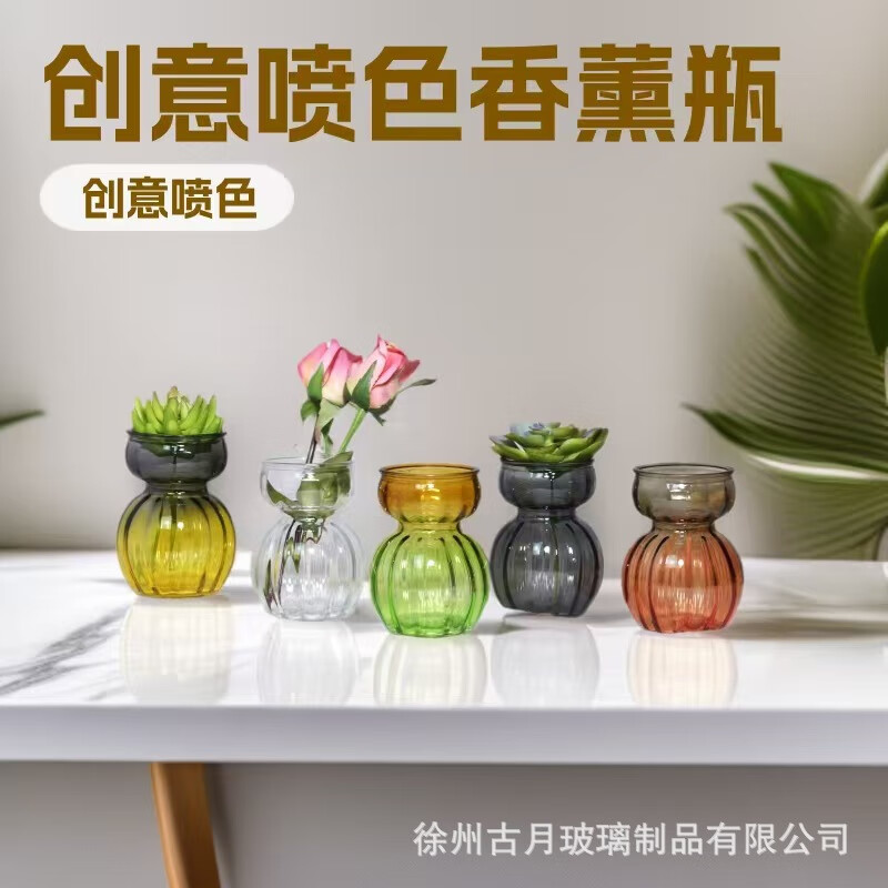 European style vertical pattern glass vase ins feng shui cultivated vase mini glass vase floor flower arrangement 1 piece snowman transparent glass vase