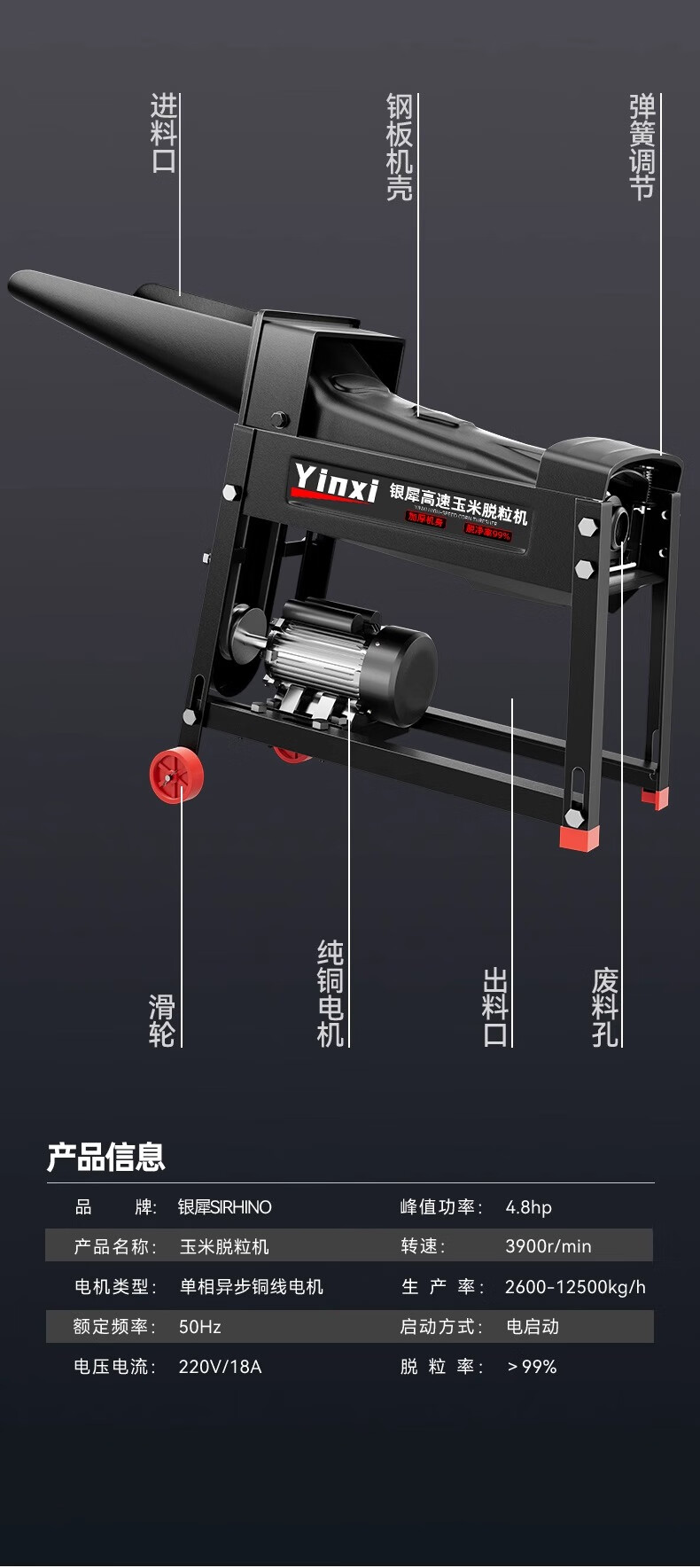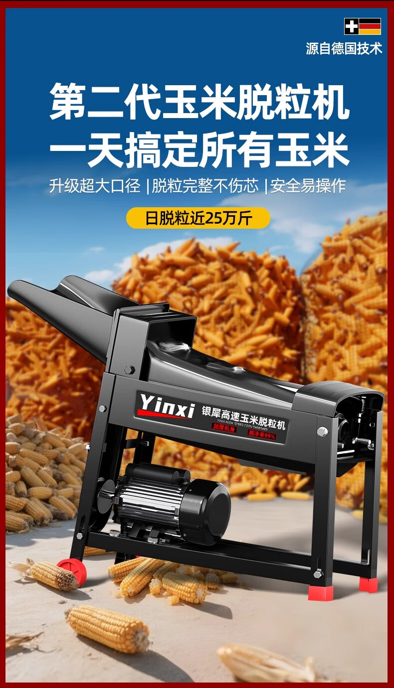 Yinxi (yinxi) new electric corn thresher, household small corn peeling artifact, automatic model 2025 type peeling and beating corn, high efficiency, large diameter single barrel sharp model, does not include motor, comes with belt thickened steel plate