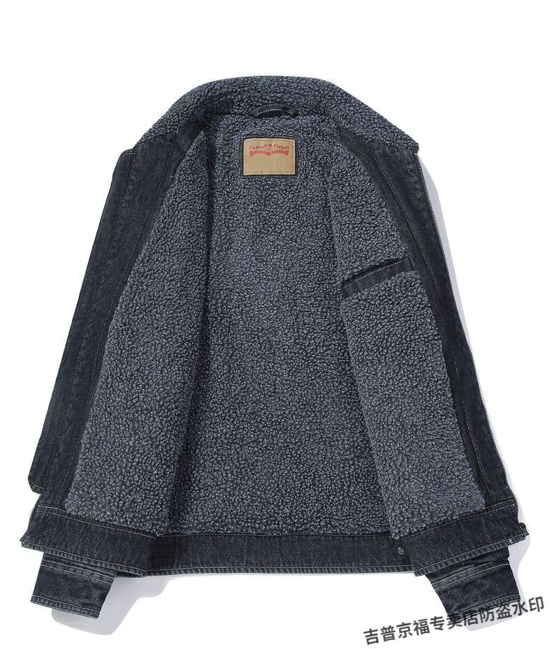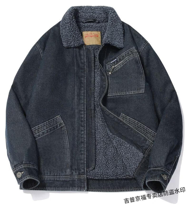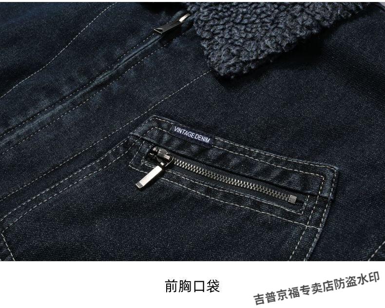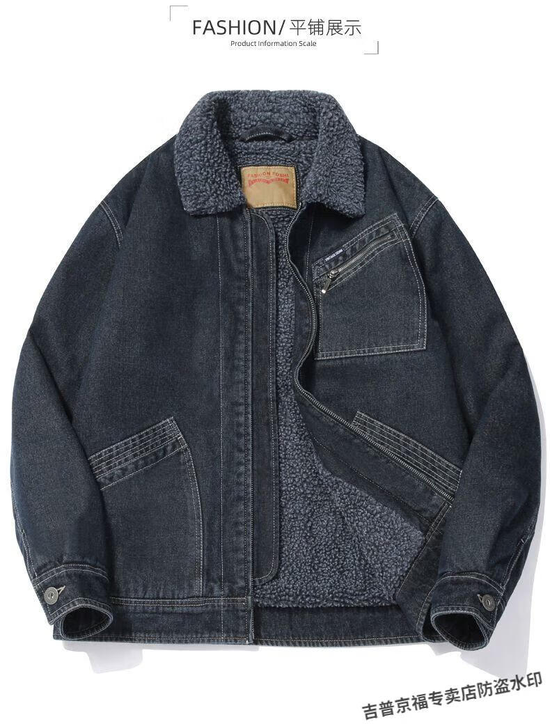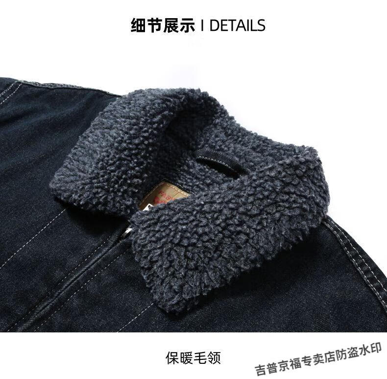 JEEP SPIRIT Jeep Denim Jacket Men's Autumn and Winter Casual Loose Jacket Cotton Clothing American Retro Workwear Lamb's Velvet Cotton Retro Blue XL