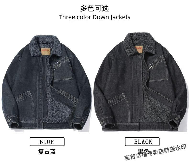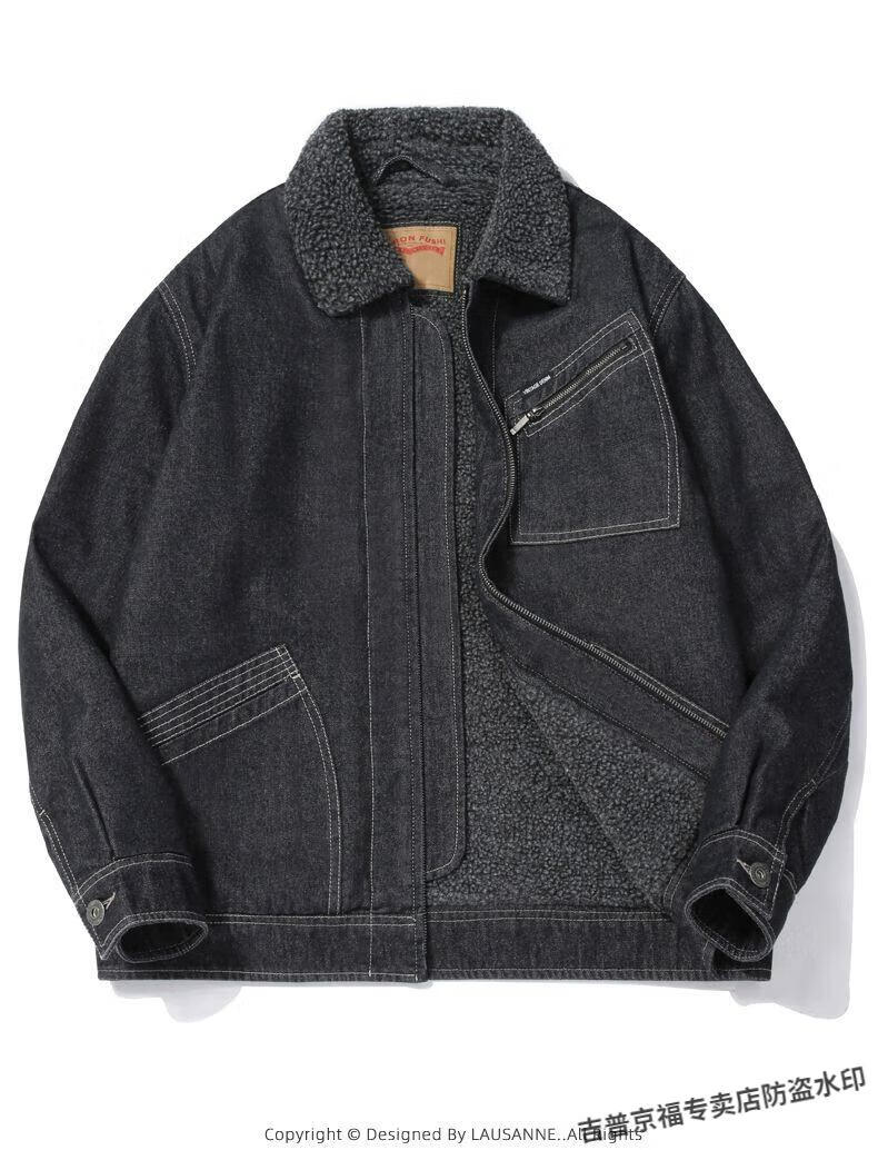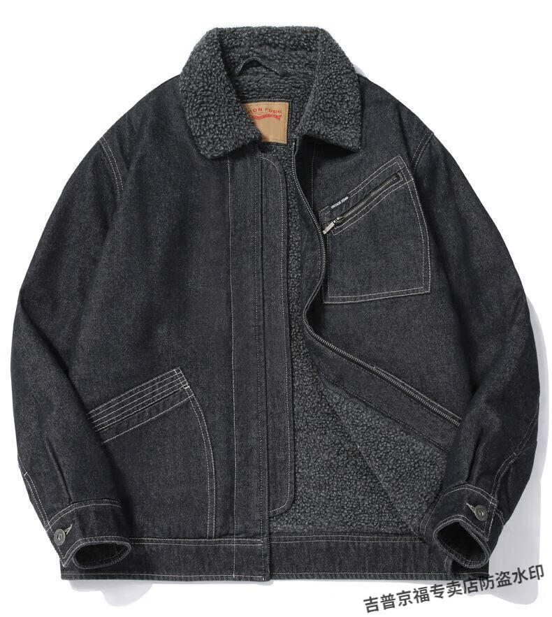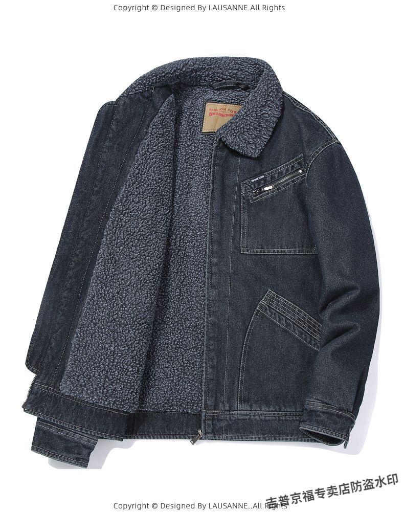 JEEP SPIRIT Jeep Denim Jacket Men's Autumn and Winter Casual Loose Jacket Cotton Clothing American Retro Workwear Lamb's Velvet Cotton Retro Blue XL