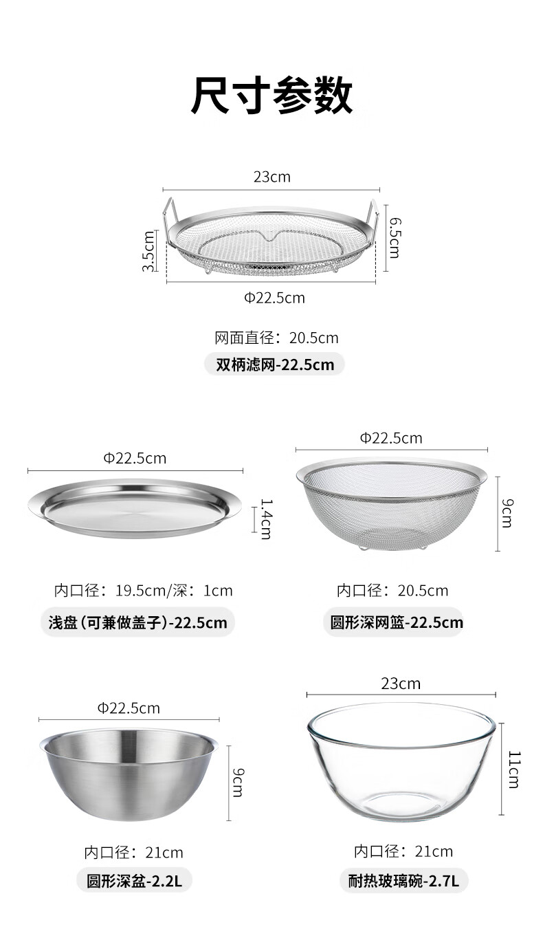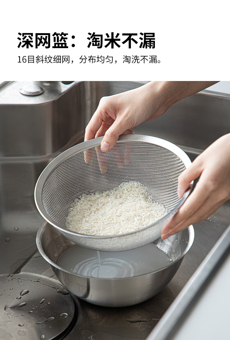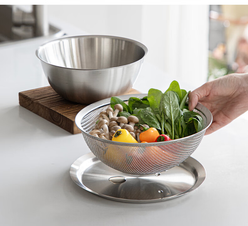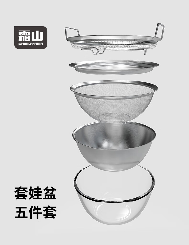 Frost Mountain Matryoshka Basin 304 Stainless Steel Kitchen Dish Basin Drain Basket Washing Basin Egg Beating and Noodle Strainer Five-piece Set *Jingdong Exclusive Kitchen Cooking 5-piece Set