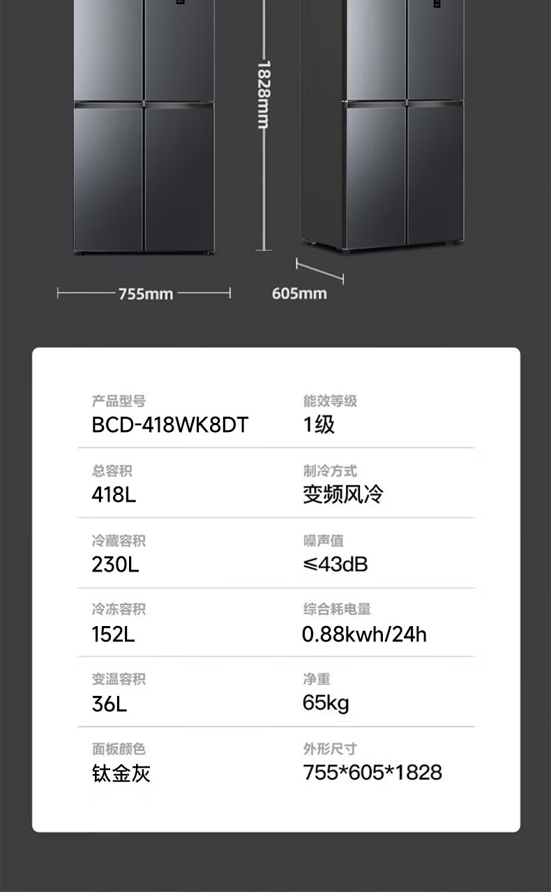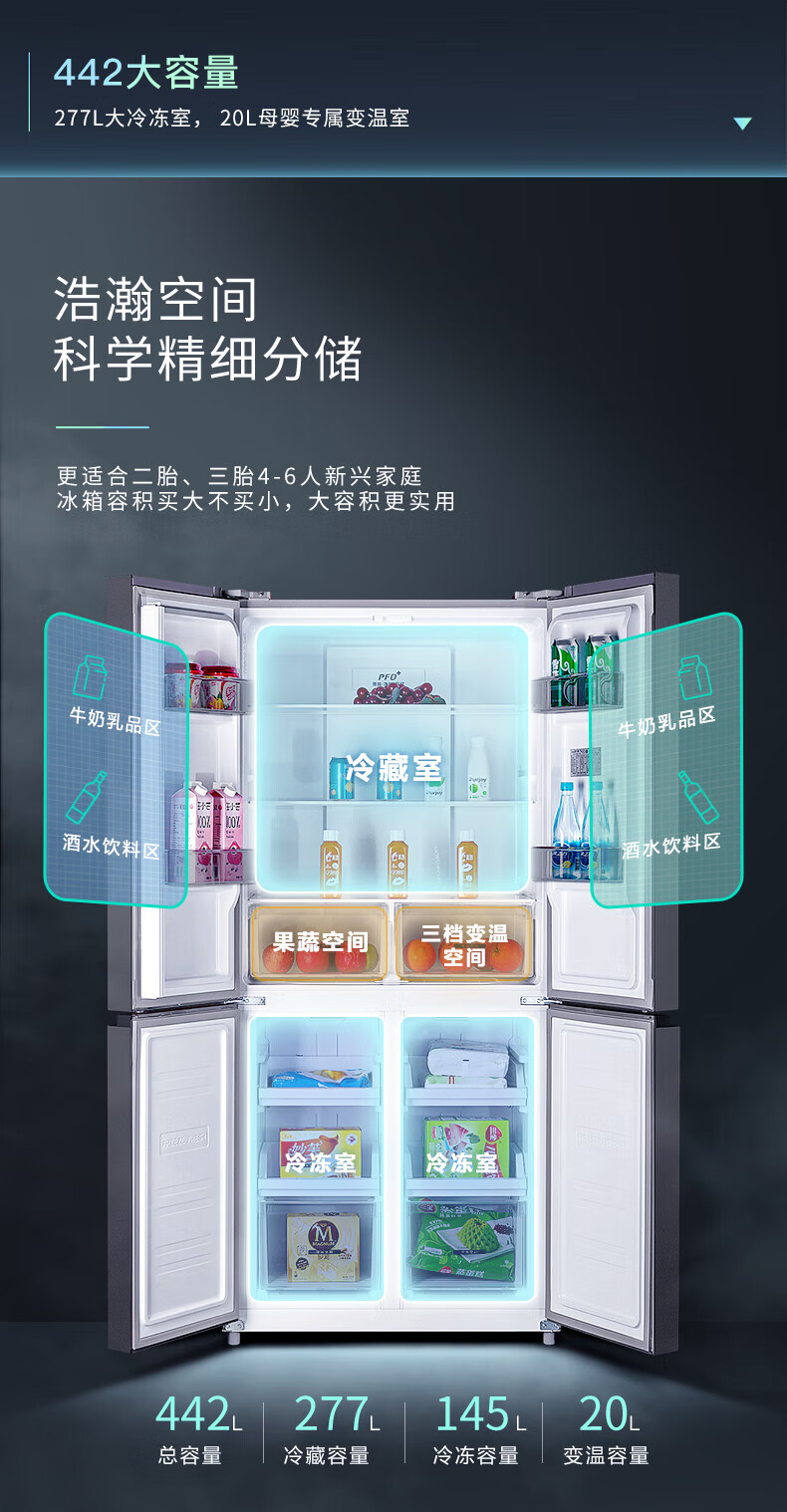 Xinfei (Frestec) household refrigerator cross door refrigerator four-door air-cooled frost-free first-class energy efficiency variable frequency large-capacity energy-saving refrigerator 418 liters ~ refrigerator cross door ~ first-class energy efficiency ~ white model