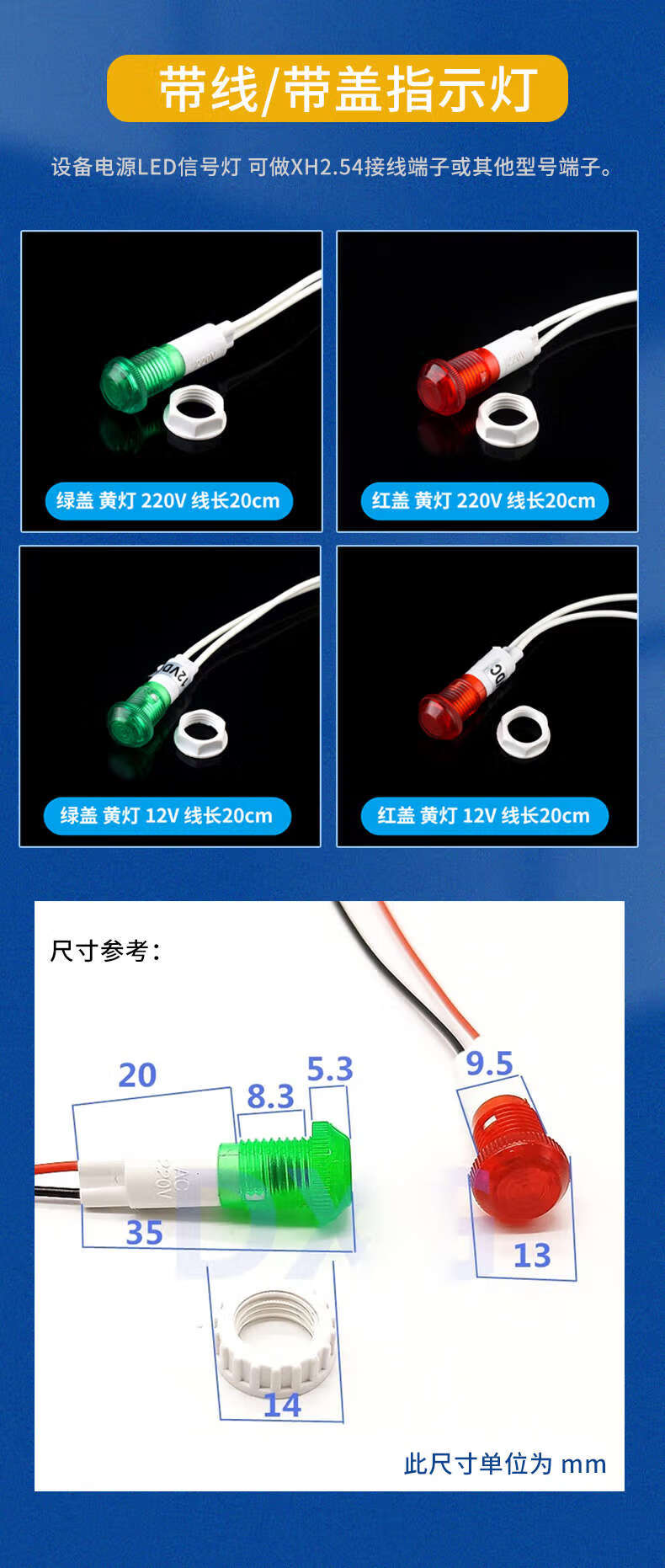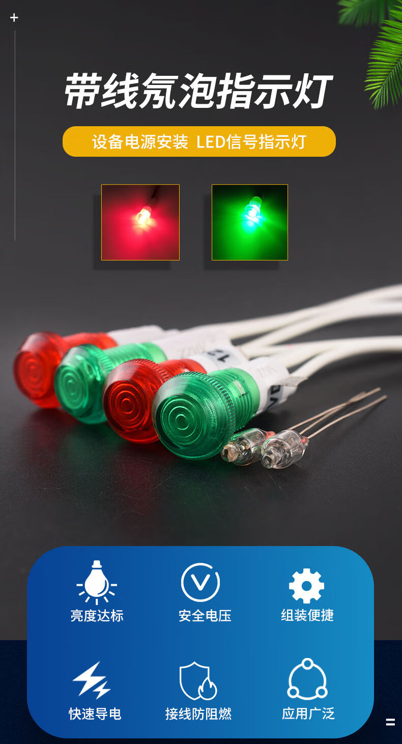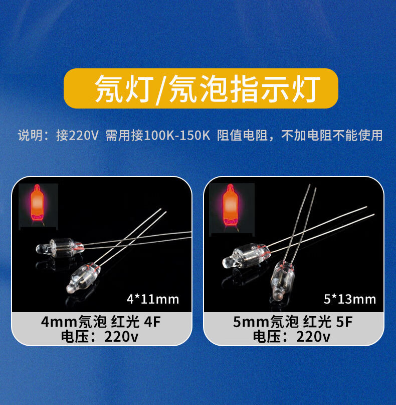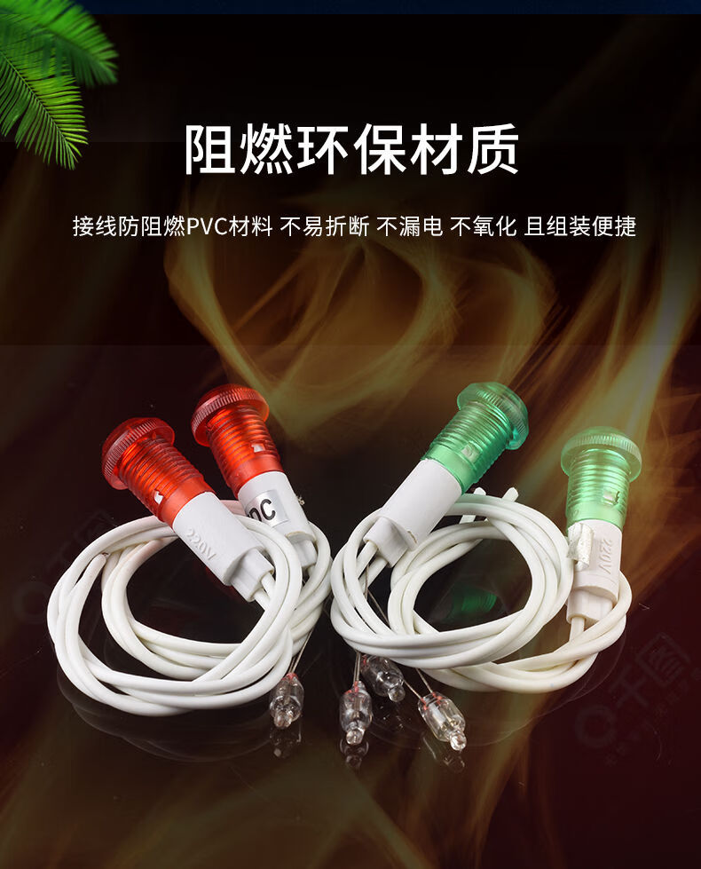 Small 220V plastic indicator with line indicator light neon bulb 12v equipment working power supply signal light opening 10M 4mm neon bulb red light (5 pieces)