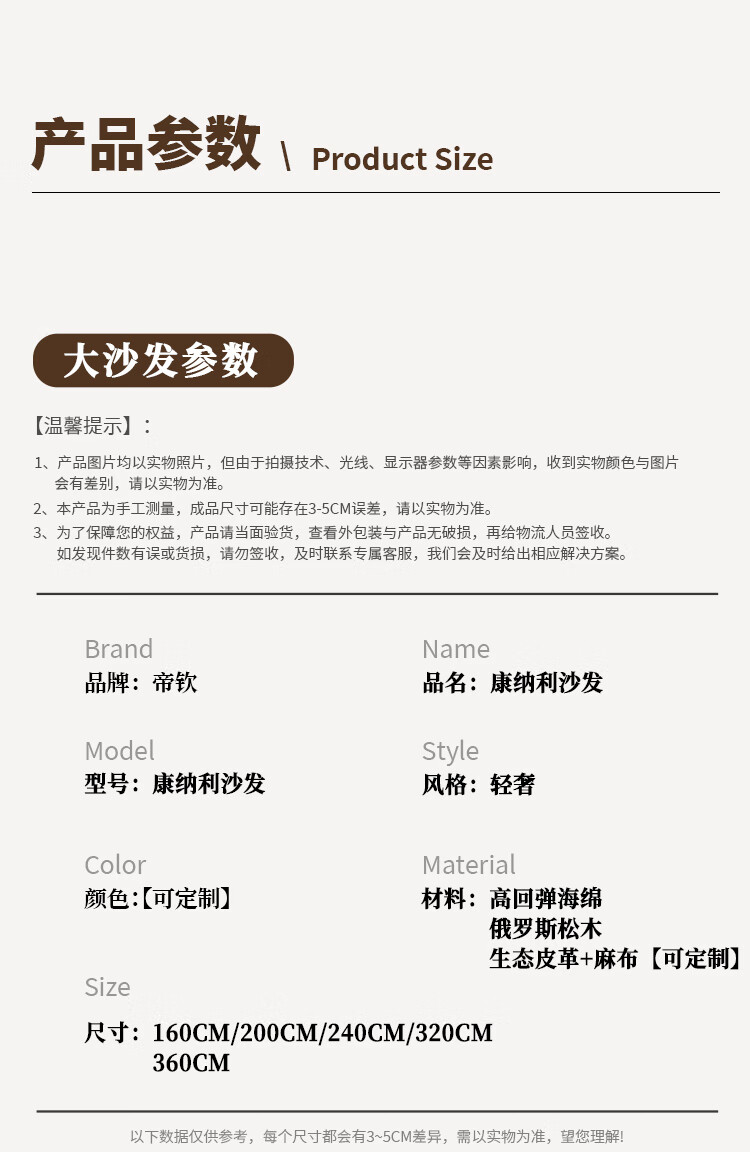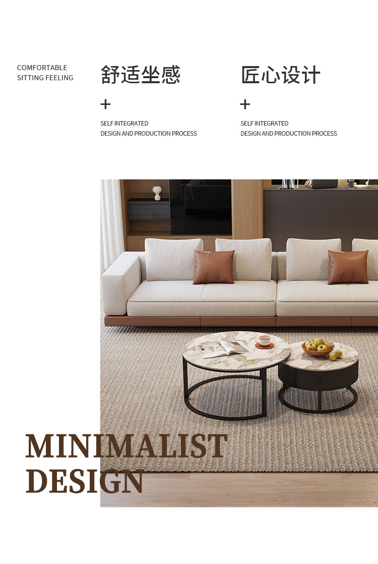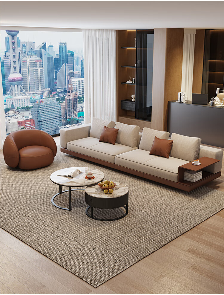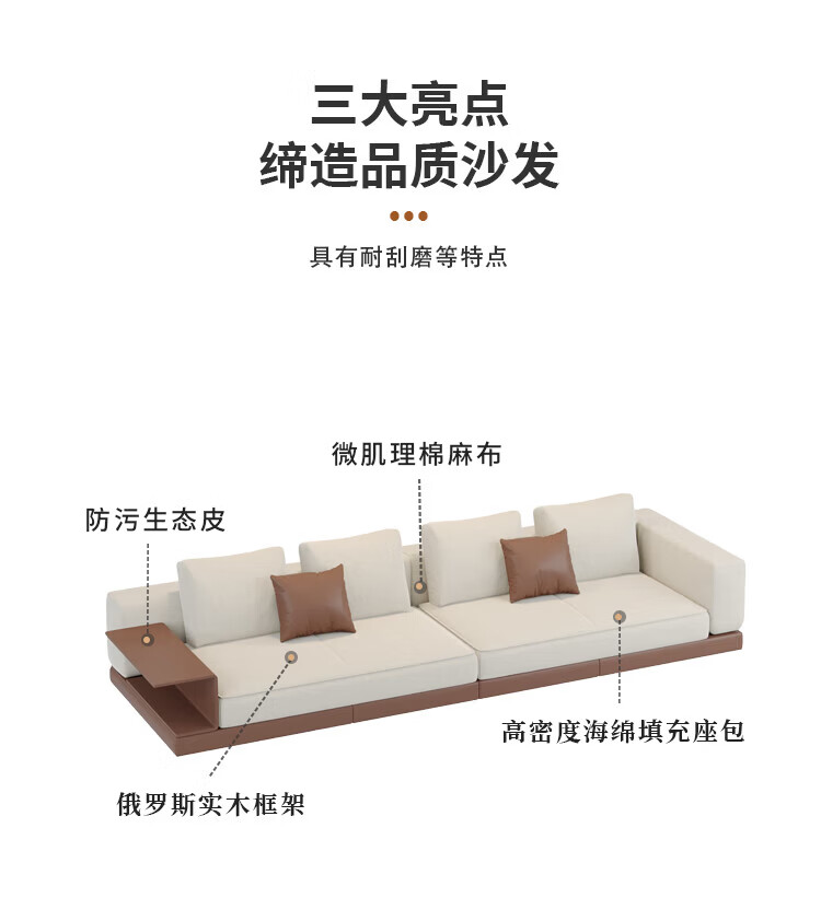 Huida Connery sofa living room 2025 new home small apartment straight-line fabric cotton and linen sofa coffee table set four-person 2.4-meter sofa (segmented)