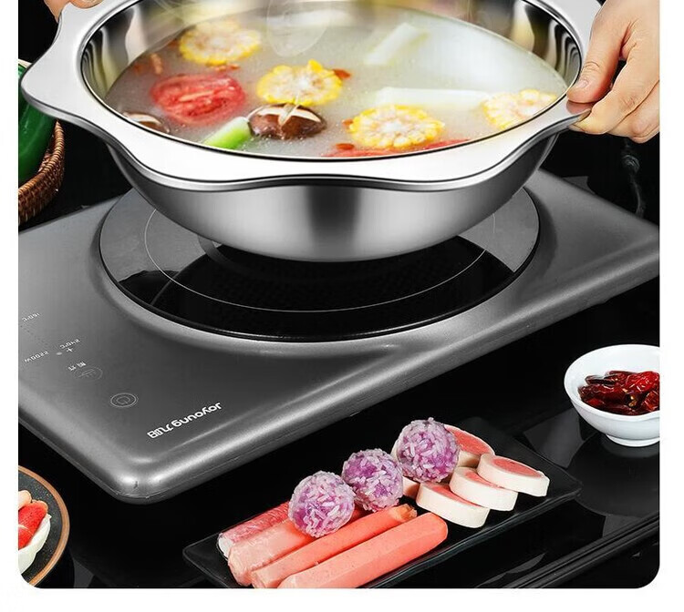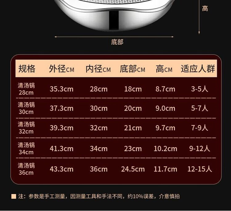 HKNA stainless steel hot pot basin thickened clear soup pot household induction cooker special large capacity commercial restaurant hot pot pot upgraded 36cm clear soup pot 36cm