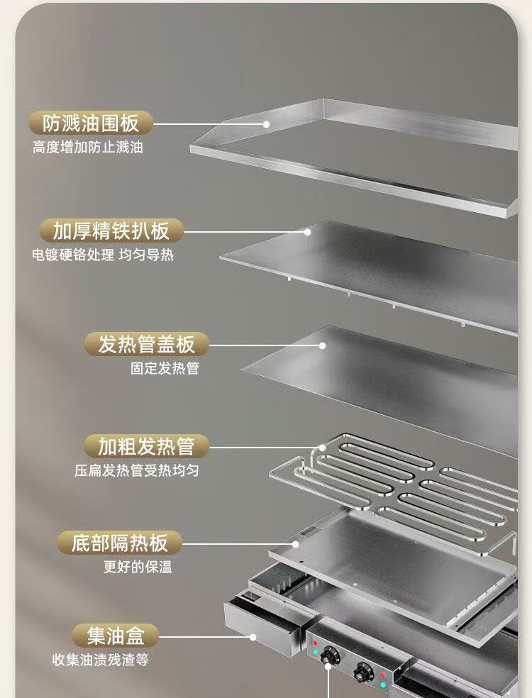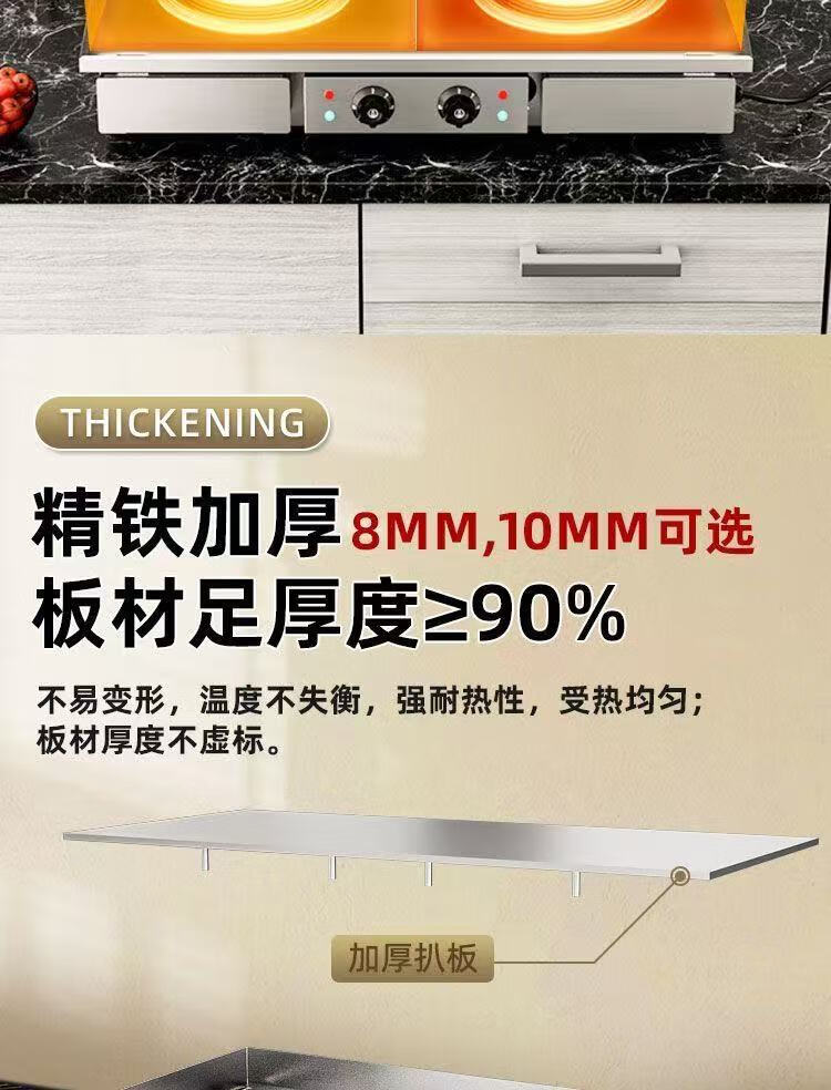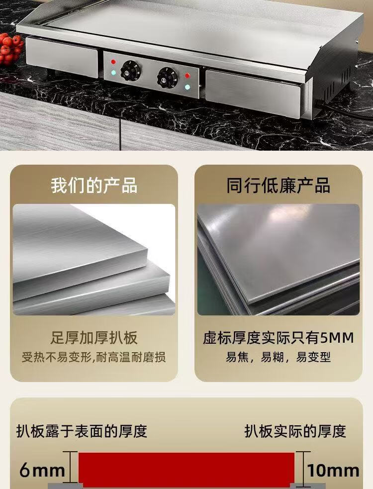 Non-black electric griddle commercial mirror Teppanyaki hand cake machine tofu grilled cold noodles fried squid steak egg fried rice chrome mirror 100*40 genuine recommendation 10mm