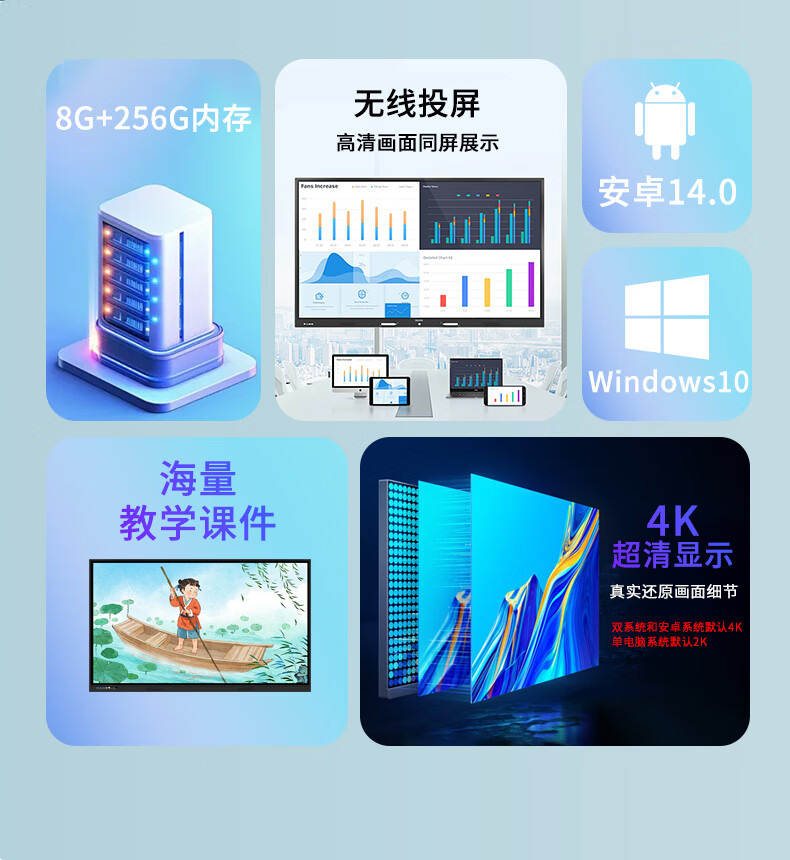 Shiji smart screen teaching all-in-one machine conference room touch screen multimedia teaching conference flat-panel TV electronic whiteboard touch training education screen projection video conferencing all-in-one machine 55-inch national standard dual system 4K i5/8+256+ camera video conferencing