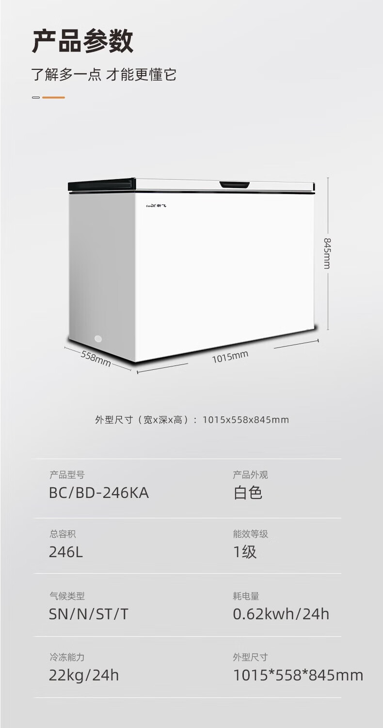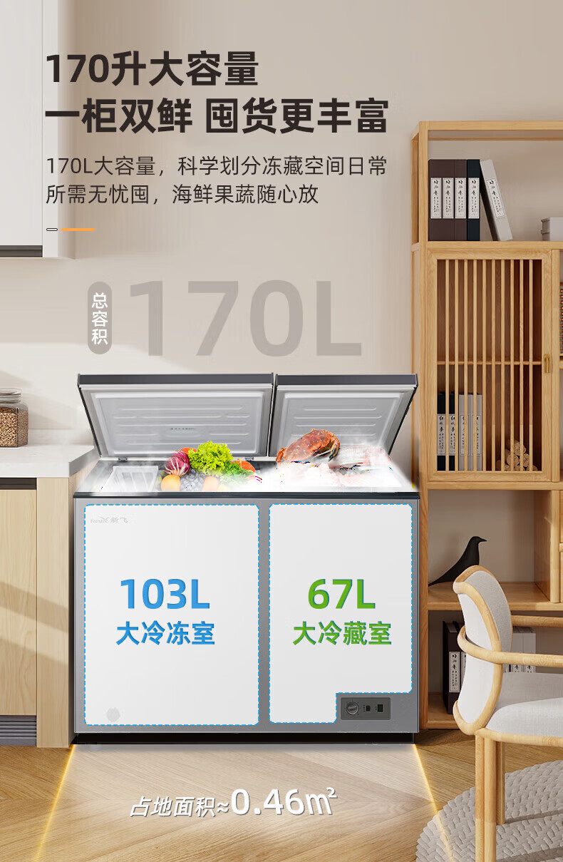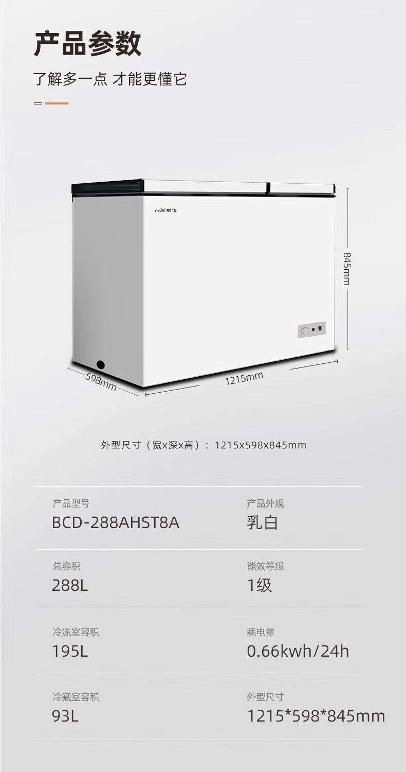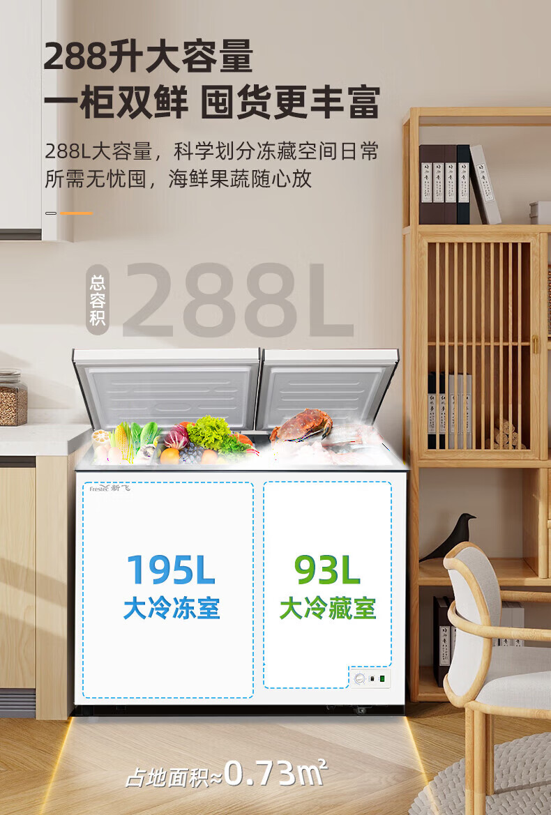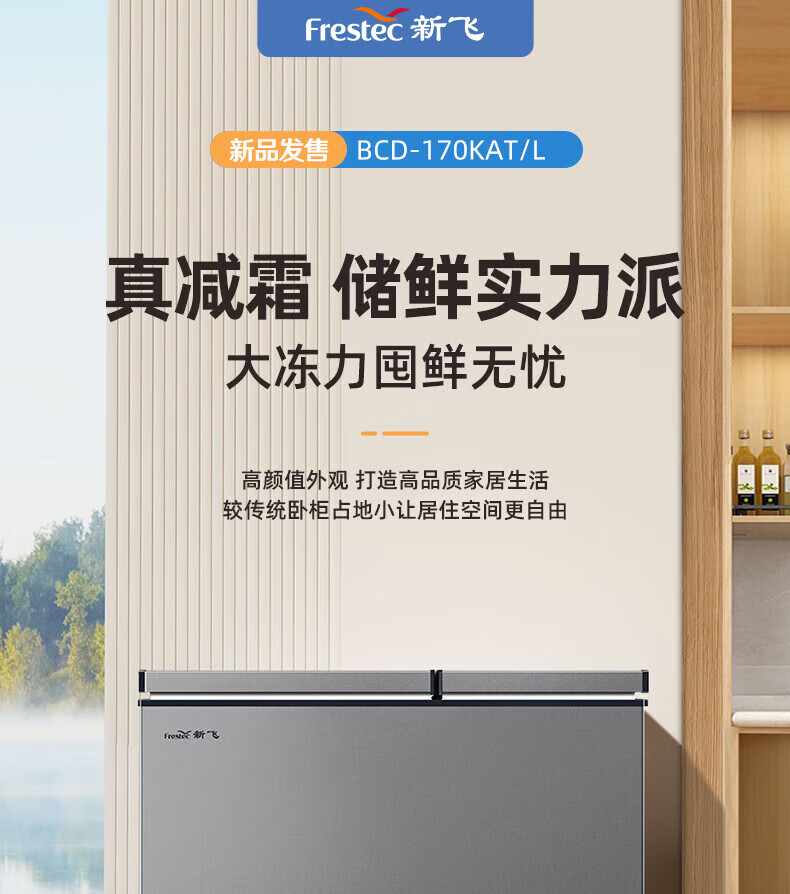 Frestec large-capacity freezer, first-class energy efficiency, large refrigeration power, refrigeration and freezing conversion, household and commercial variable temperature freezer, single temperature direct cooling, 100 liters, first-class energy efficiency