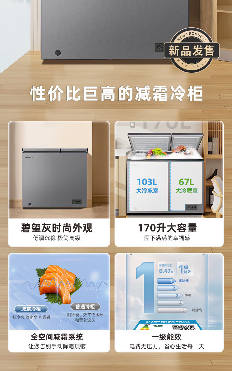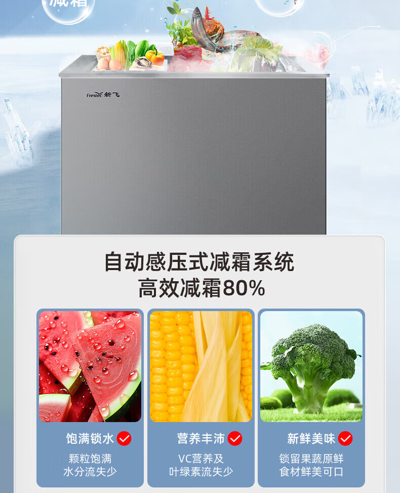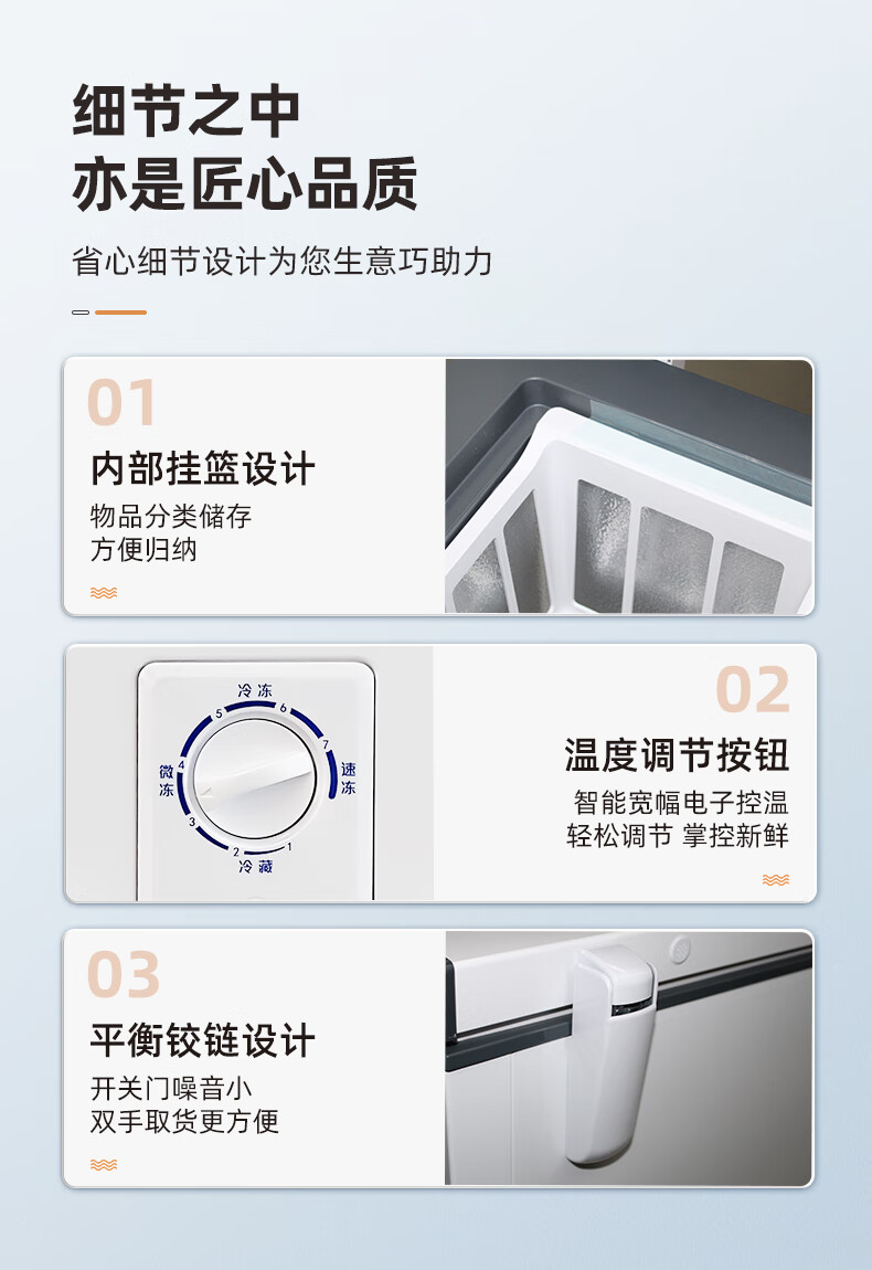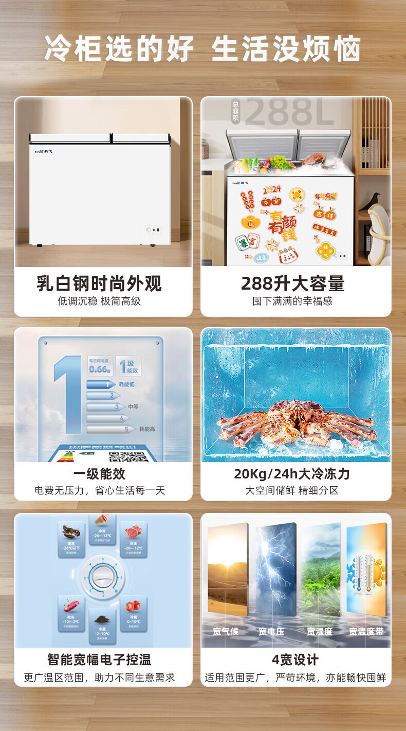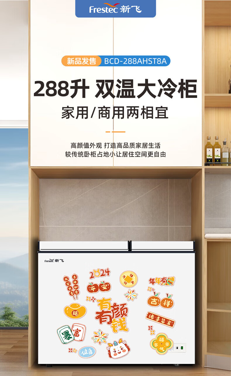 Frestec large-capacity freezer, first-class energy efficiency, large refrigeration power, refrigeration and freezing conversion, household and commercial variable temperature freezer, single temperature direct cooling, 100 liters, first-class energy efficiency