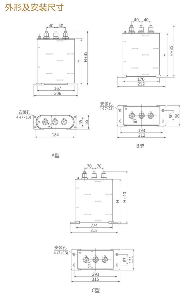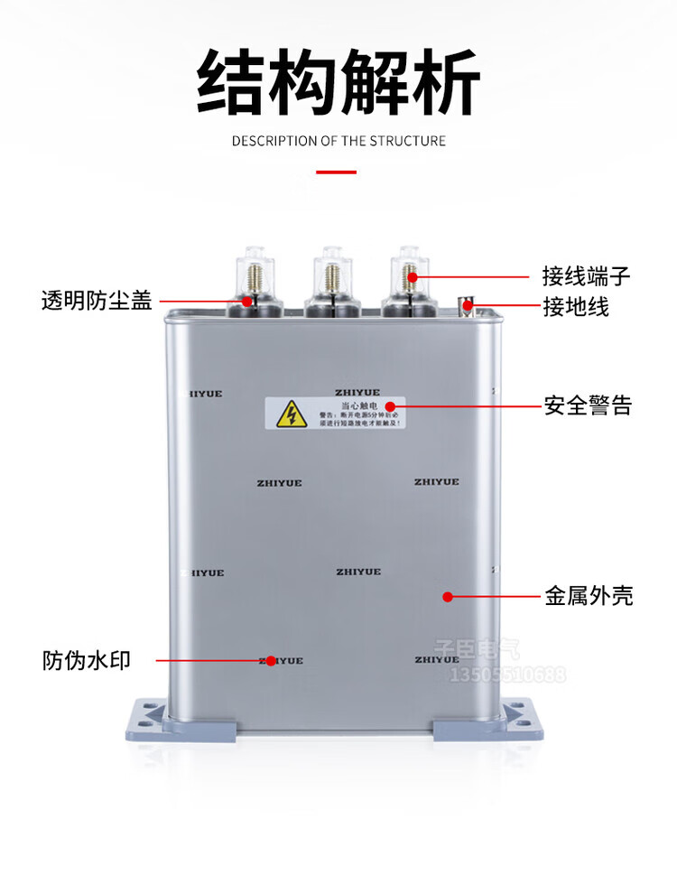 ZHIYUE reactive power compensation self-healing capacitor BSMJ0.4 0.45-15-3 low-voltage parallel power compensator BSMJ0.25-30-3YN (sub-compensation capacitor)