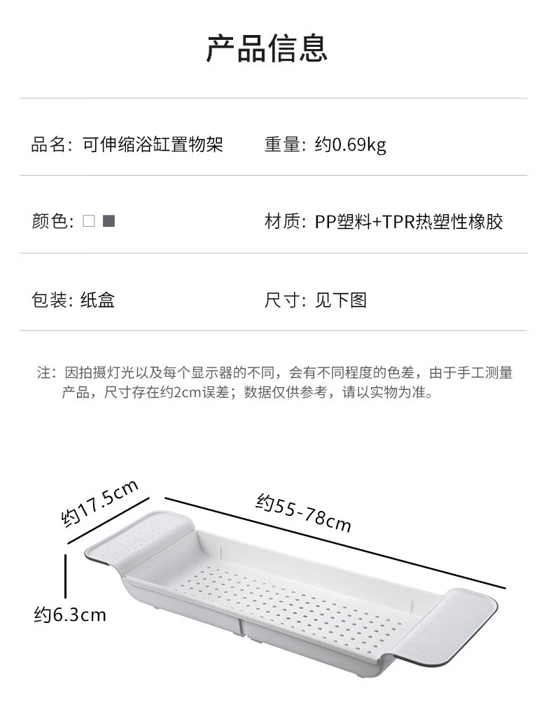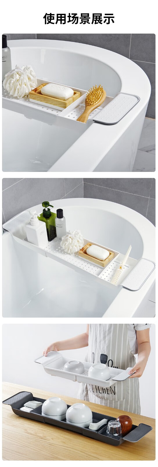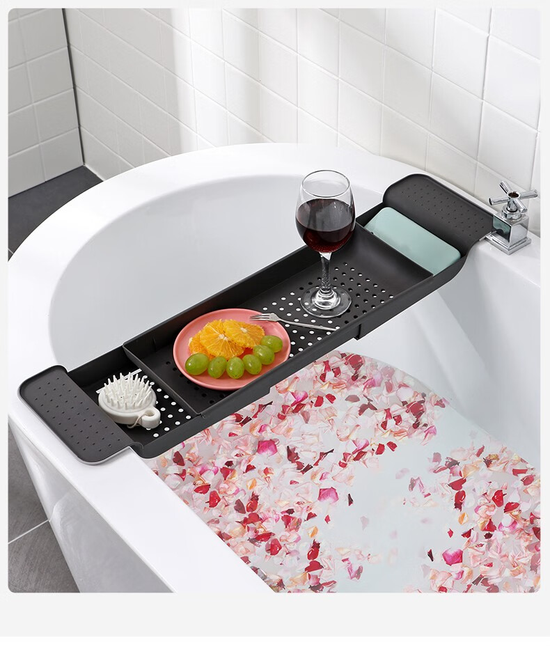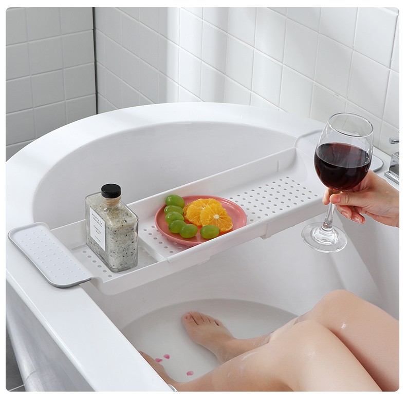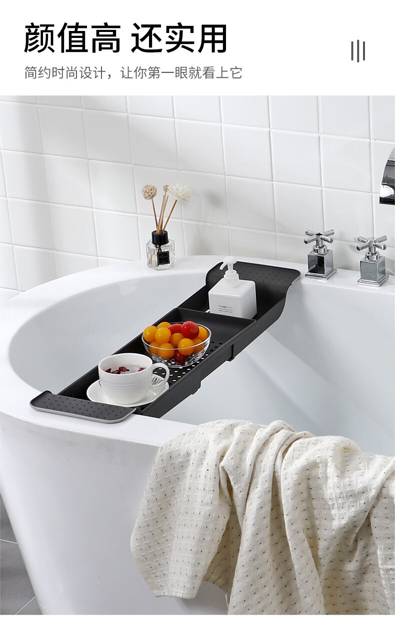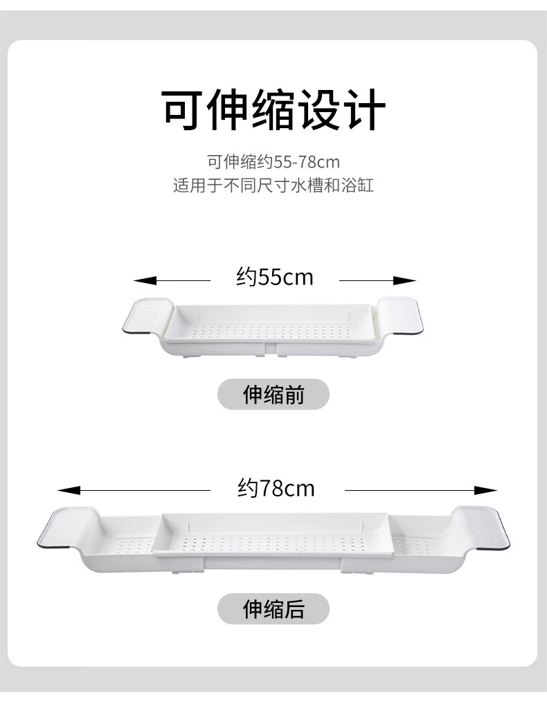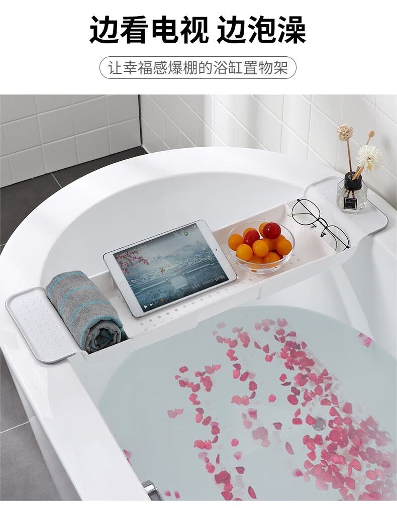 Jiyunmao Japanese-style bathtub storage rack retractable drain bath tub mobile phone holder multi-functional bath rack elegant white