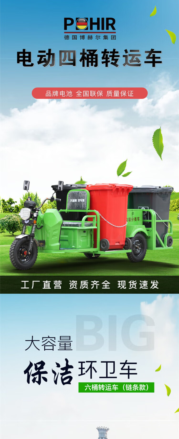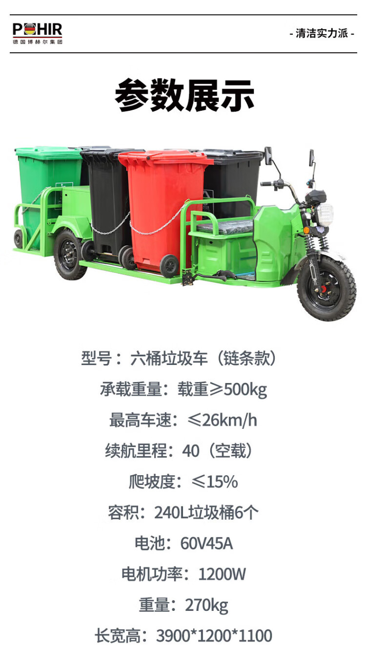 POHIR Garbage Removal Truck Six-Bucket Trash Can Electric Transfer Truck Garbage Truck Sanitation Truck Multi-Function Cleaning Truck 800L Garbage Truck