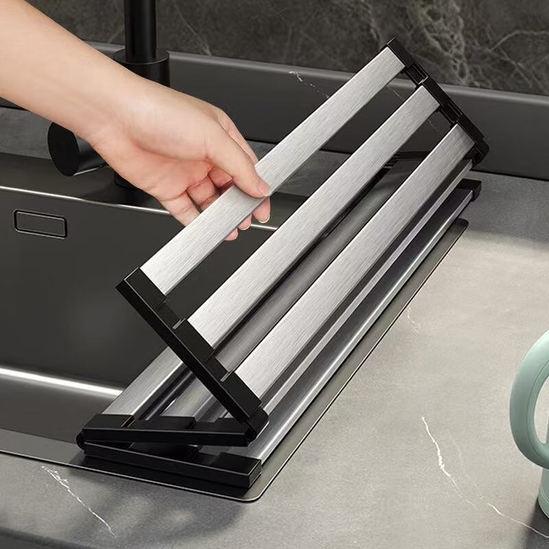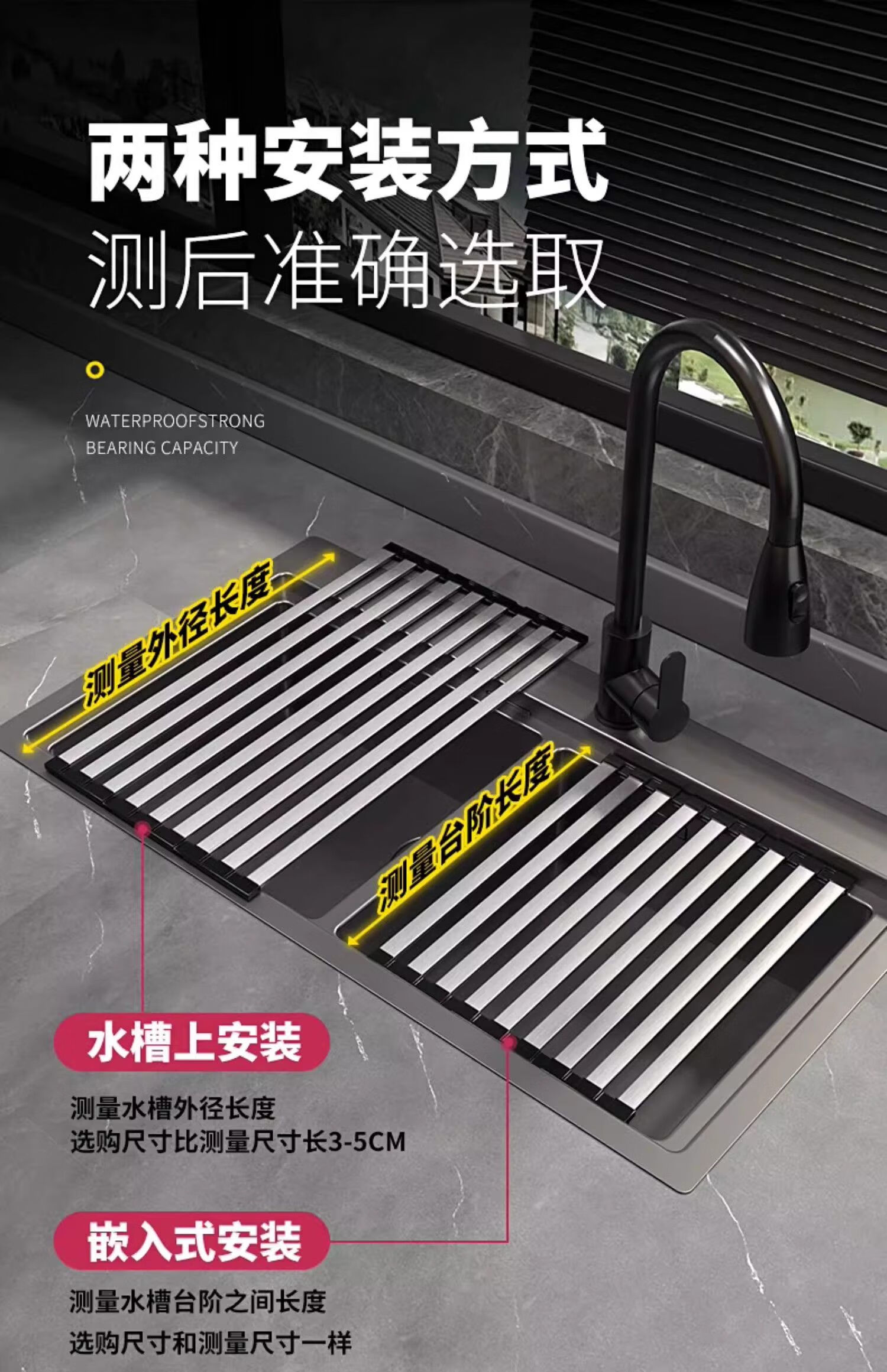 Wen Yijia kitchen sink drain rack 304 stainless steel foldable wash basin water filter roller curtain pool drain basket storage rack 32.5*35cm drain rack 304 material