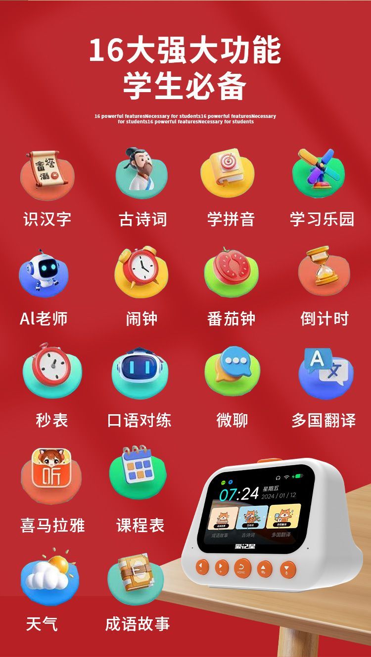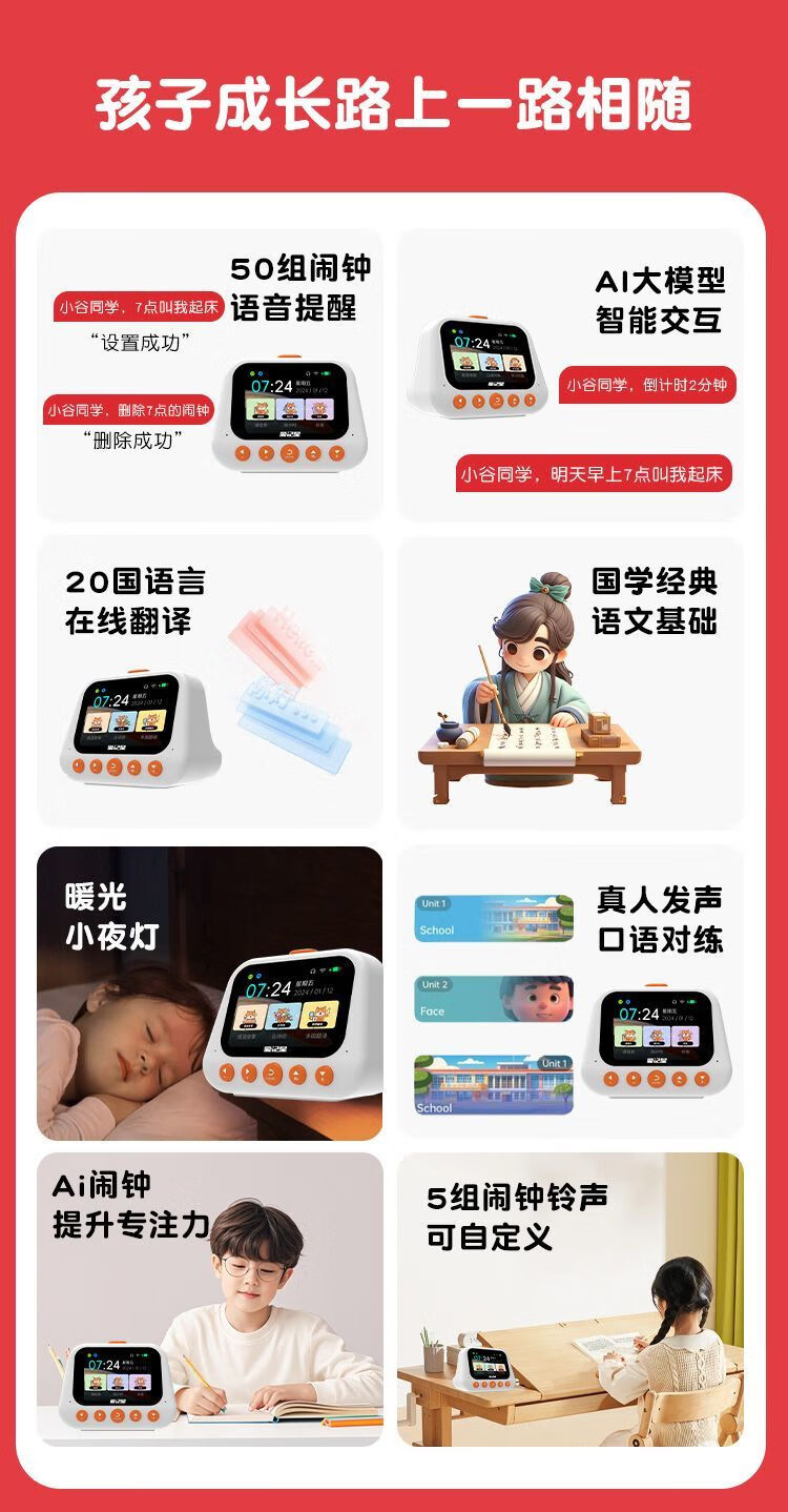 Aiji Star's 2025 new voice-activated intelligent robot Ai smart alarm clock children's early education learning machine Extreme Edition Smart Alarm Clock Al Resource English Training Collection/Follow to get free (Culomi Sticker)