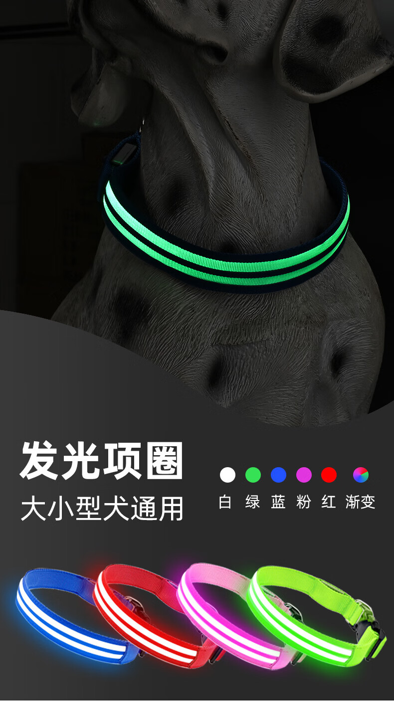 Spico dog luminous collar, luminous dog walking artifact, USB rechargeable, long battery life, tractionable at night, waterproof dog collar, pink multi-color light-emitting mode, TYPE-C charging, M size, recommended 18-40 catties, neck circumference 38-46cm