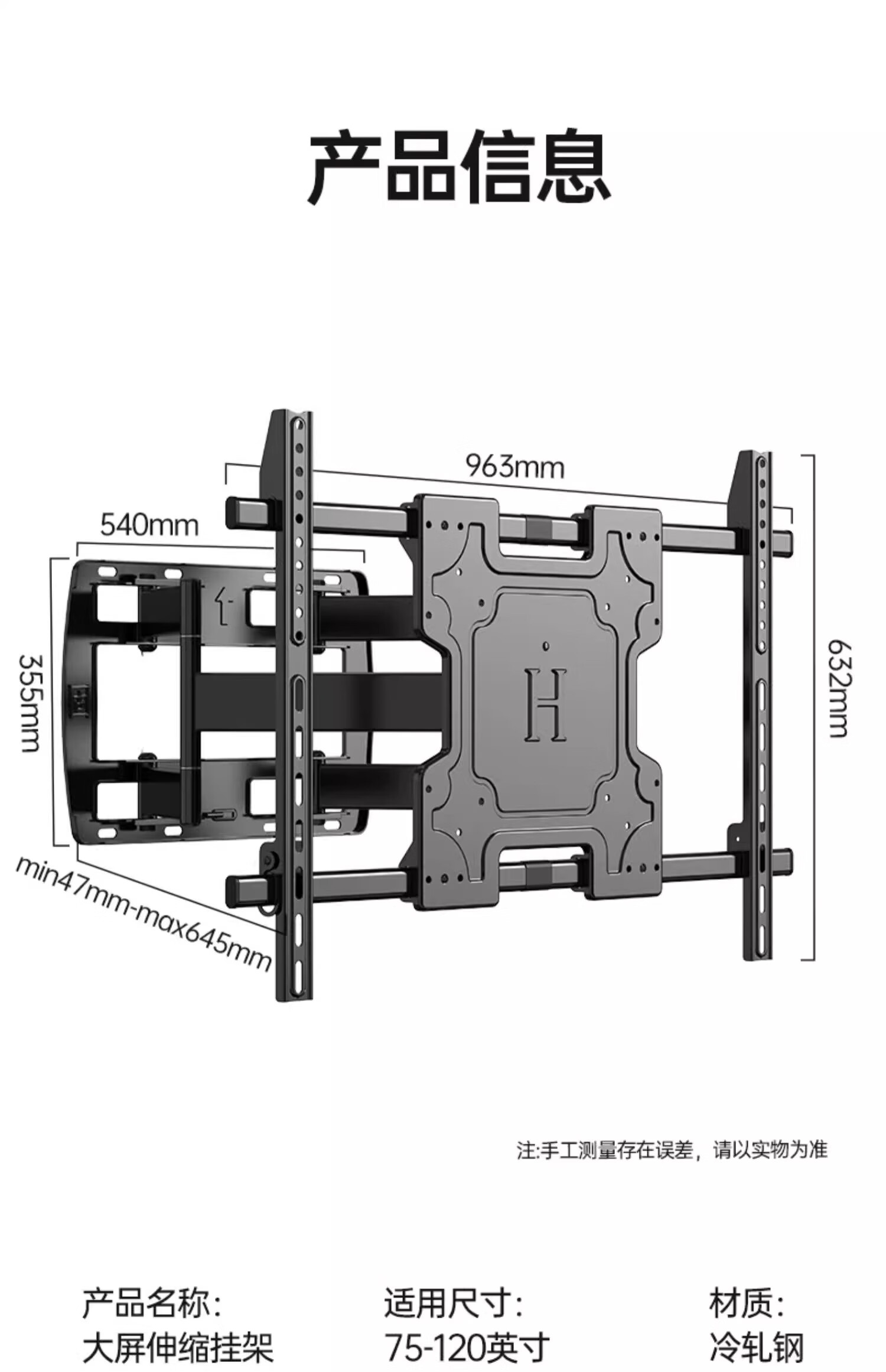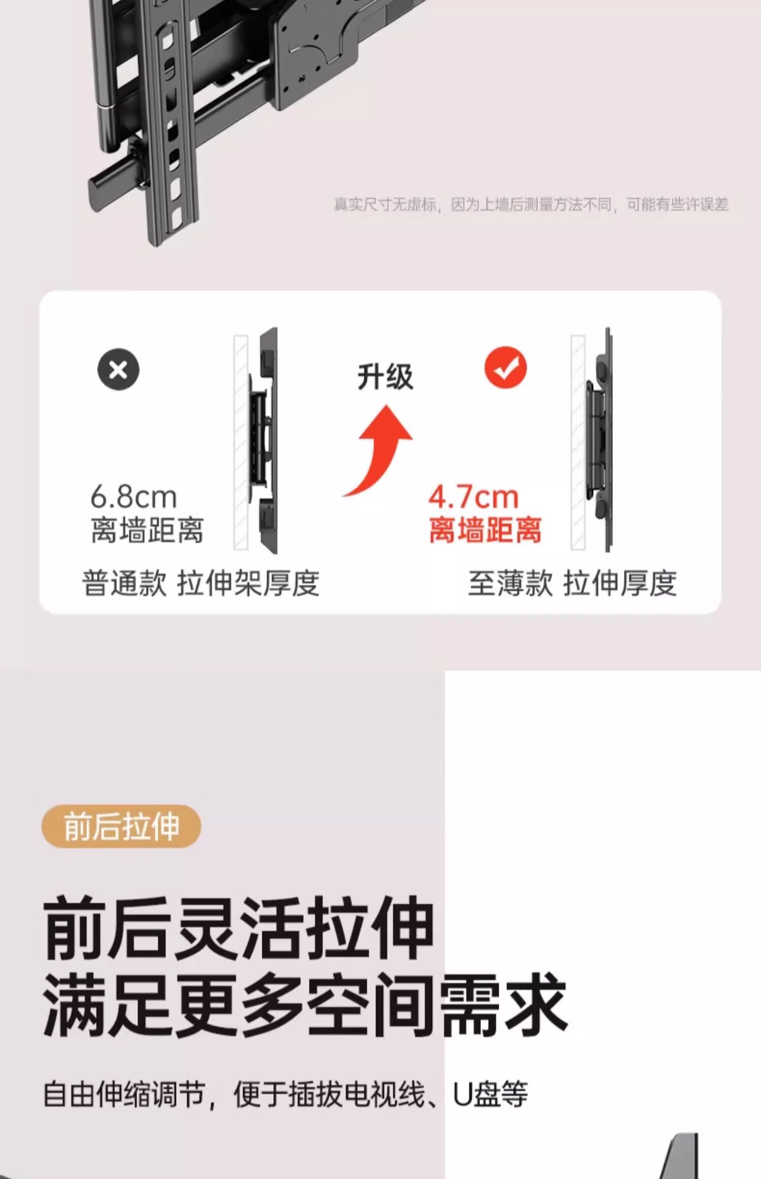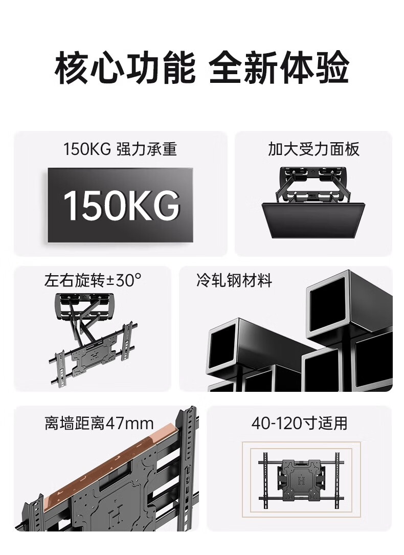 TV hanger monitor bracket ultra-thin TV telescopic hanger folding rotatable bracket super load-bearing wall mount suitable for 40-120 inches, solid shaft does not lower the head, 40-100 inches universal, load-bearing 290 pounds