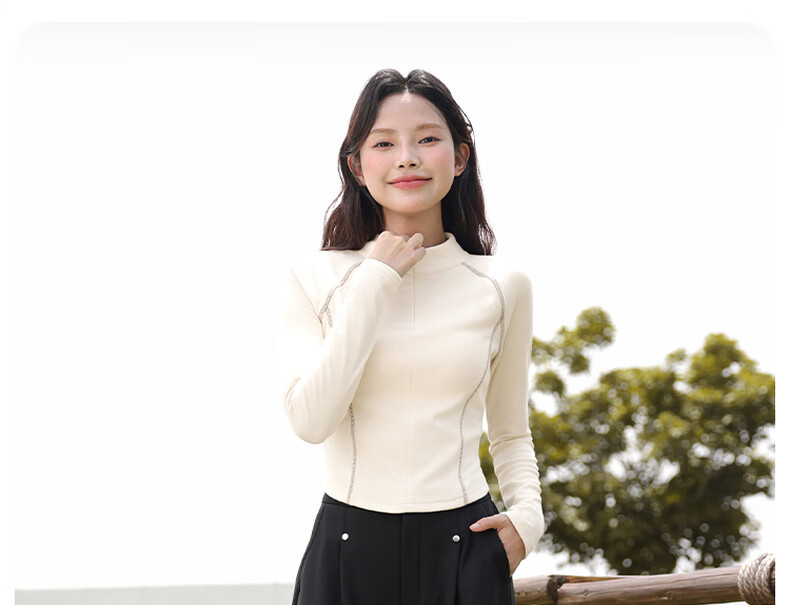 Baleno bottoming shirt for women with velvet warm inner long sleeves 7a antibacterial autumn new style half zipper stand collar design top top light khaki #BL brown plaid puppy K S