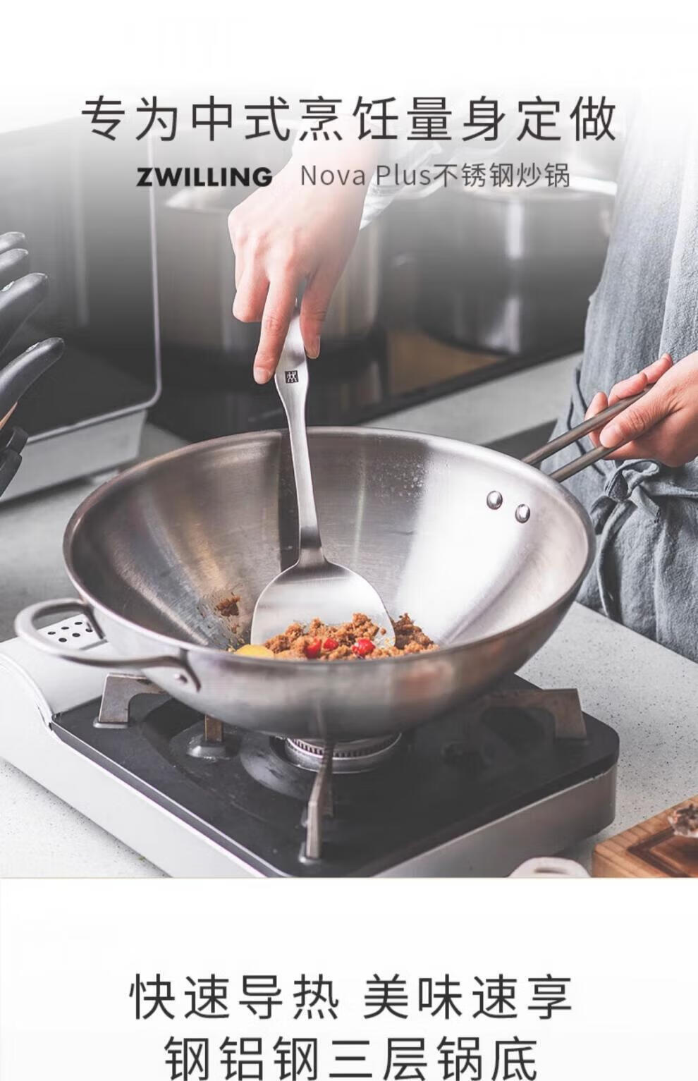 ZWILLING 2025 stainless steel pot set, wok, non-stick pan, 6-piece steamer, soup pot, milk pot, all-steel pot set Nova