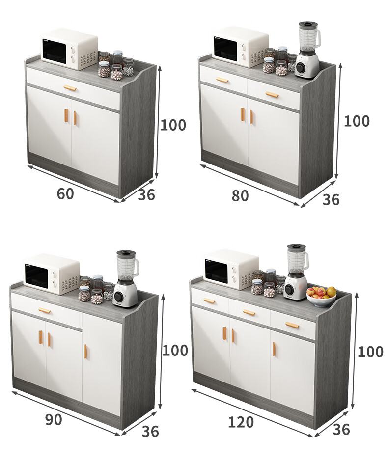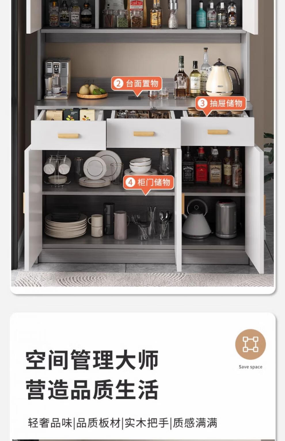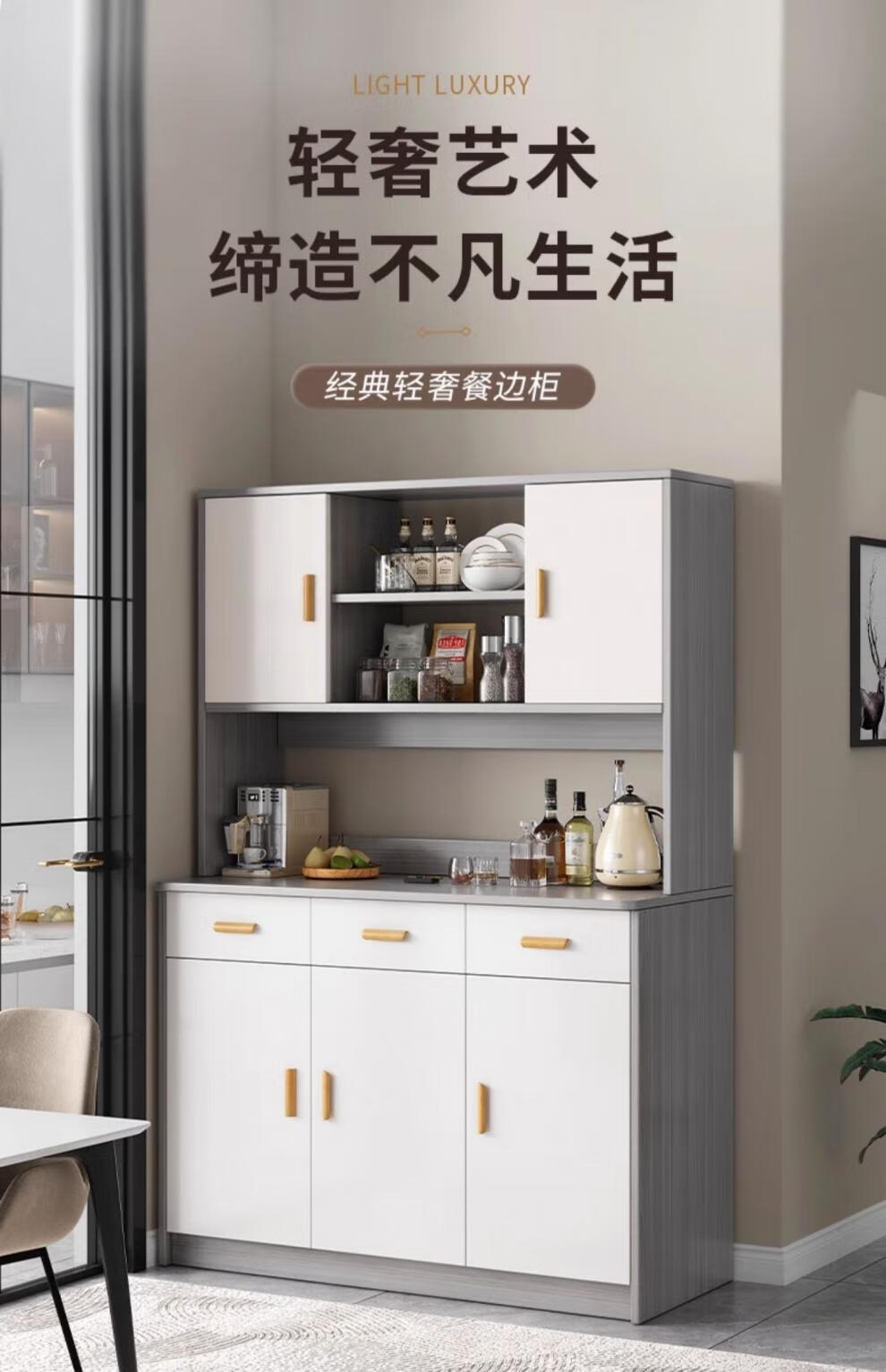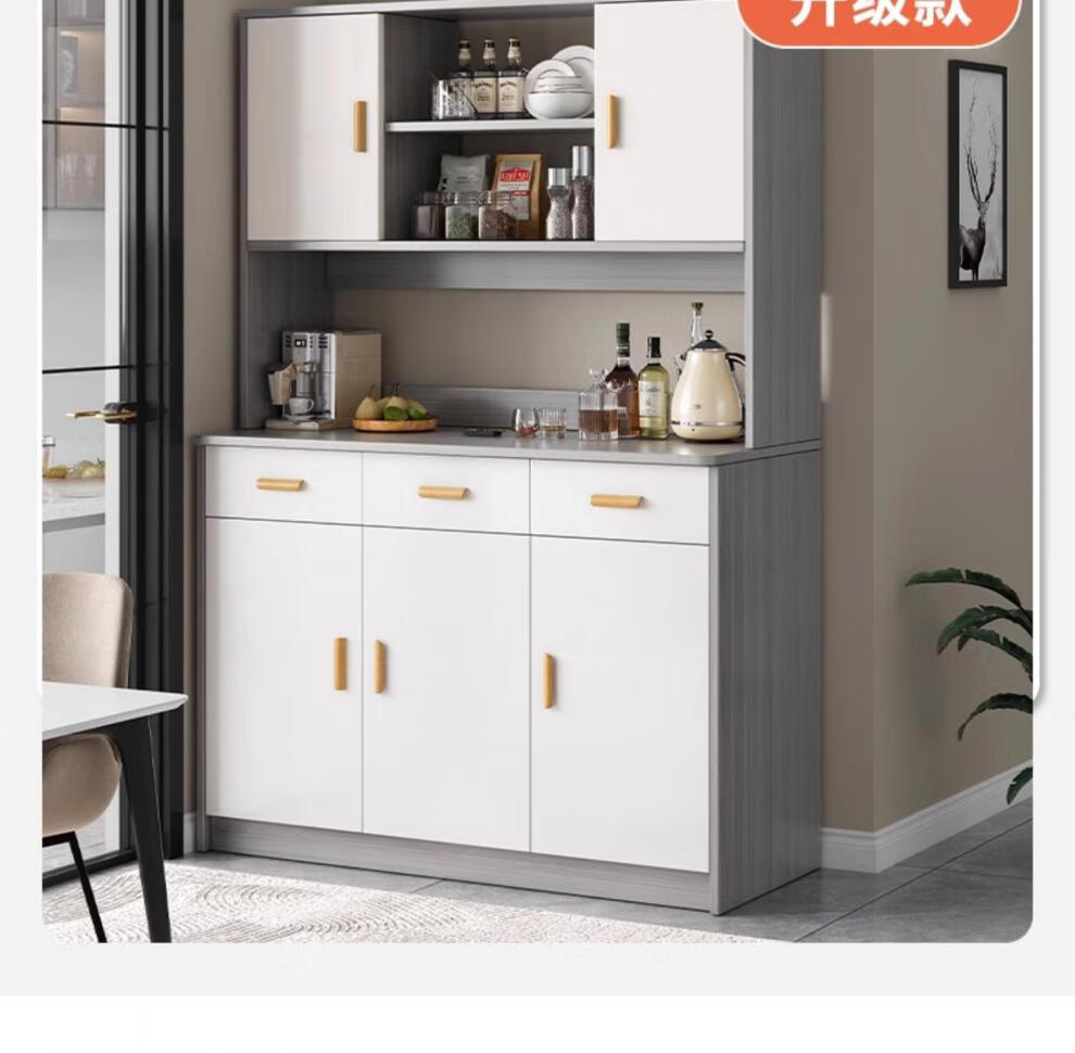 Gujia Home Living Room Sideboard Against the Wall Integrated Small Apartment Storage Cabinet Kitchen Multi-Function Shelf Cabinet Wine Cabinet Tea Heightened Shelves Model Owen Gray Gray and White 100C
