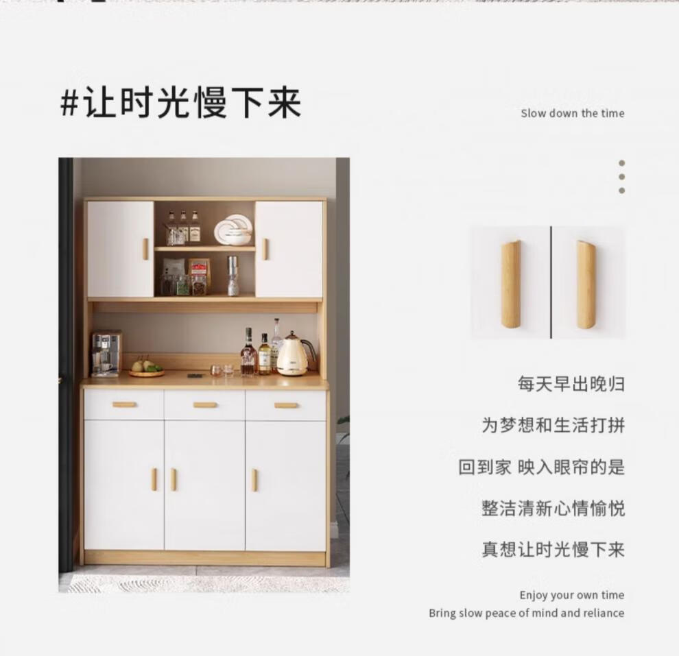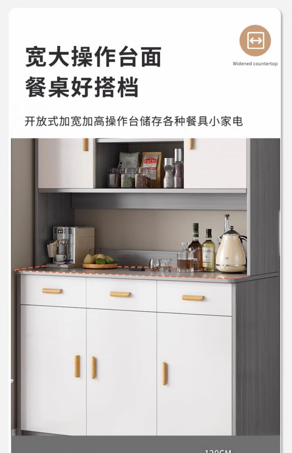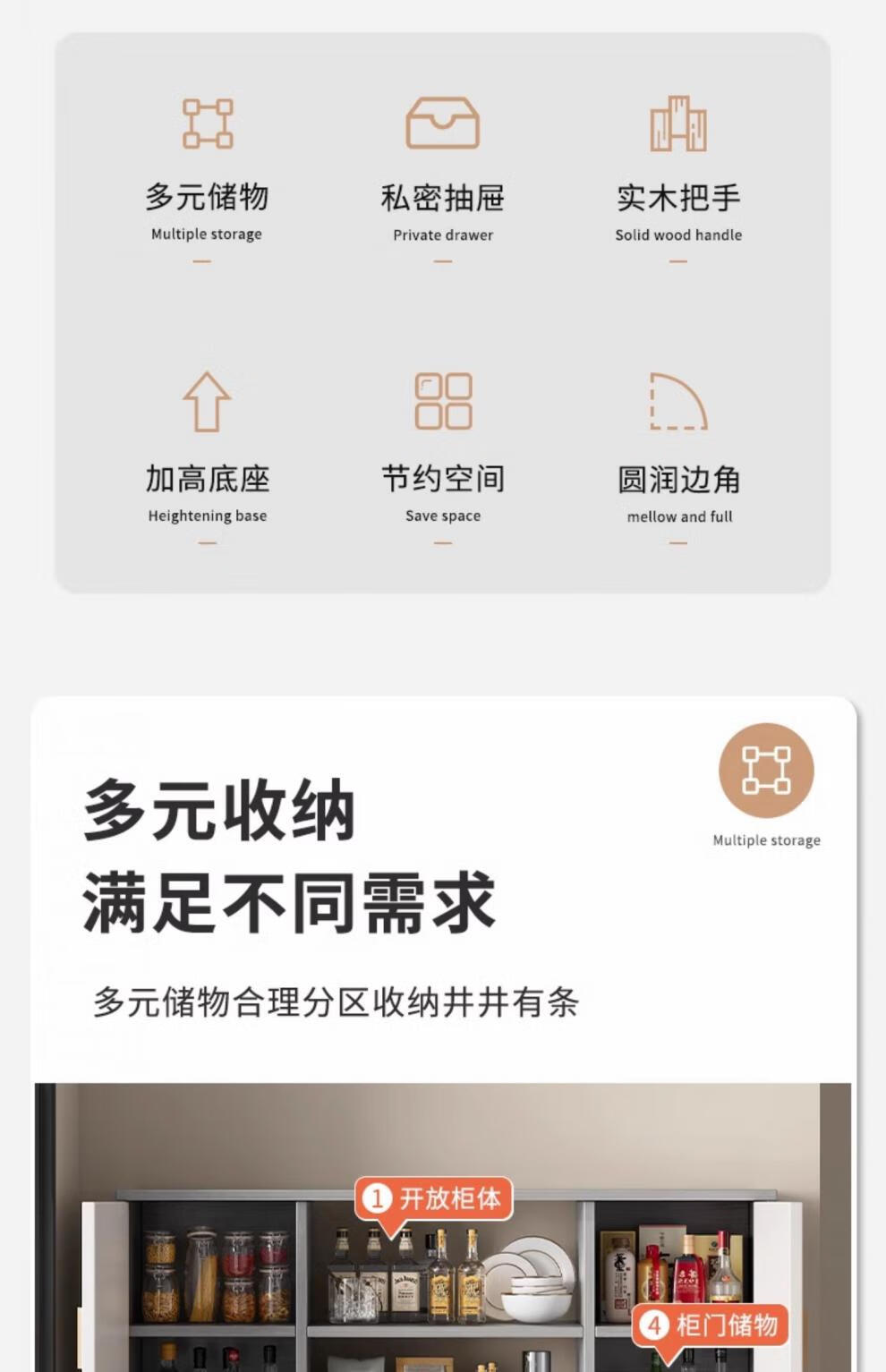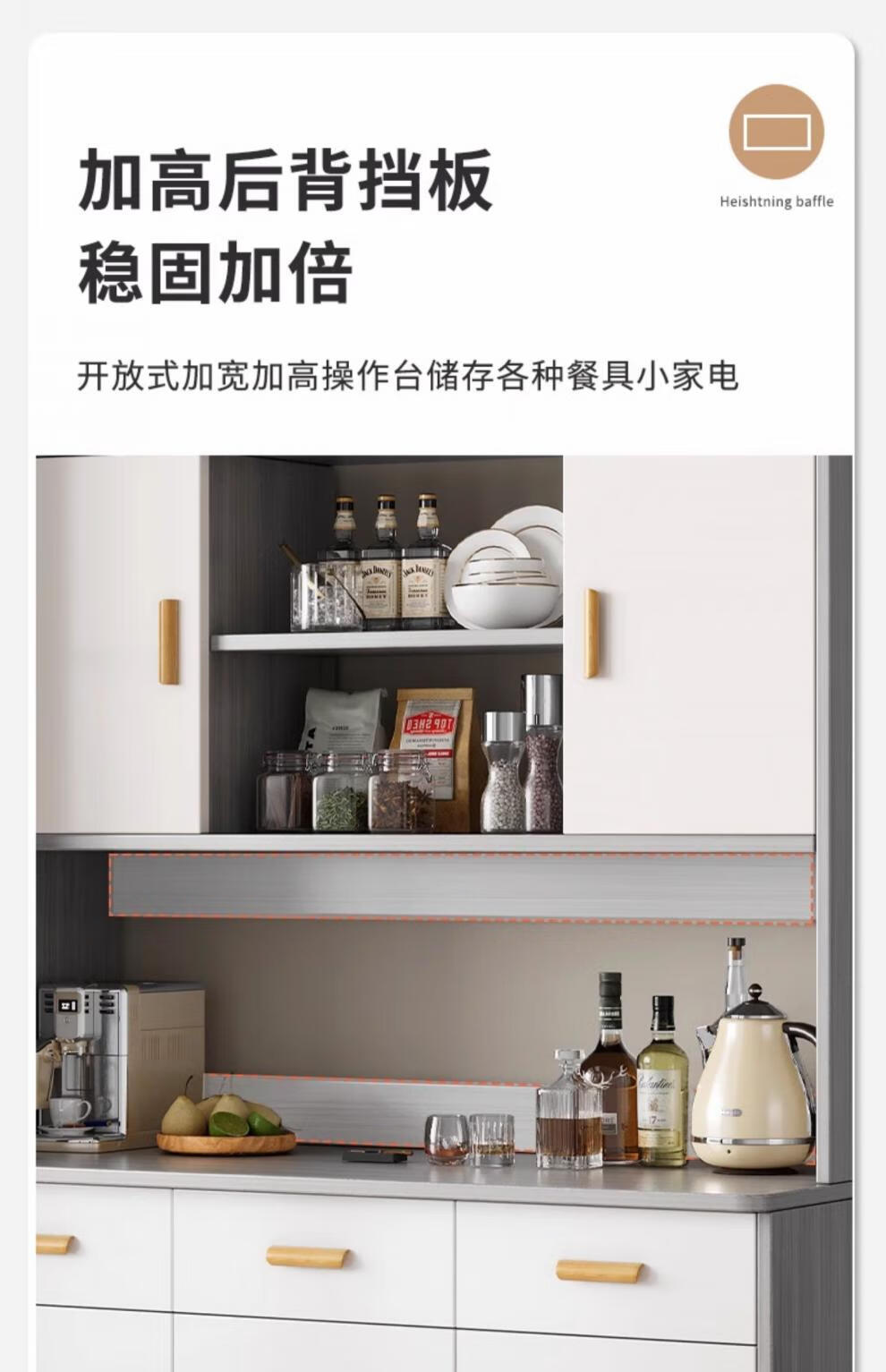Gujia Home Living Room Sideboard Against the Wall Integrated Small Apartment Storage Cabinet Kitchen Multi-Function Shelf Cabinet Wine Cabinet Tea Heightened Shelves Model Owen Gray Gray and White 100C