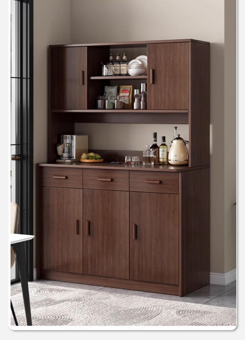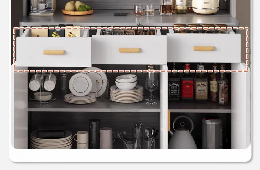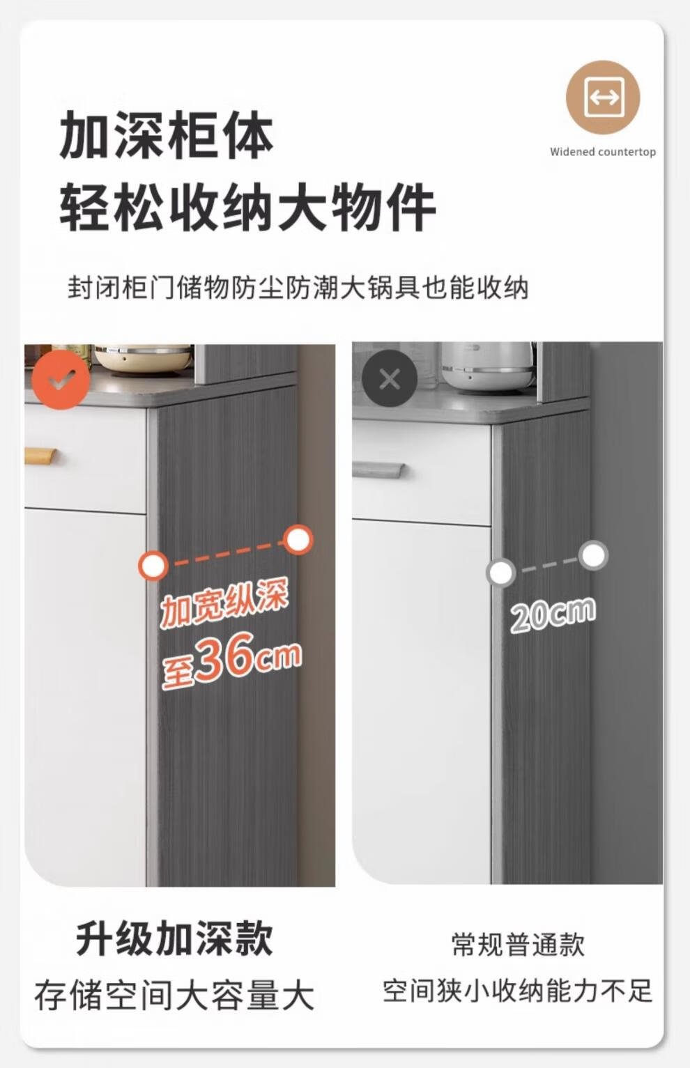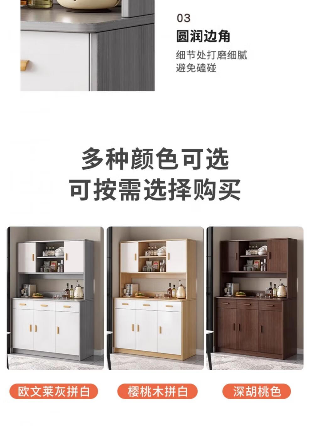 Gujia Home Living Room Sideboard Against the Wall Integrated Small Apartment Storage Cabinet Kitchen Multi-Function Shelf Cabinet Wine Cabinet Tea Heightened Shelves Model Owen Gray Gray and White 100C