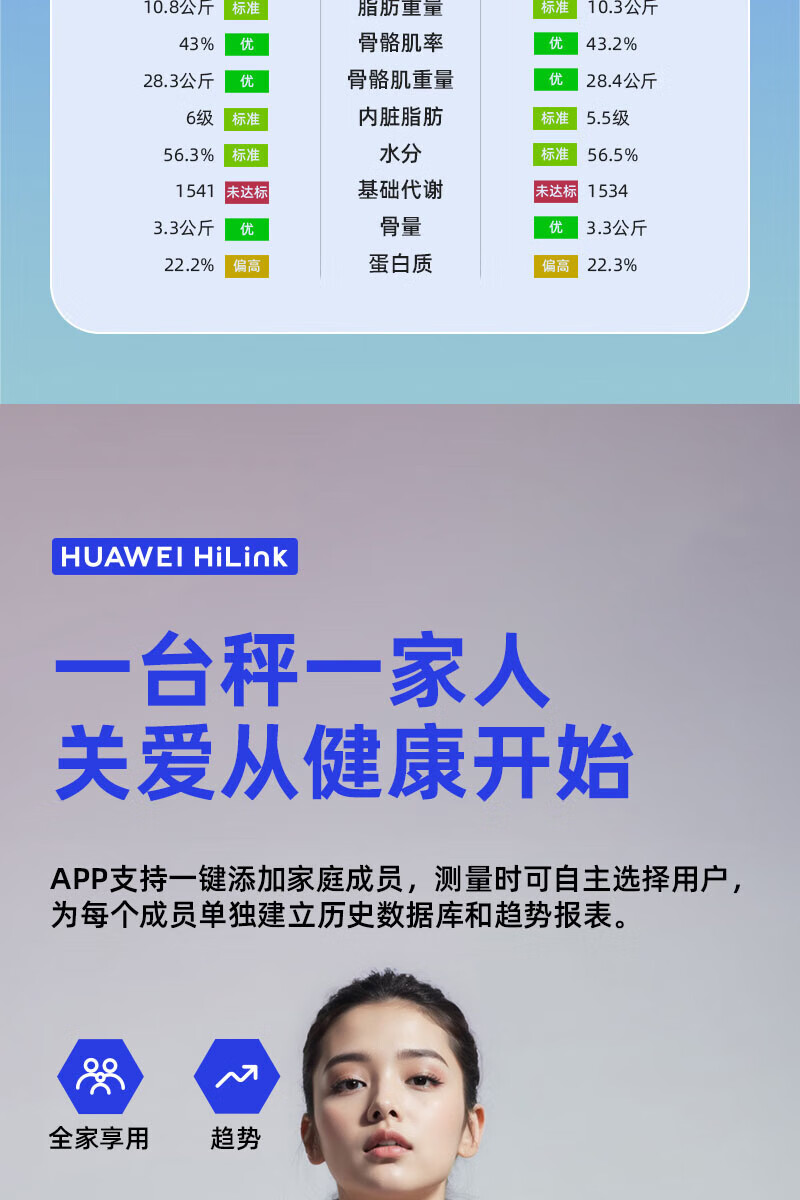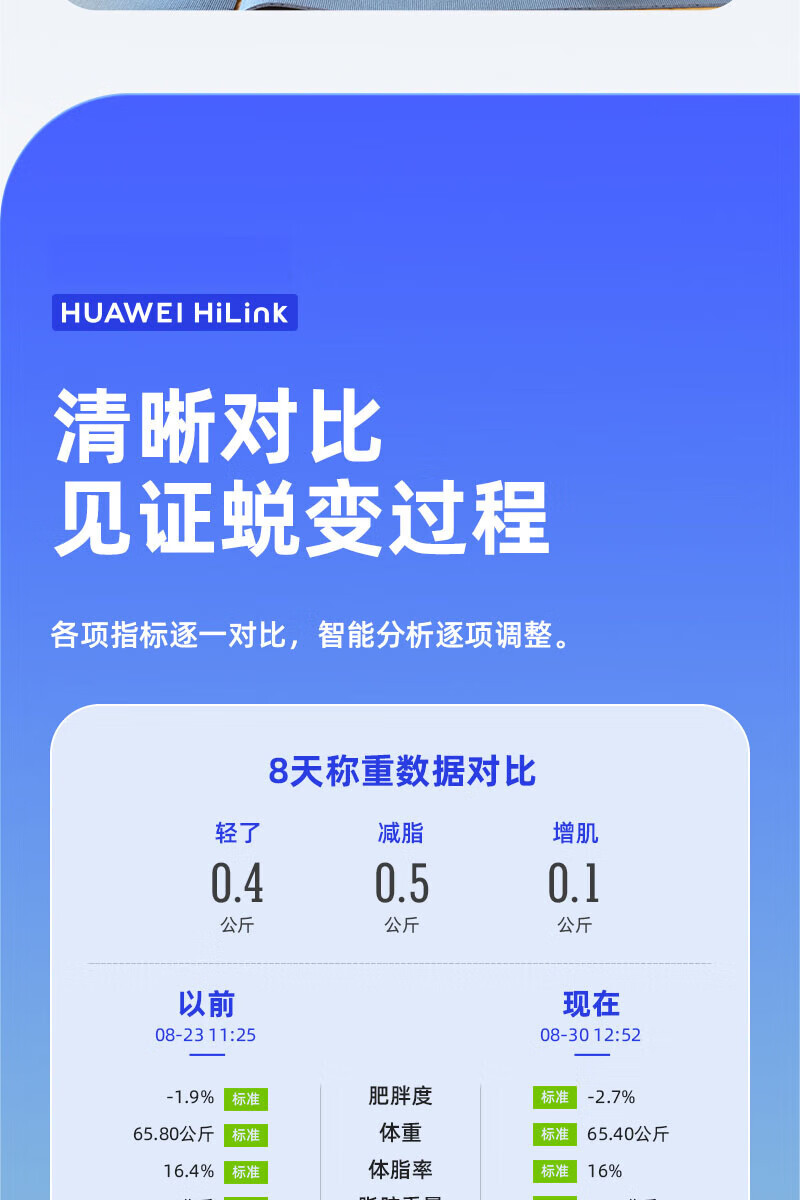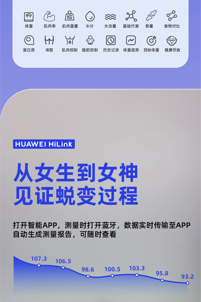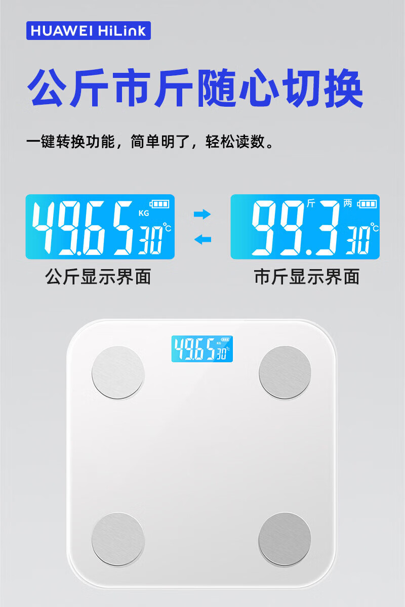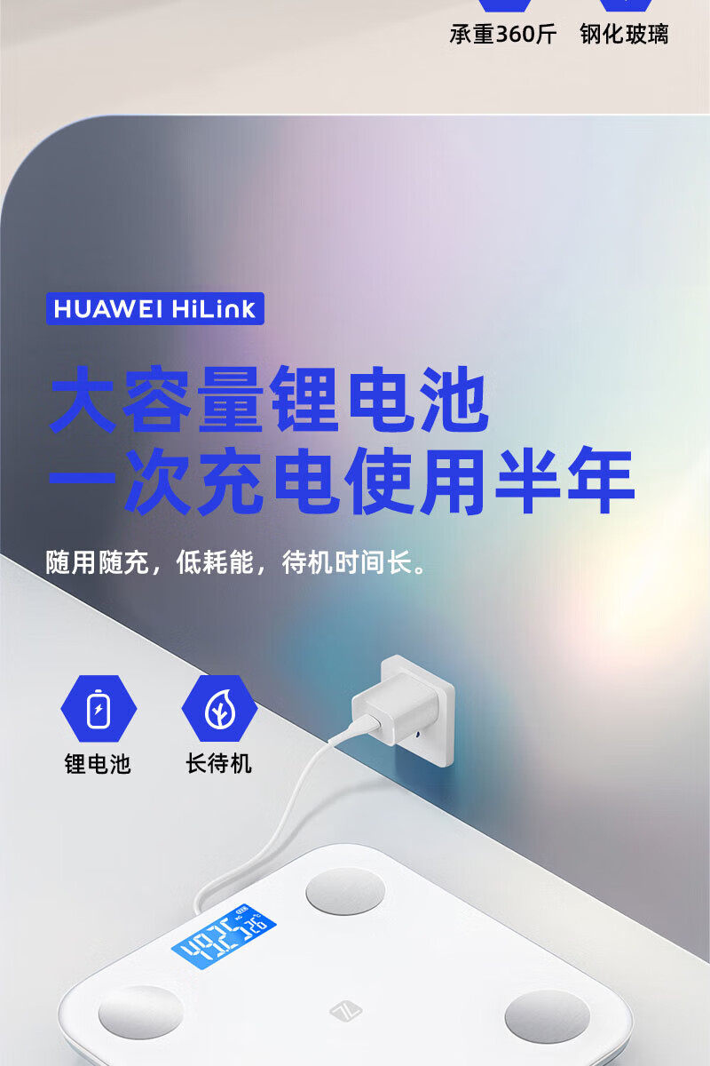 Scale Huawei HUAWEI Hilink Intelligent Body Fat Scale Electronic Scale Weight Scale Intelligent Weighing Accurate Dormitory Household Weight Loss Special Hongmeng Intelligent Accurate HUAWEI Eco-Certification Rechargeable Model - White