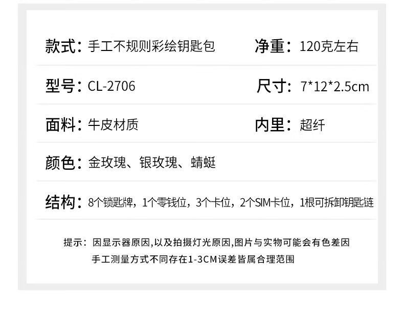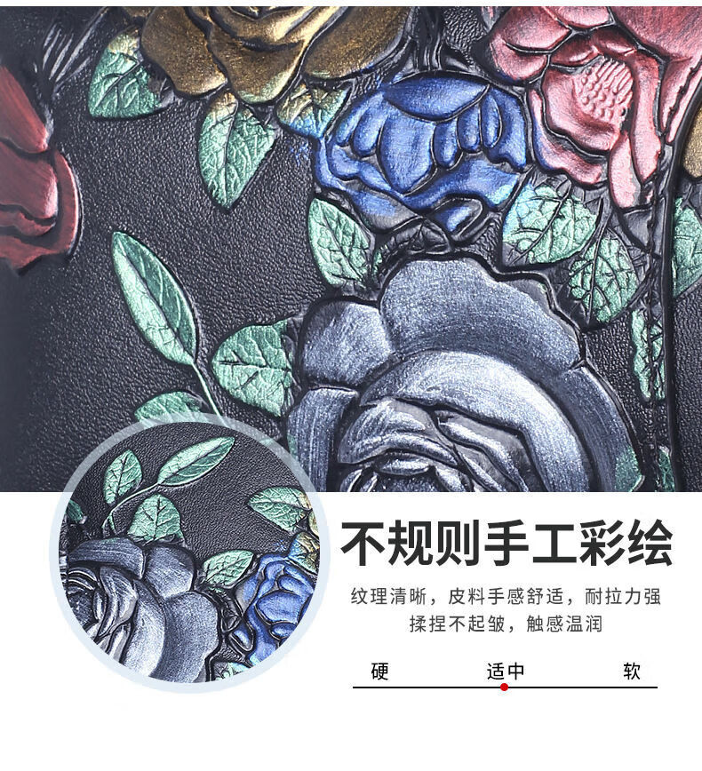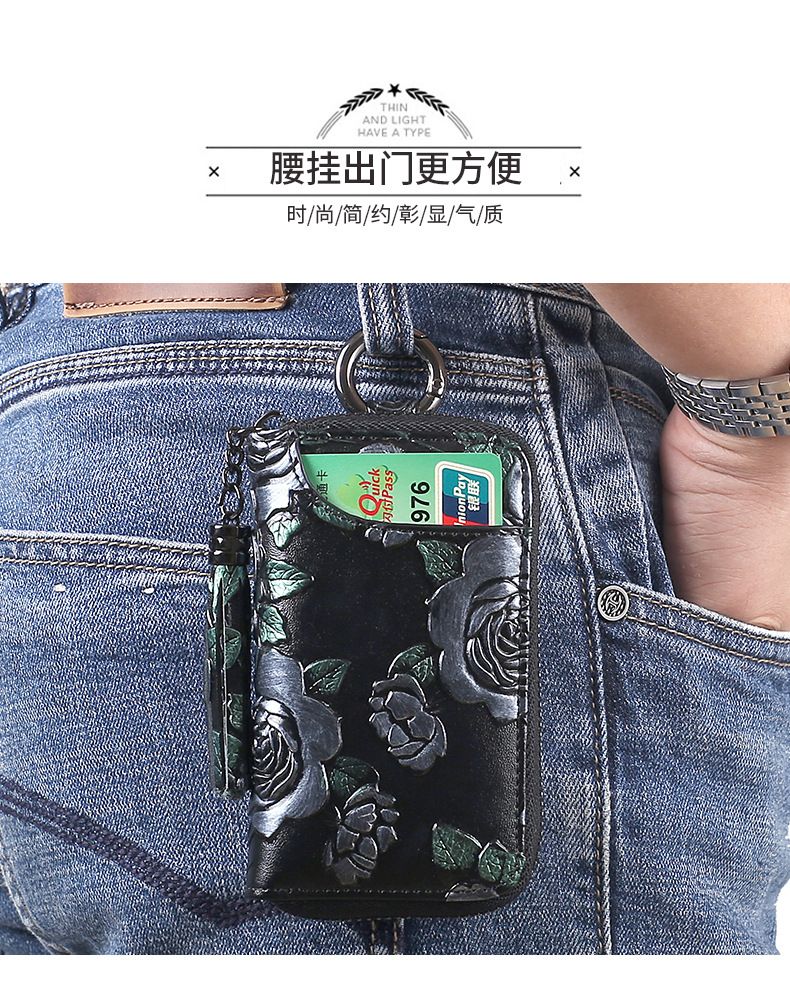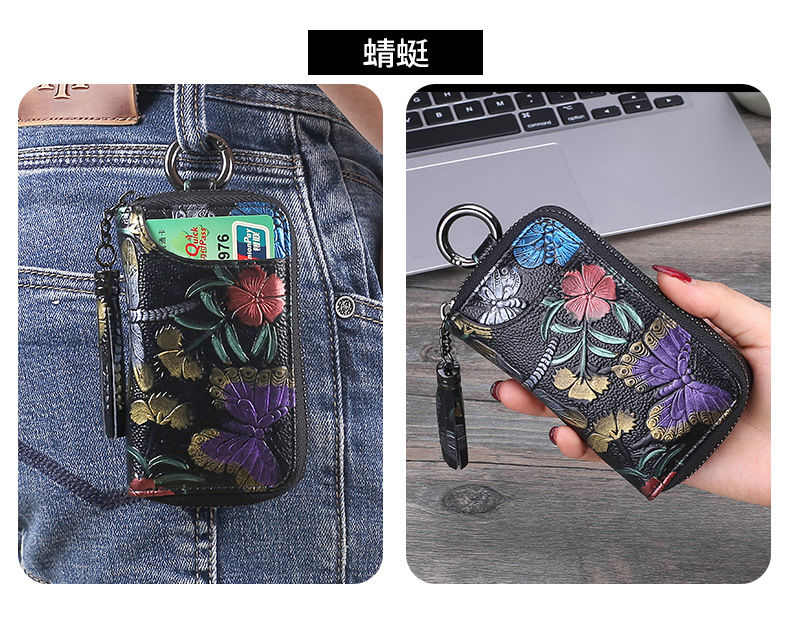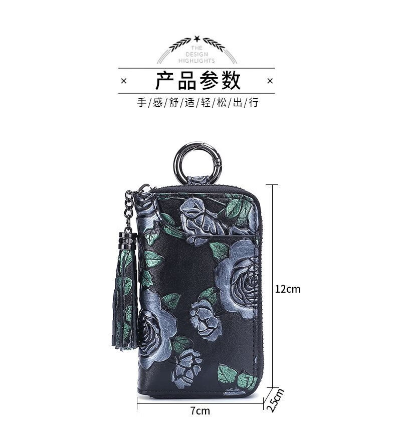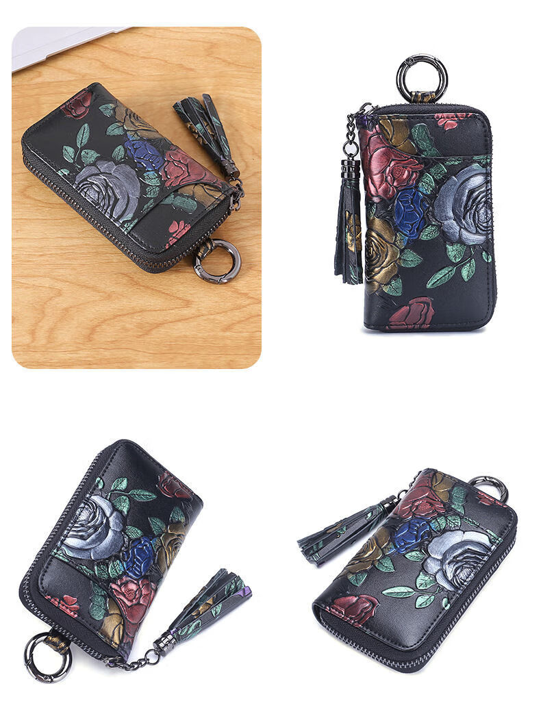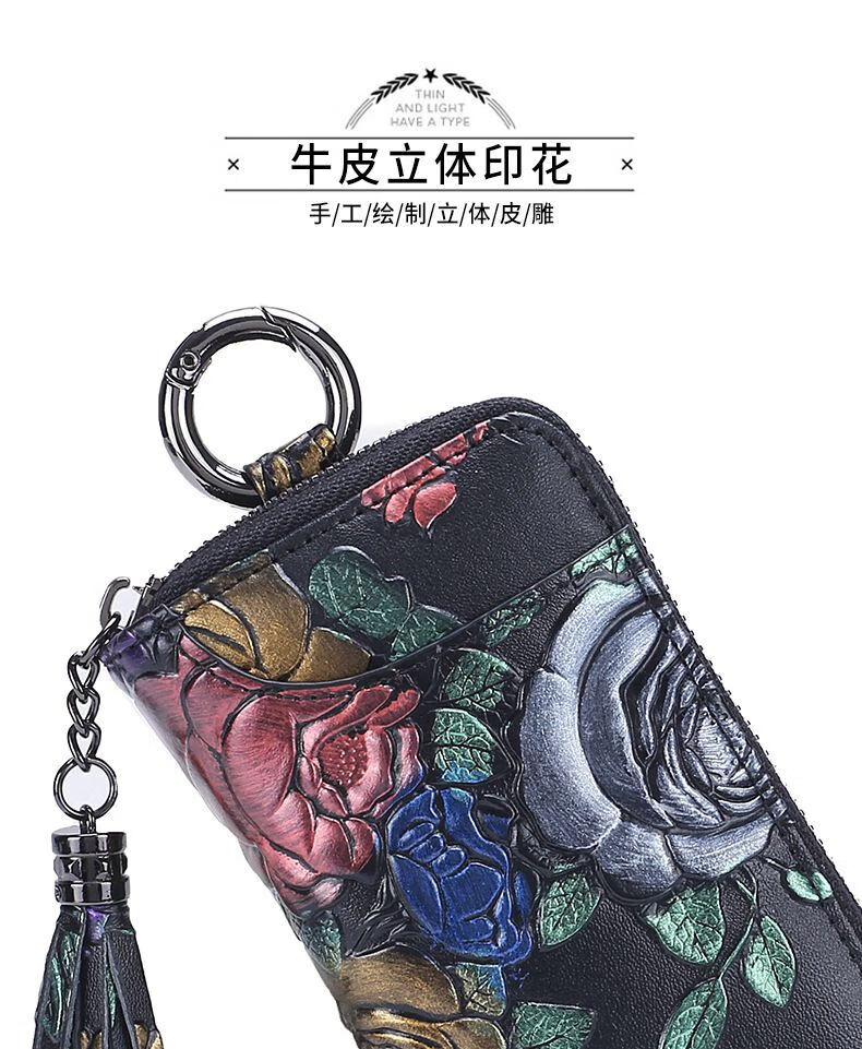 Ye Yu Key Bag Women's Genuine Leather Large Capacity Ethnic Style Painted Card Holder All-in-One Multi-Function Coin Purse Exquisite Small Cowhide Gold Rose