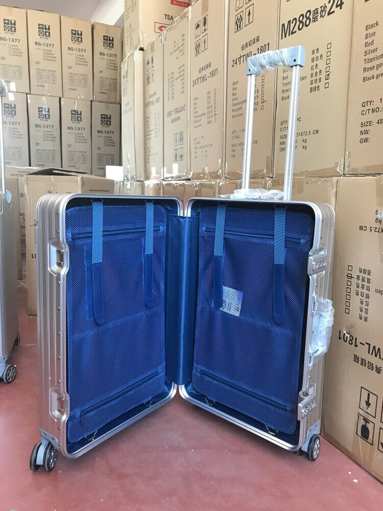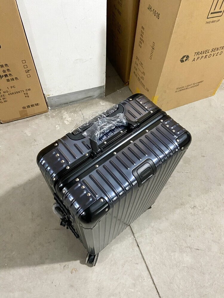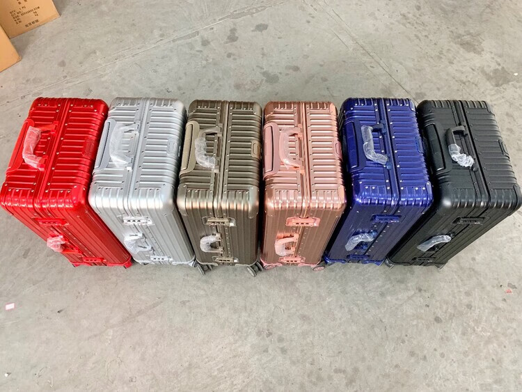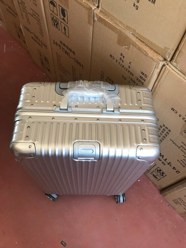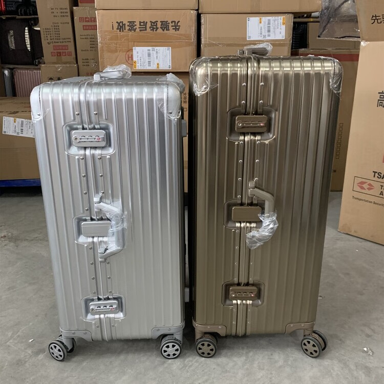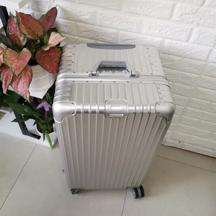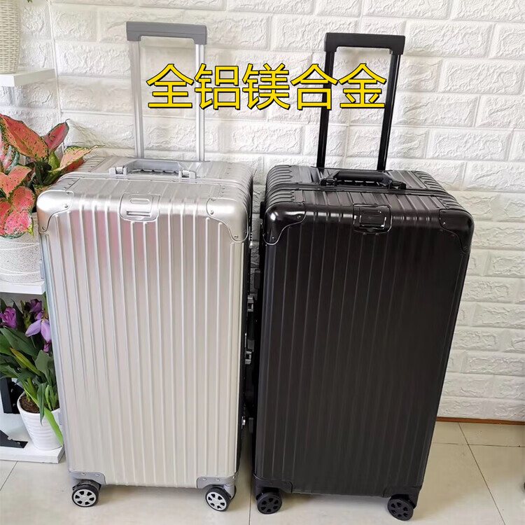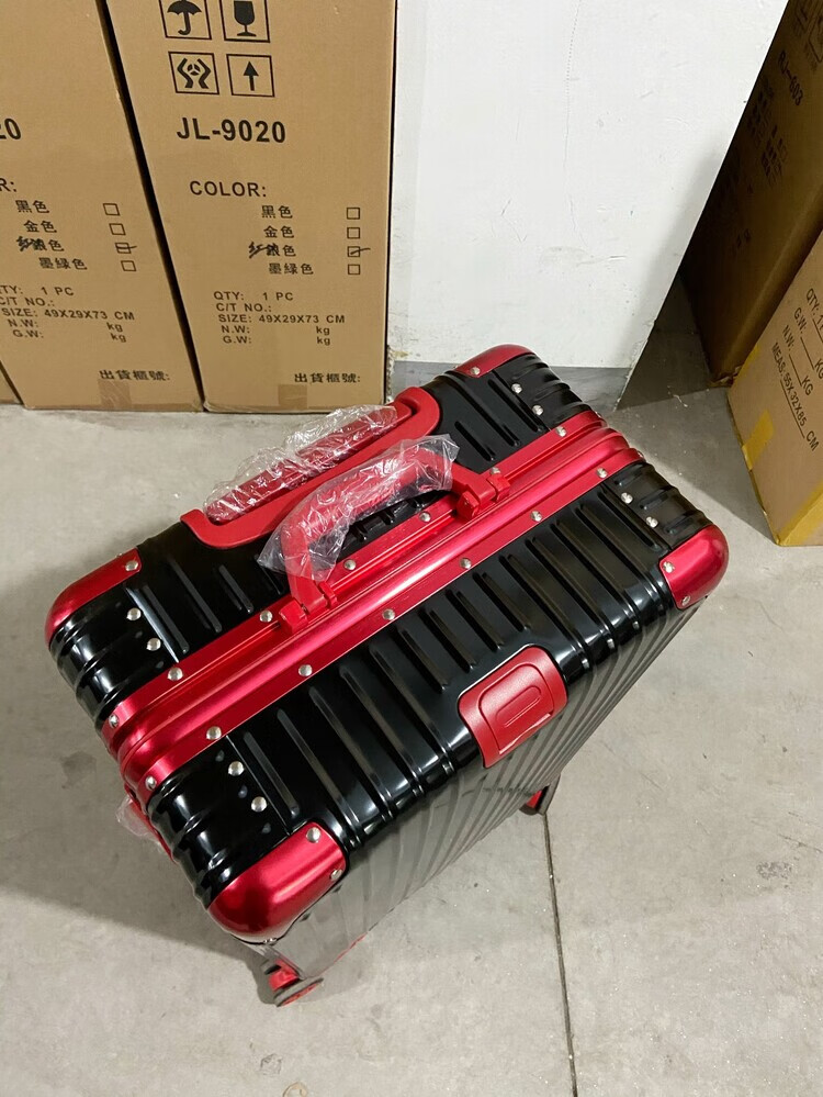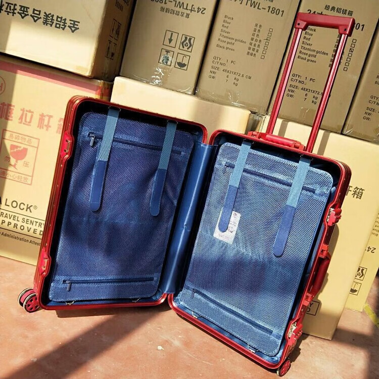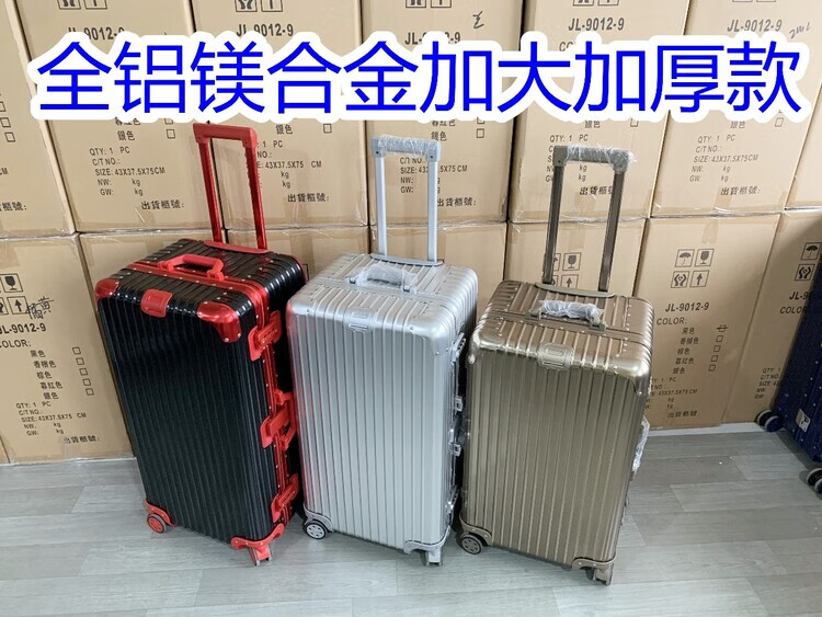 Large-capacity 28-inch all-aluminum-magnesium alloy suitcase, enlarged and thickened all-metal trolley case 303, 234-inch password box, red all-aluminum-magnesium alloy (retro right-angle model) - Weixia 28 inches