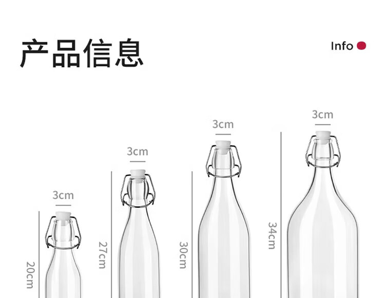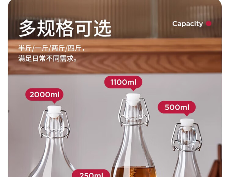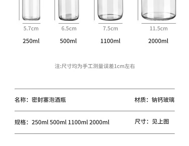 Chuge glass wine bottle, empty bottle, sealed wine bottle, food-grade liquor storage, divided wine storage container, one pound, thickened 1500ml*1, three pounds - free funnel, transparent