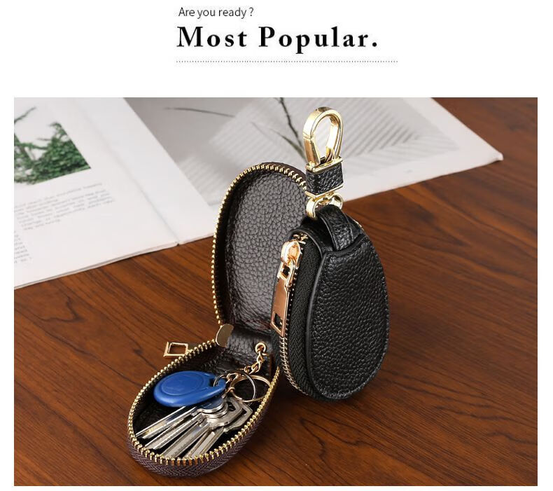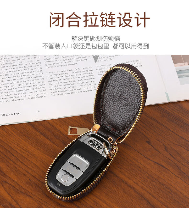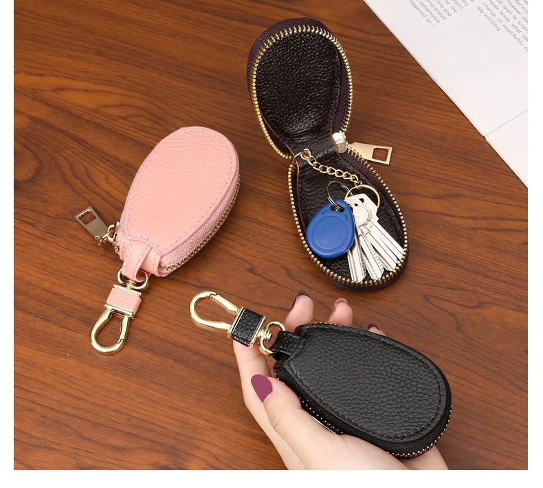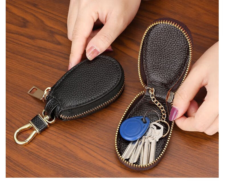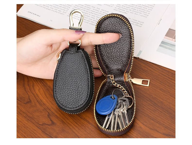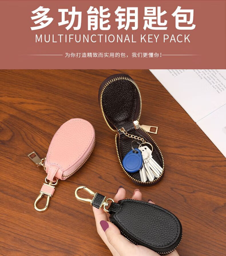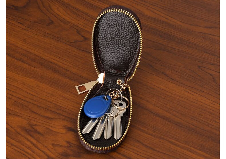 Ye Yu Simple Zipper Key Bag Women's Large Capacity Car Universal Key Storage Mini Small Key Bag Cover Household Cute Brown Multi-Function/Hook Home Car Key Bag