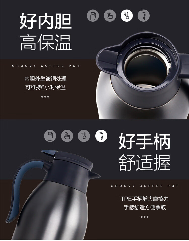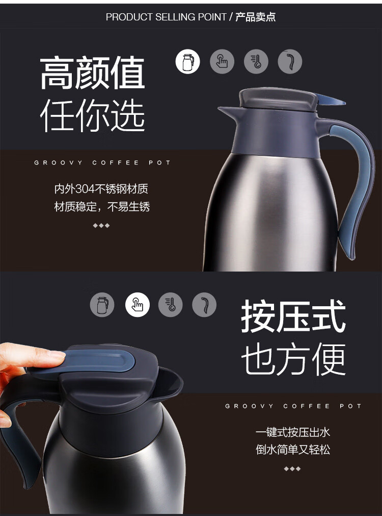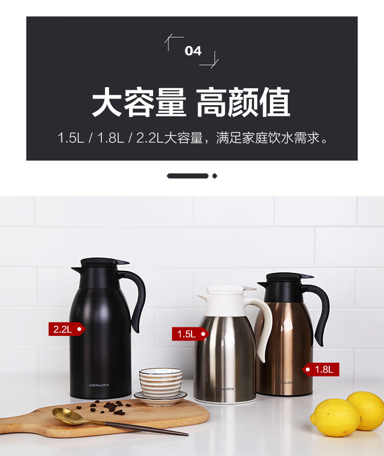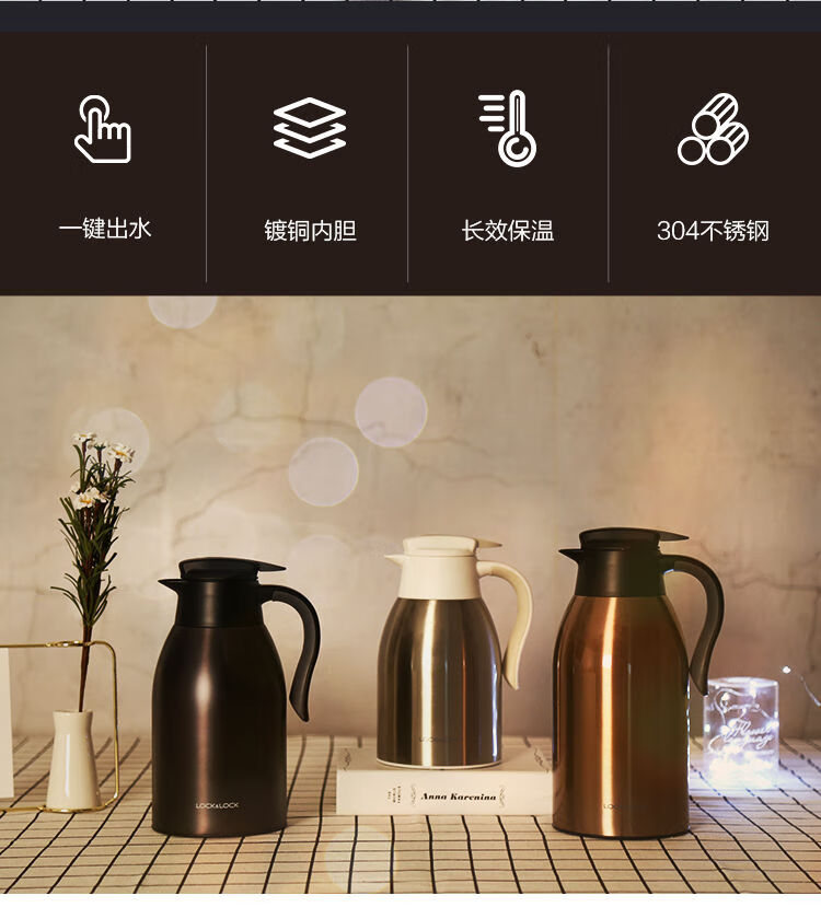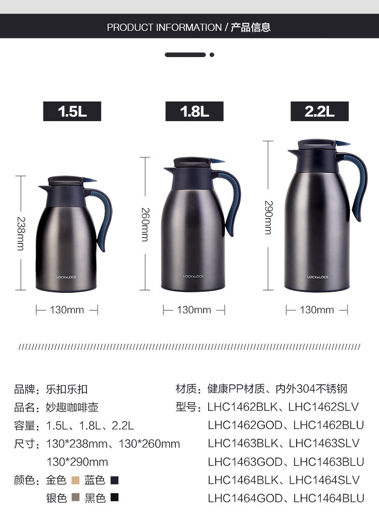 Wonderful thermos kettle hot water kettle large capacity student home office thermos bottle 1464 LHC1464 black-slightly unpackaged 2.2L