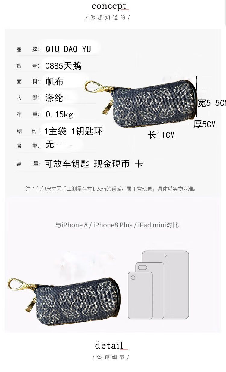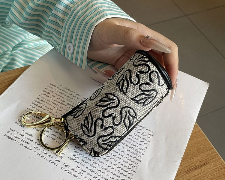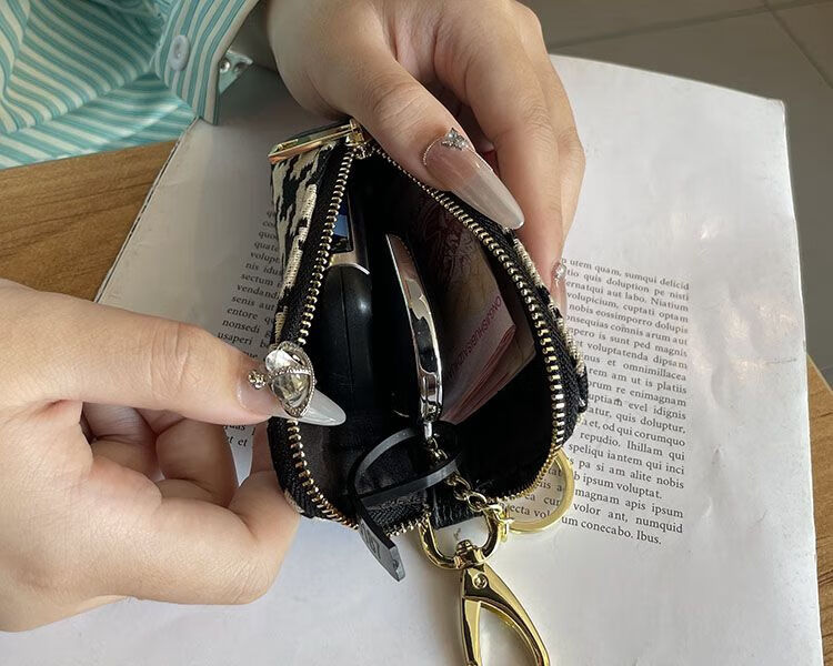 Ye Yu Key Bag Women's 2025 New Portable Internet Celebrity Canvas Storage Bag Mini Small Bag Multifunctional Large Capacity Key Bag Swan Black