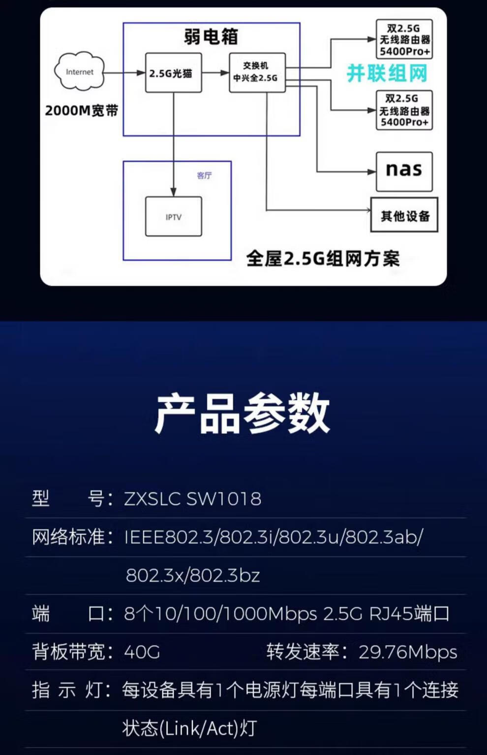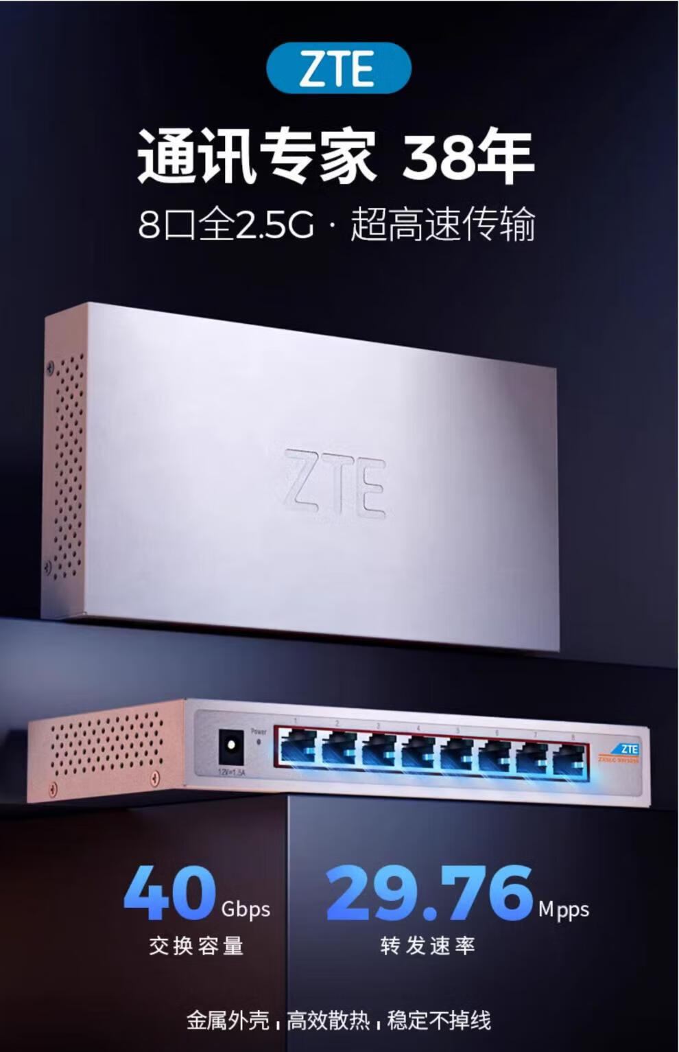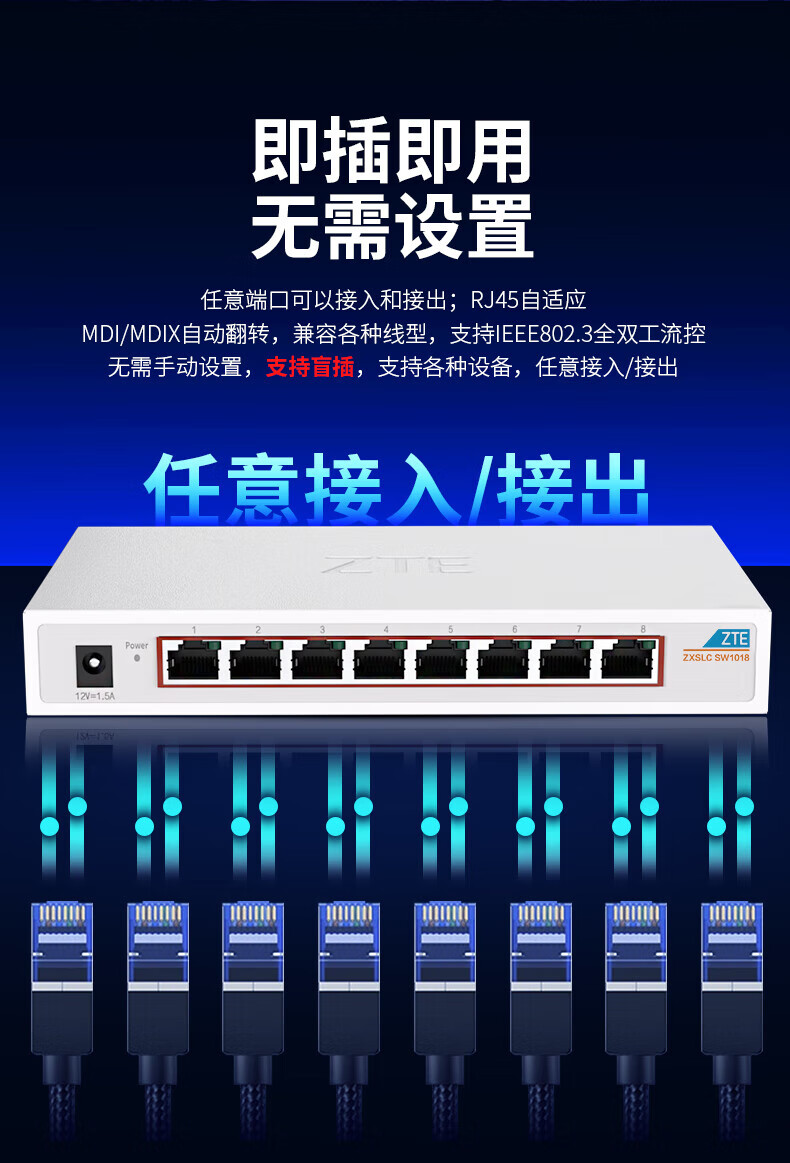 ZTE (ZTE) ZTE 8-port 25GE switch is compatible with 10G, 100M and 100M network cable broadband, 58-port NAS monitoring home network port 8-port full 25G metal casing, 8 replacement machines