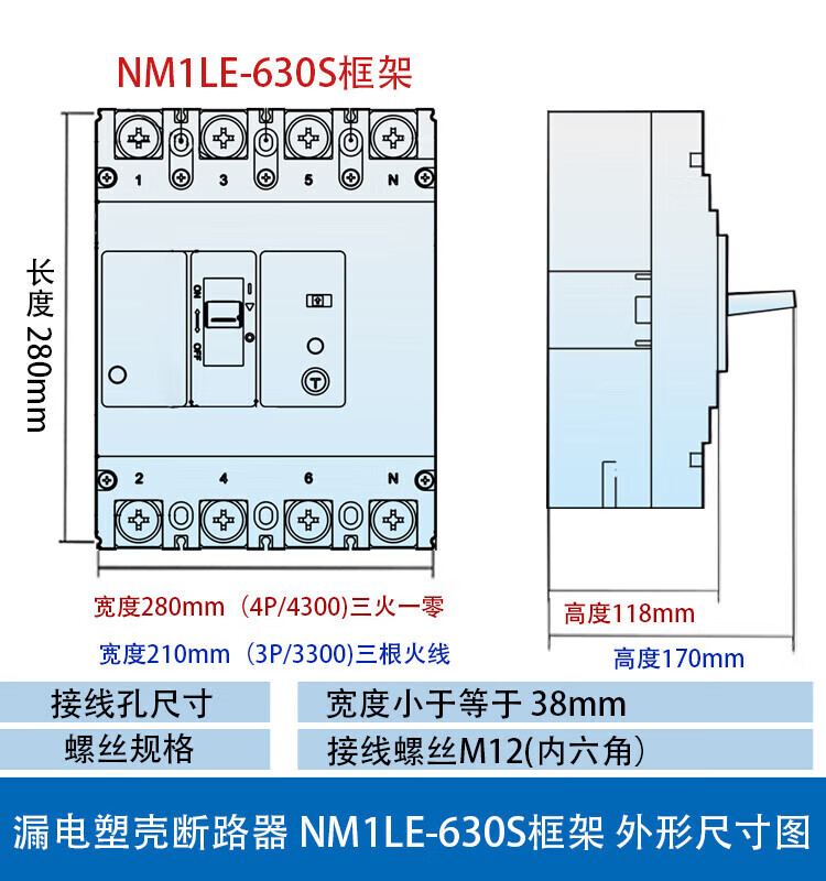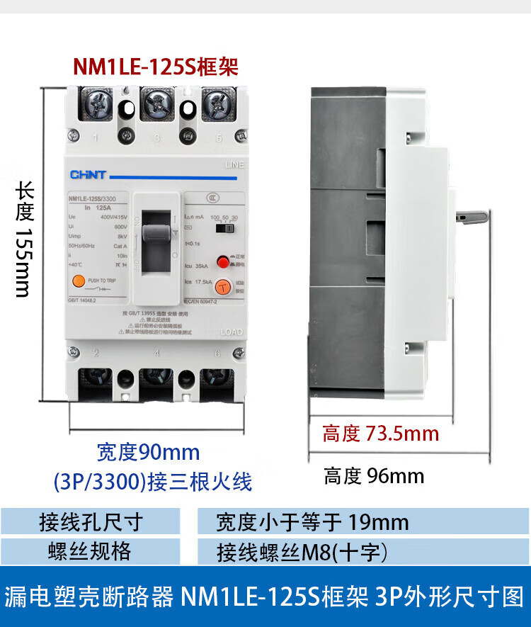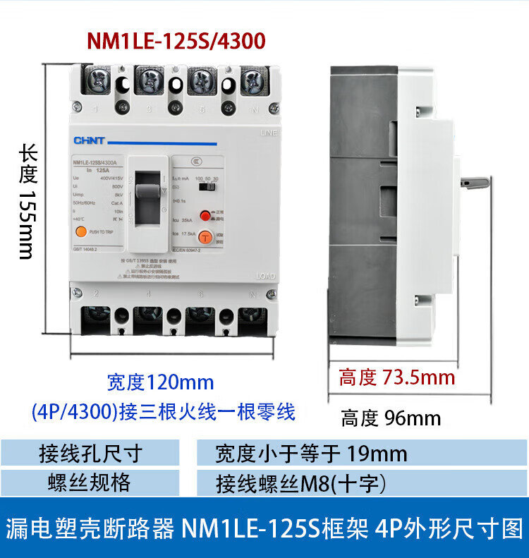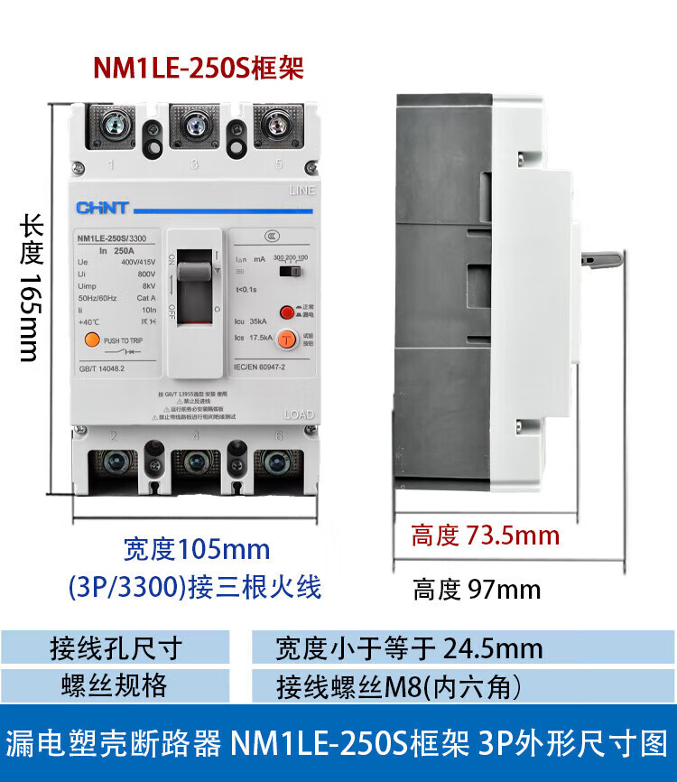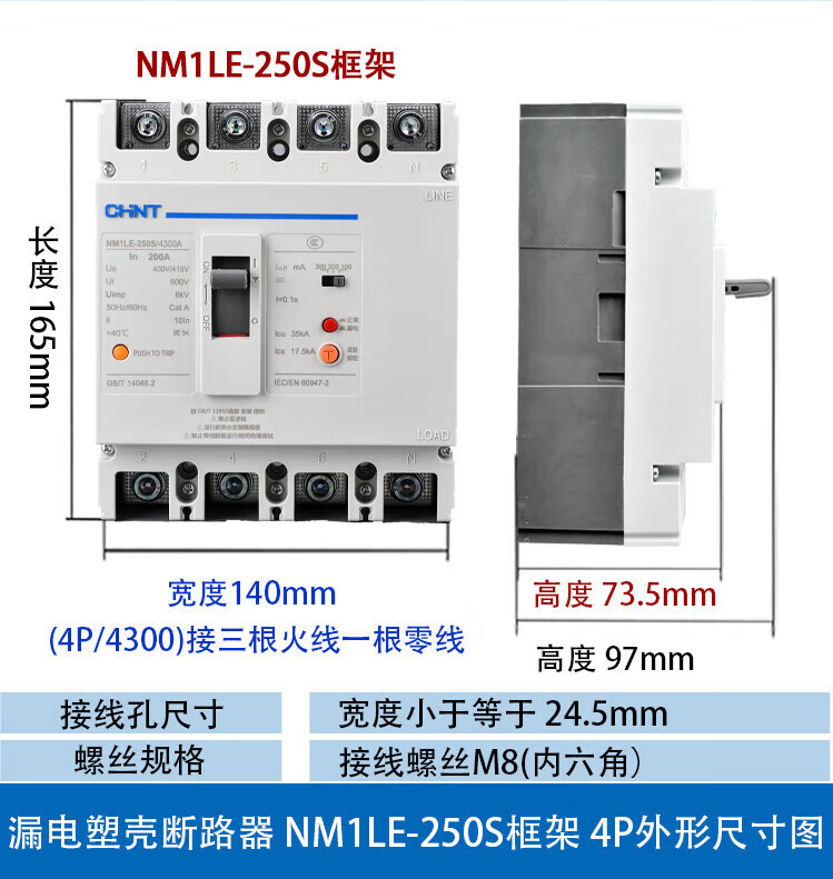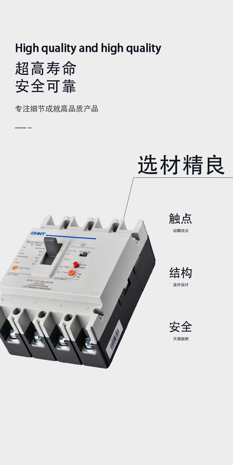 Chint circuit breaker 400A total production 250A with leakage protection switch NM1LE 100A three-phase four-wire leakage protection 4p 63A