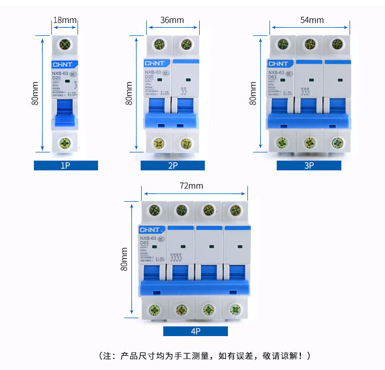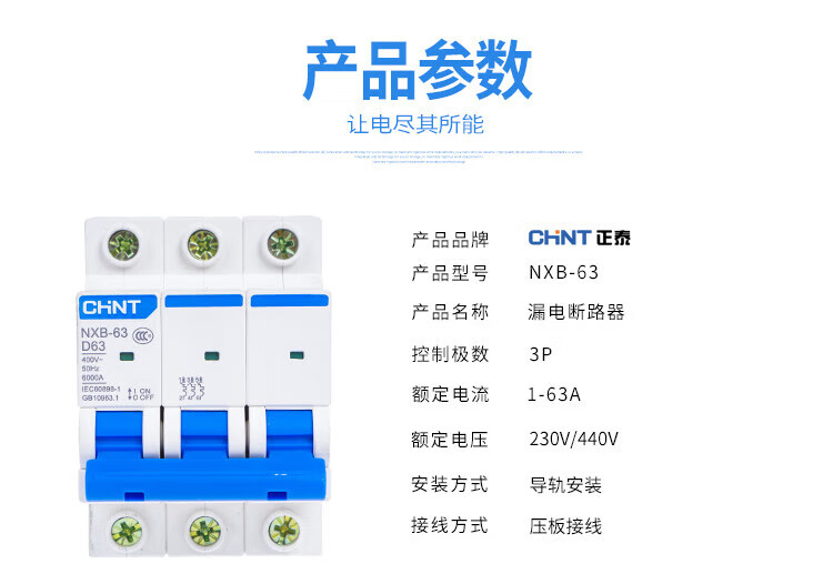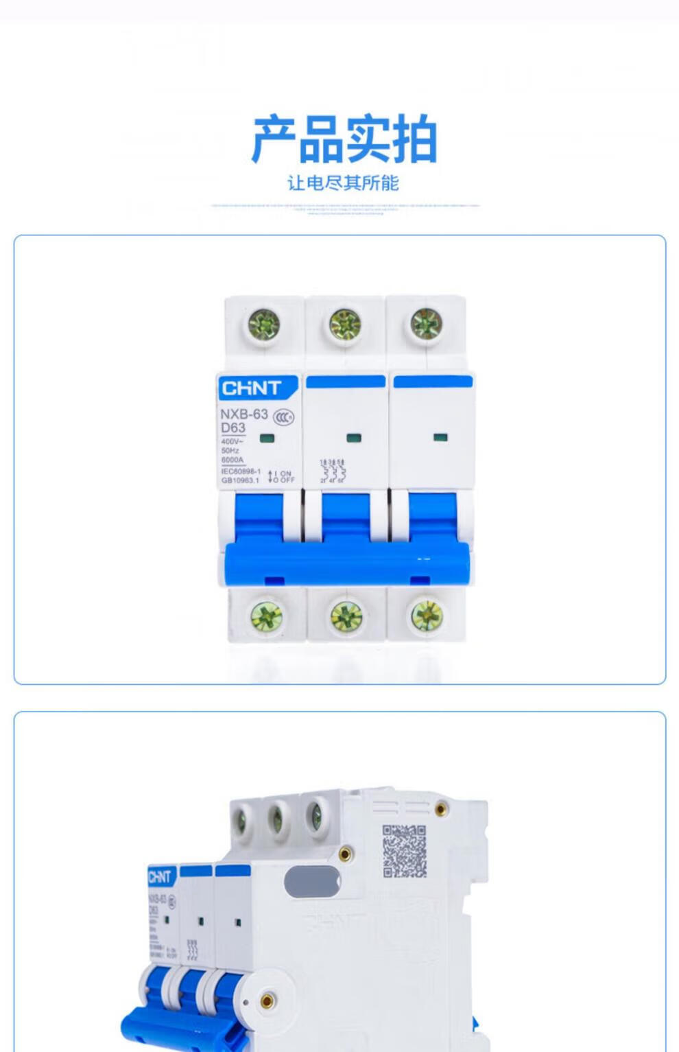 Chint D type NXB air switch household small circuit breaker 1P2P3P4PD32/D63/D125 power type D 32A 2P