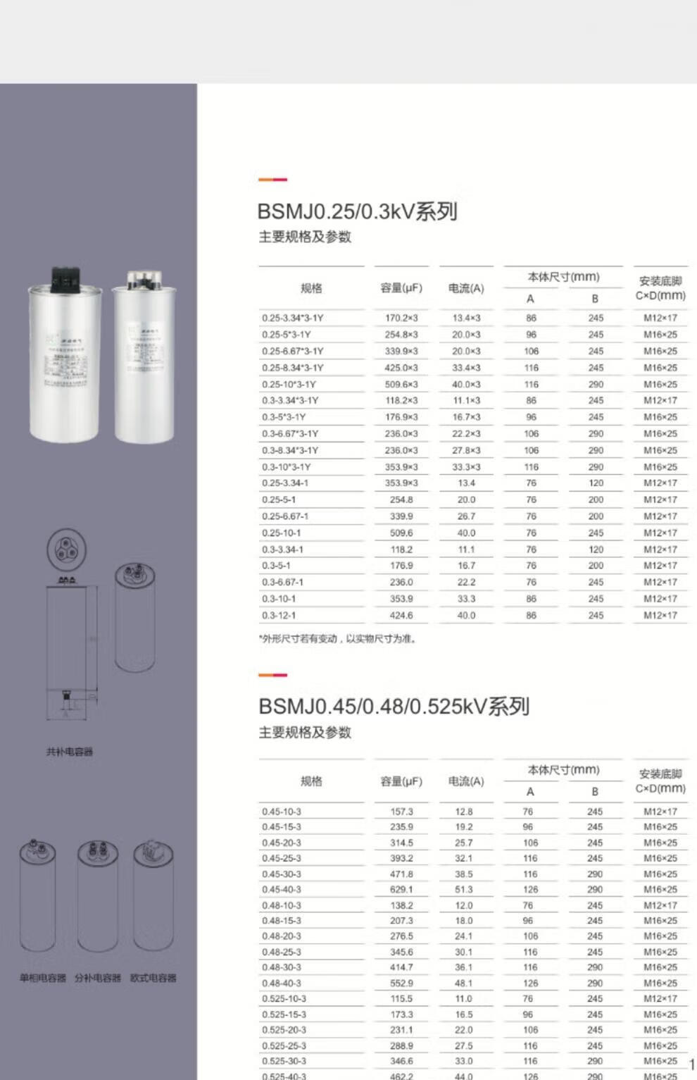Suzhou Surong cylindrical power capacitor 0.45/0.48-30-3 self-healing low-voltage parallel compensation cabinet 0.45-50-3