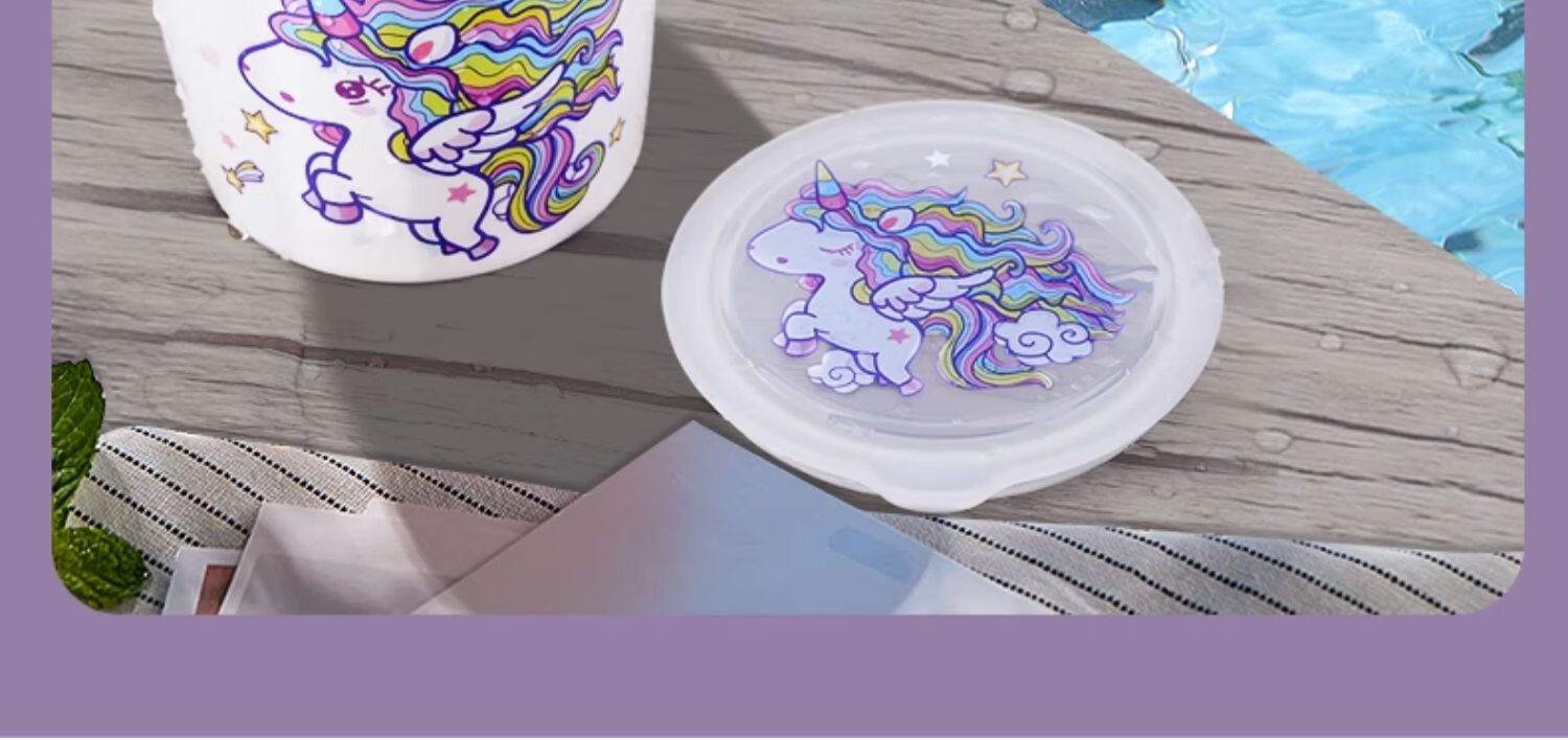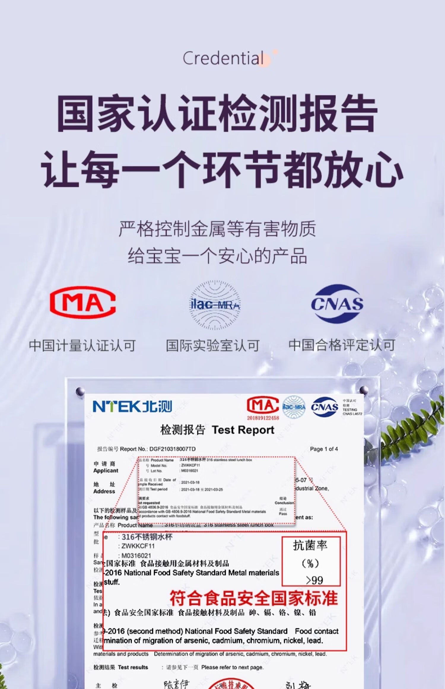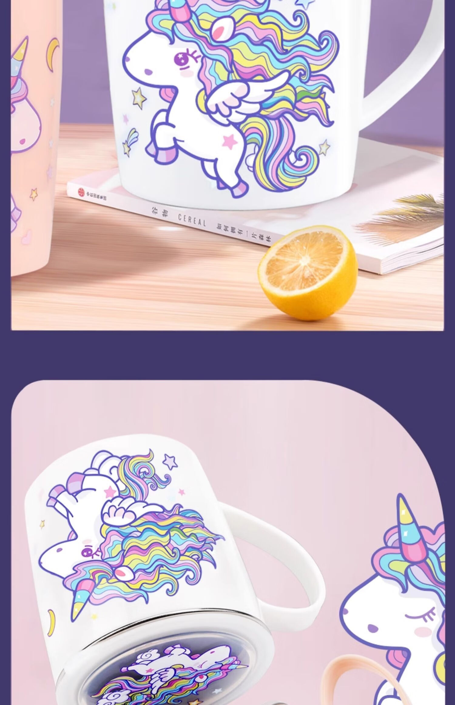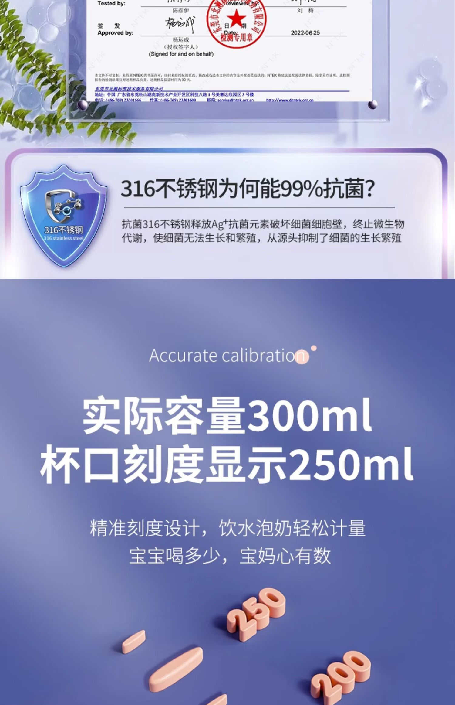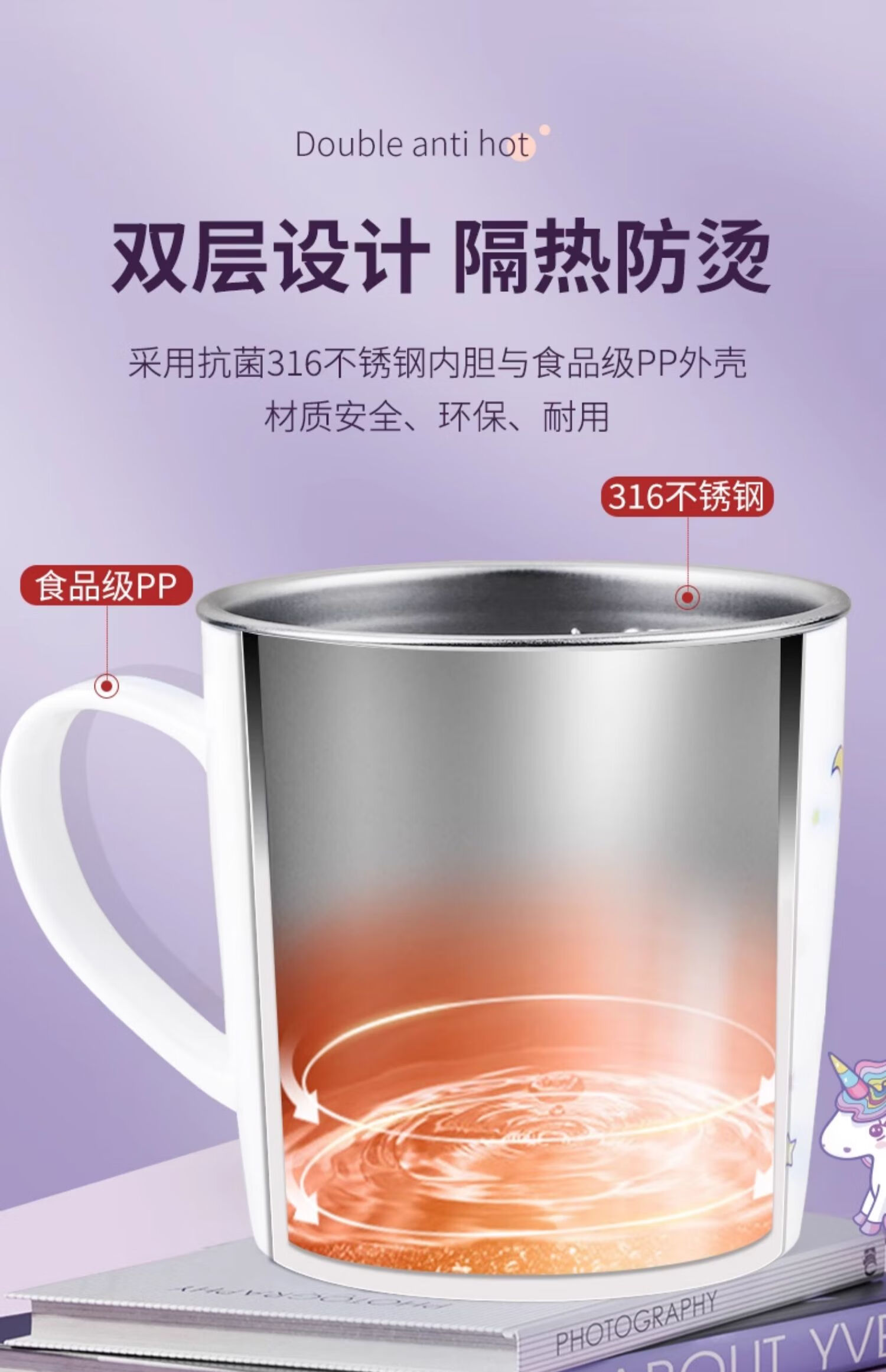 Children's water cup household 316 stainless steel cup with scale drinking cup kindergarten baby special open cup 316 white split unicorn 300ml