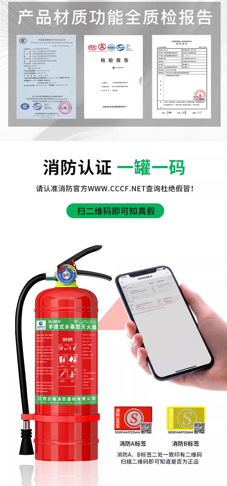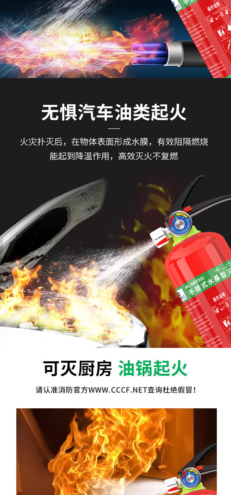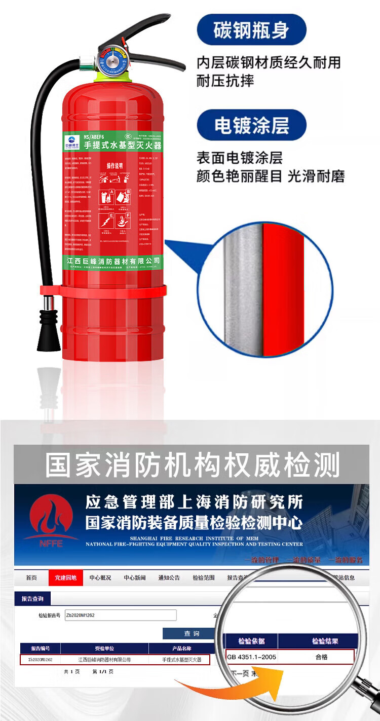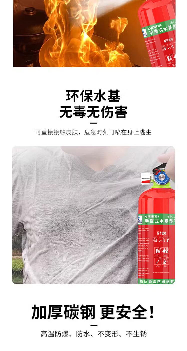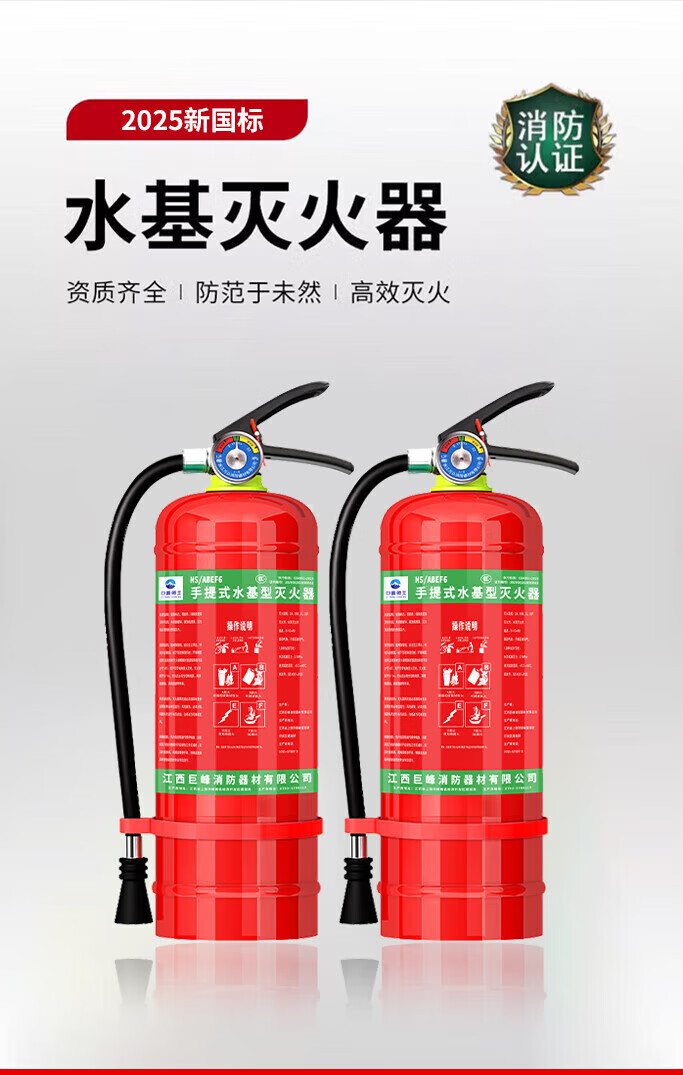 Jufeng Warrior New National Standard Water-based Fire Extinguisher 3L Warehouse Home Shop 3L Foam Type Fire Extinguisher 3C Certification 2025 Fire Extinguisher Box + 2 6-Liter Water-Based (Inspection Card Sent)