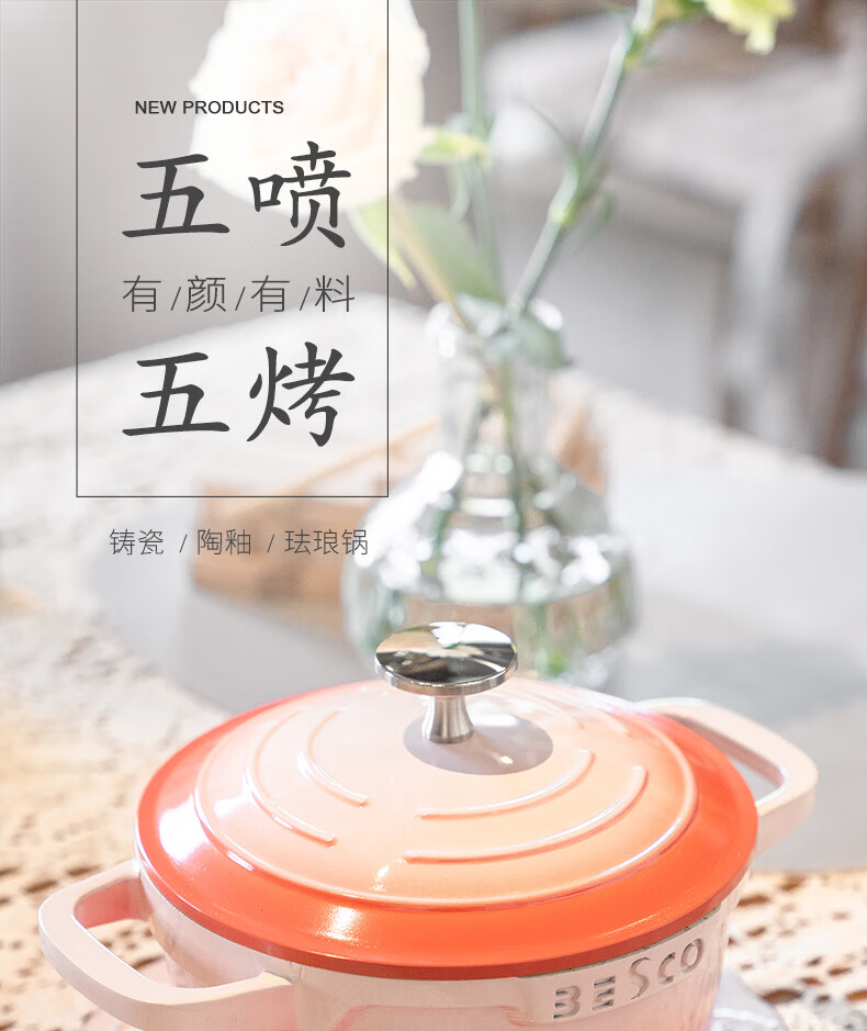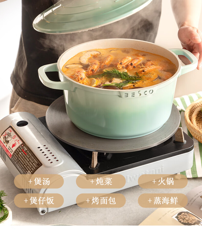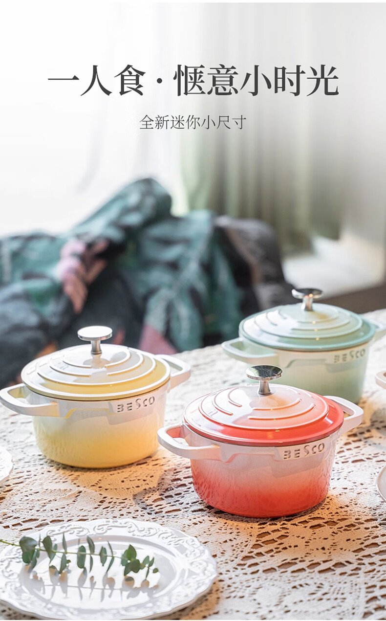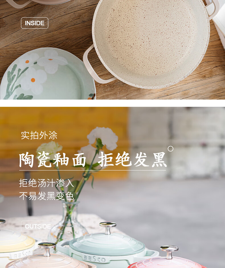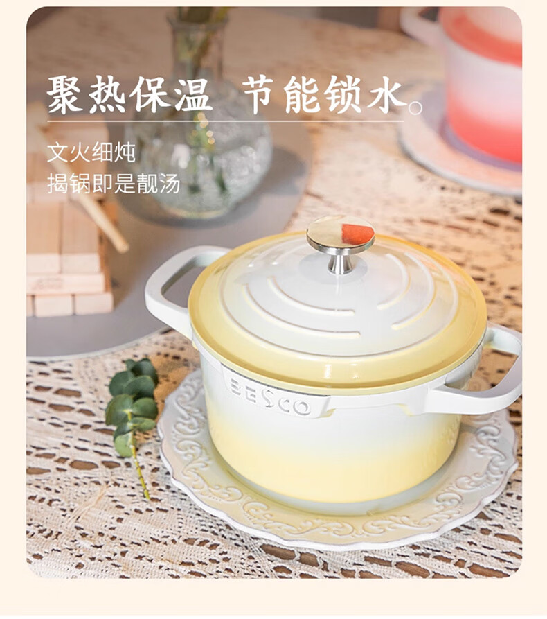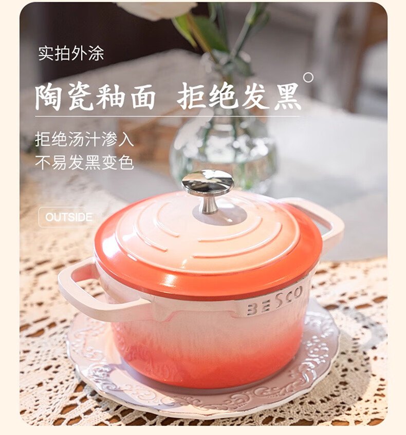 Enamel pot household non-stick pot double-ear ceramic soup pot stew pot cooking pot gas stove induction cooker universal soup pot gradient peach color 24cm