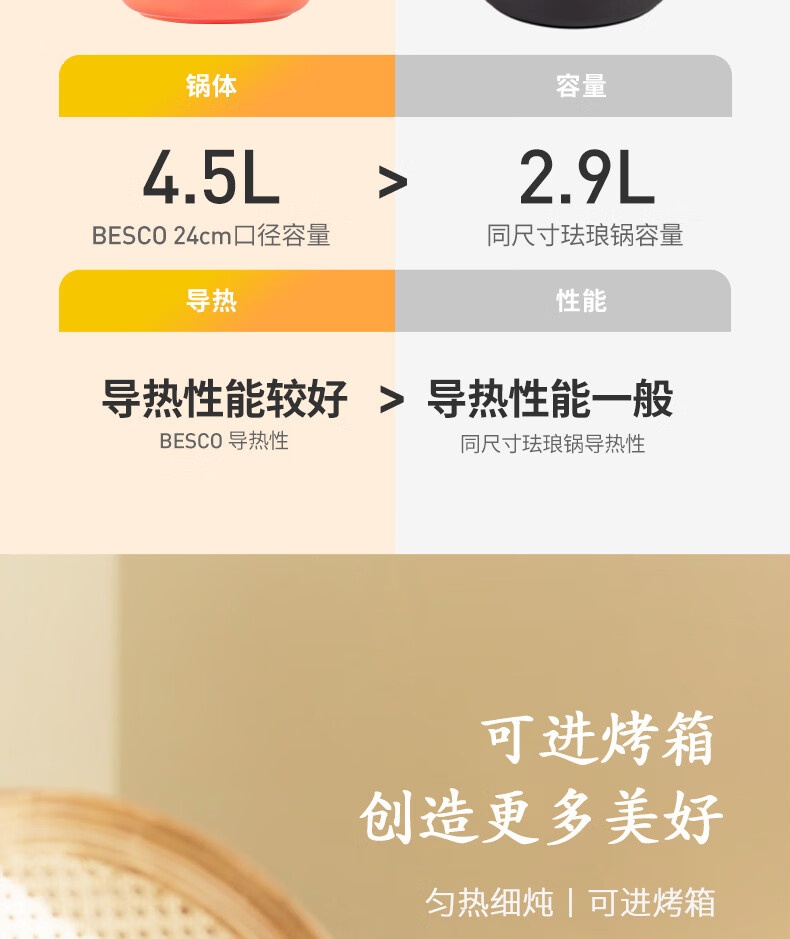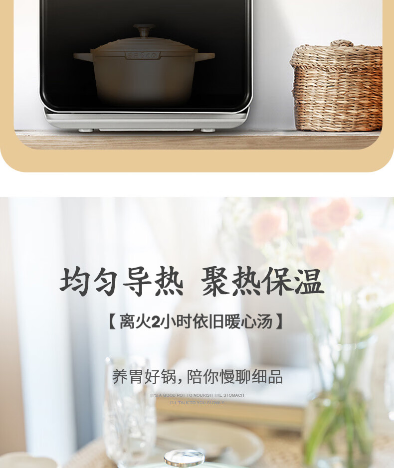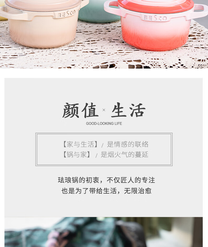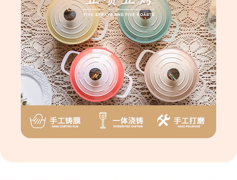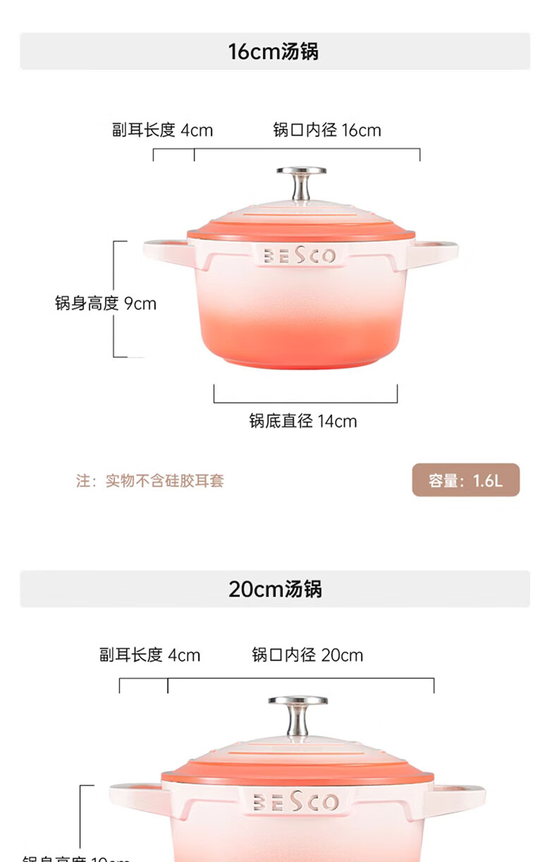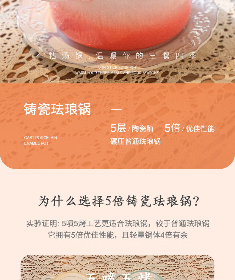 Enamel pot household non-stick pot double-ear ceramic soup pot stew pot cooking pot gas stove induction cooker universal soup pot gradient peach color 24cm