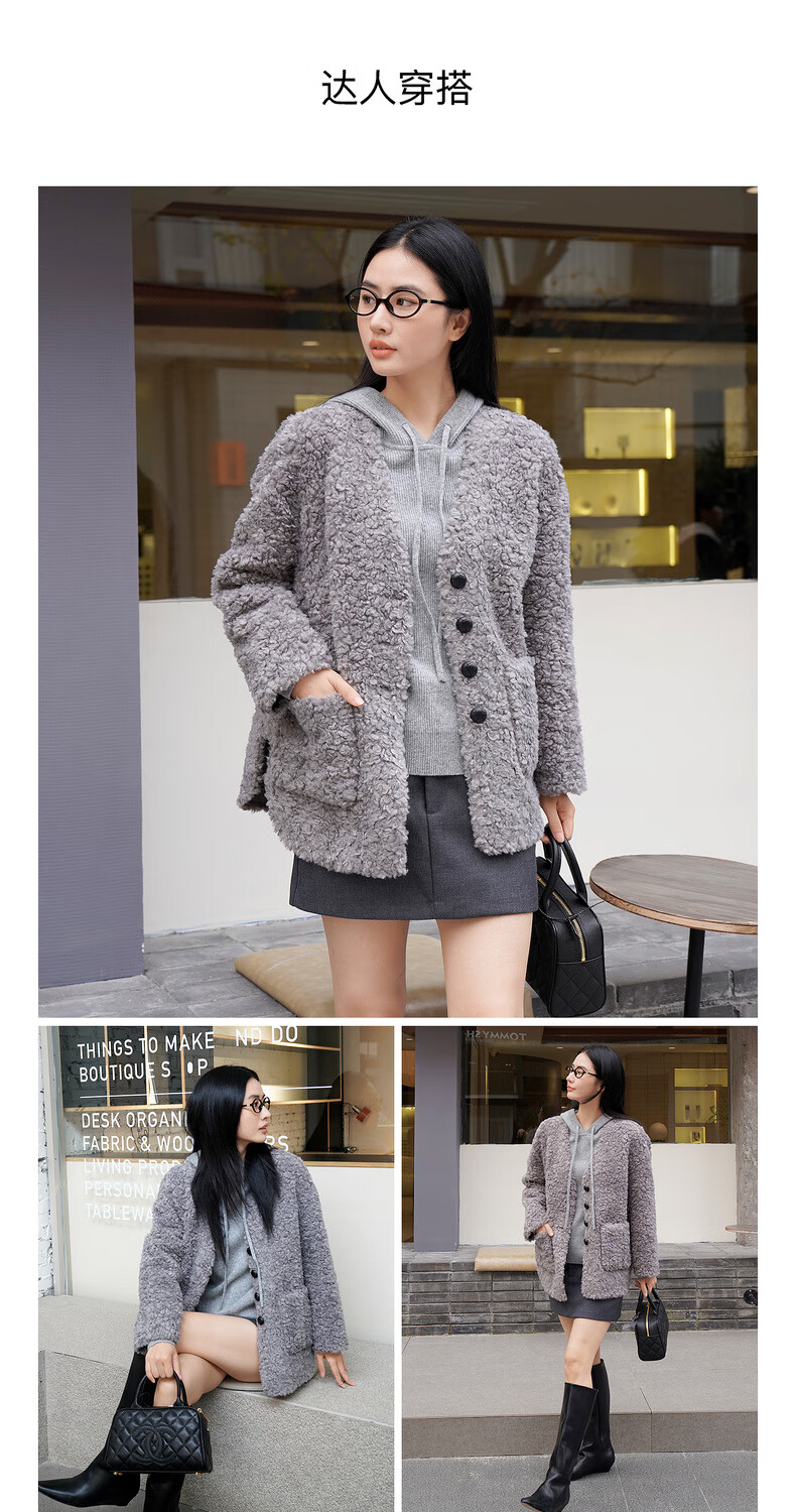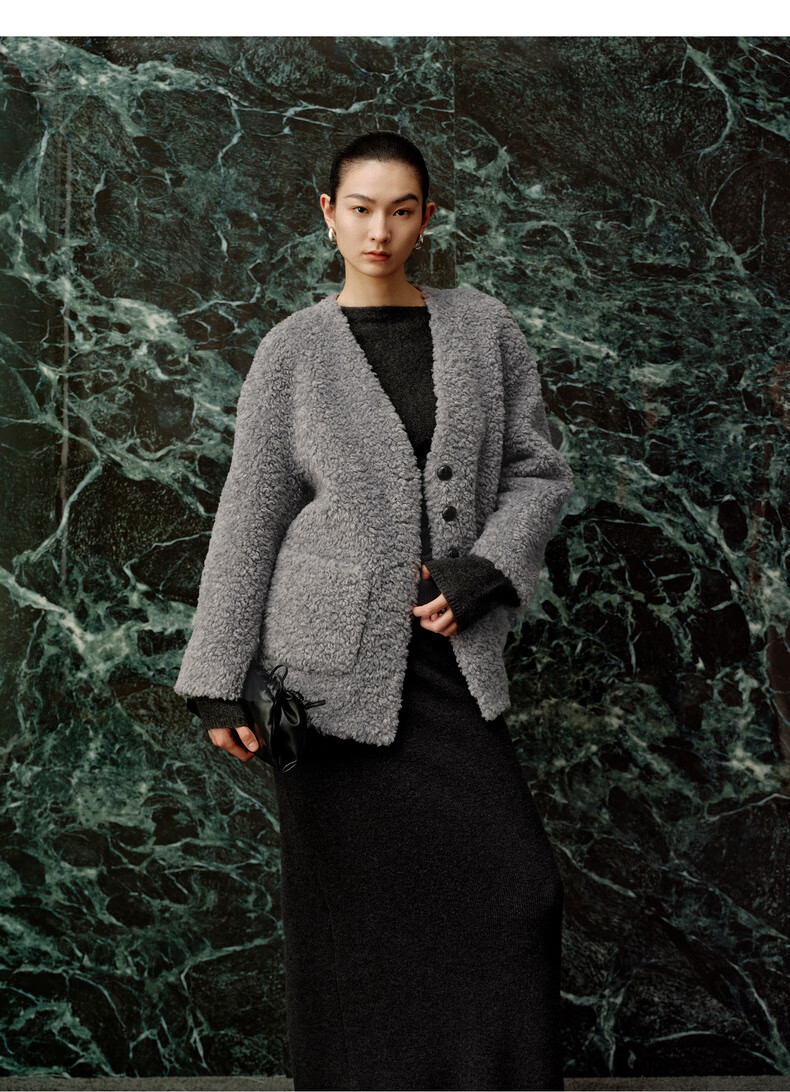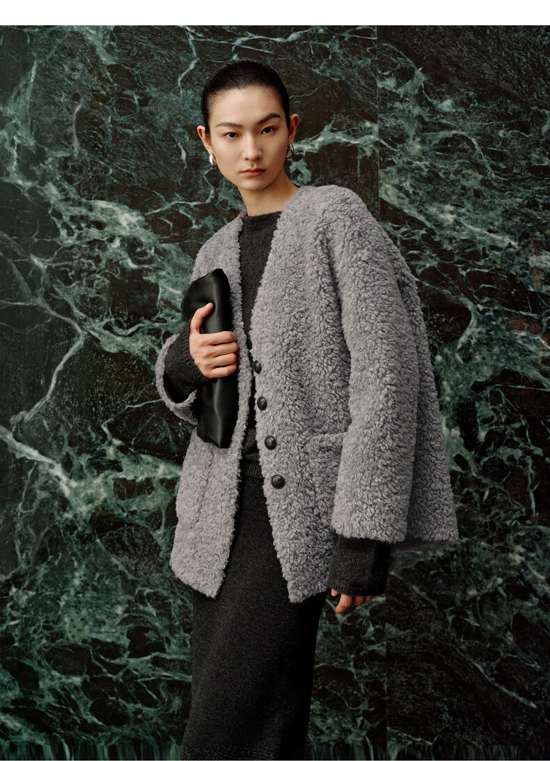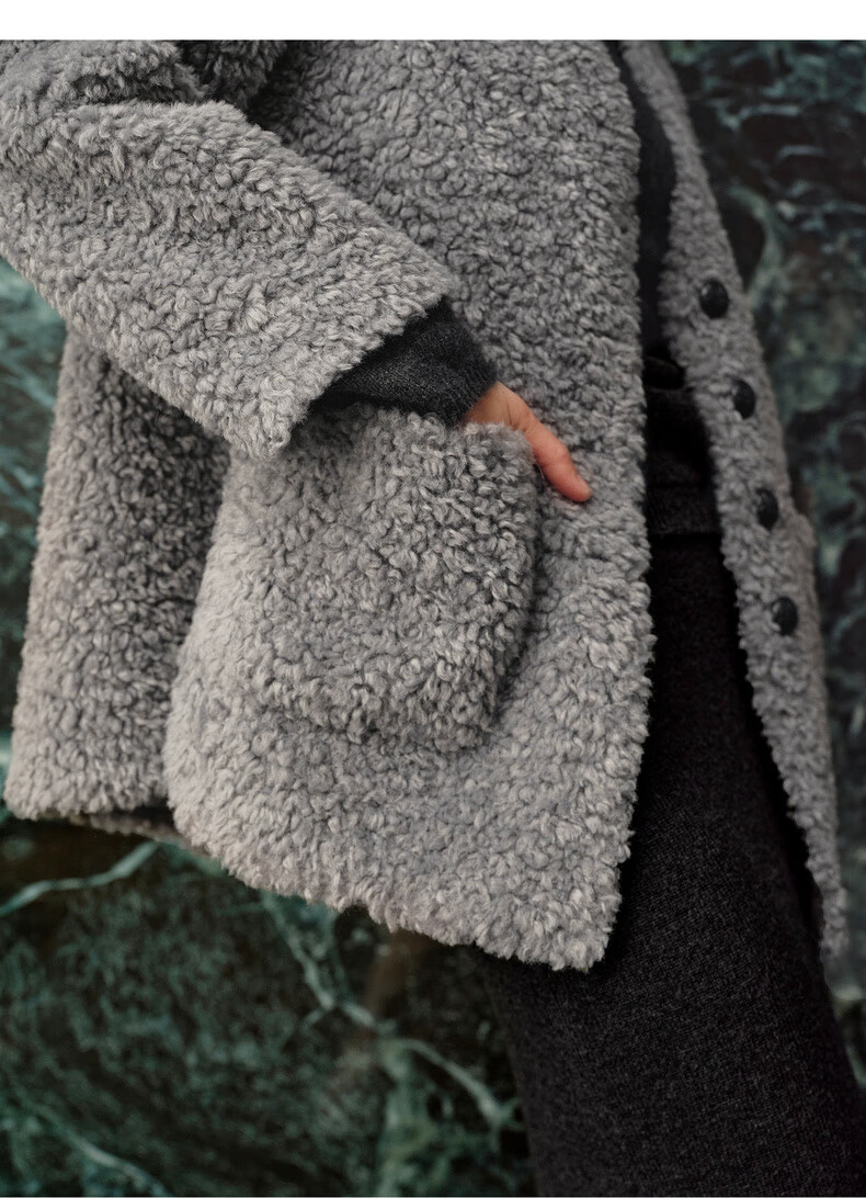 Enos Yashi Shopping Mall Same Style 2025 Winter New Commuting Granular Velvet Profile Short Woolen Jacket Women 41031005 Feather Gray M