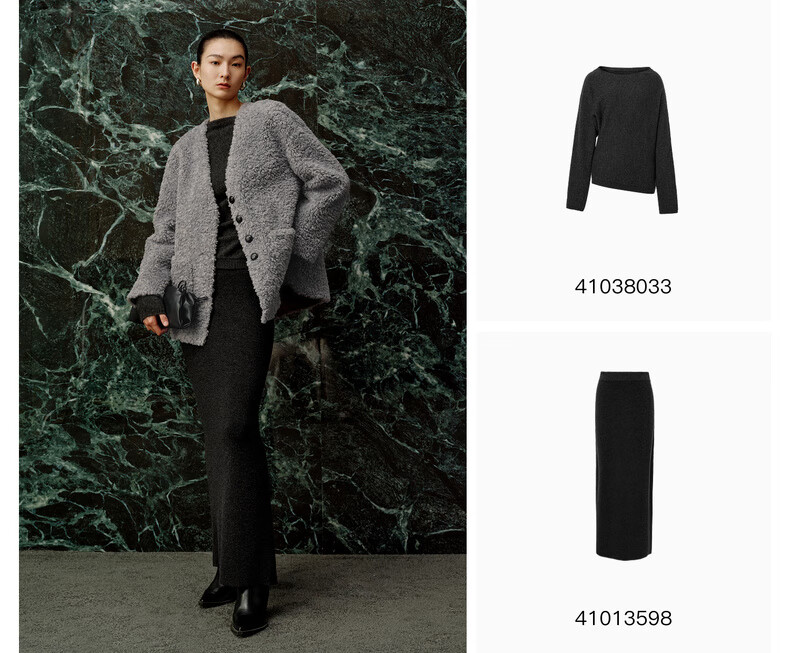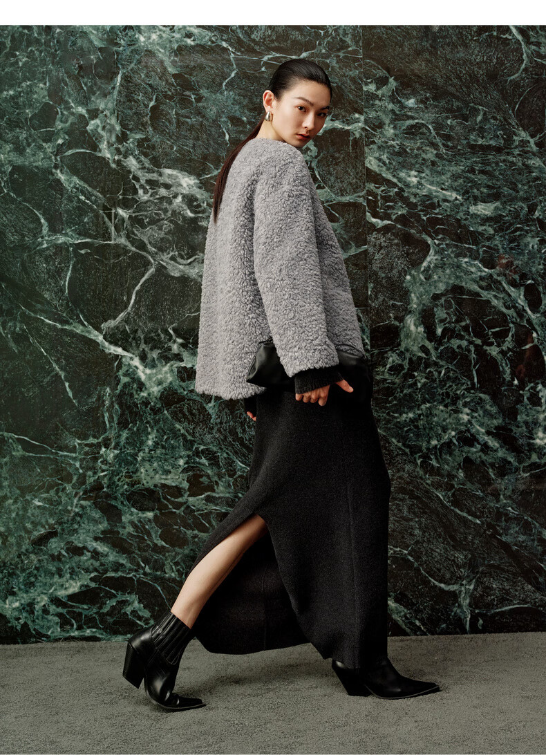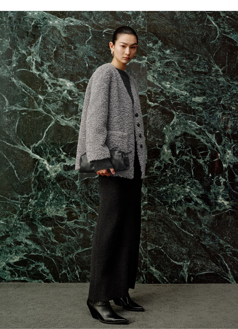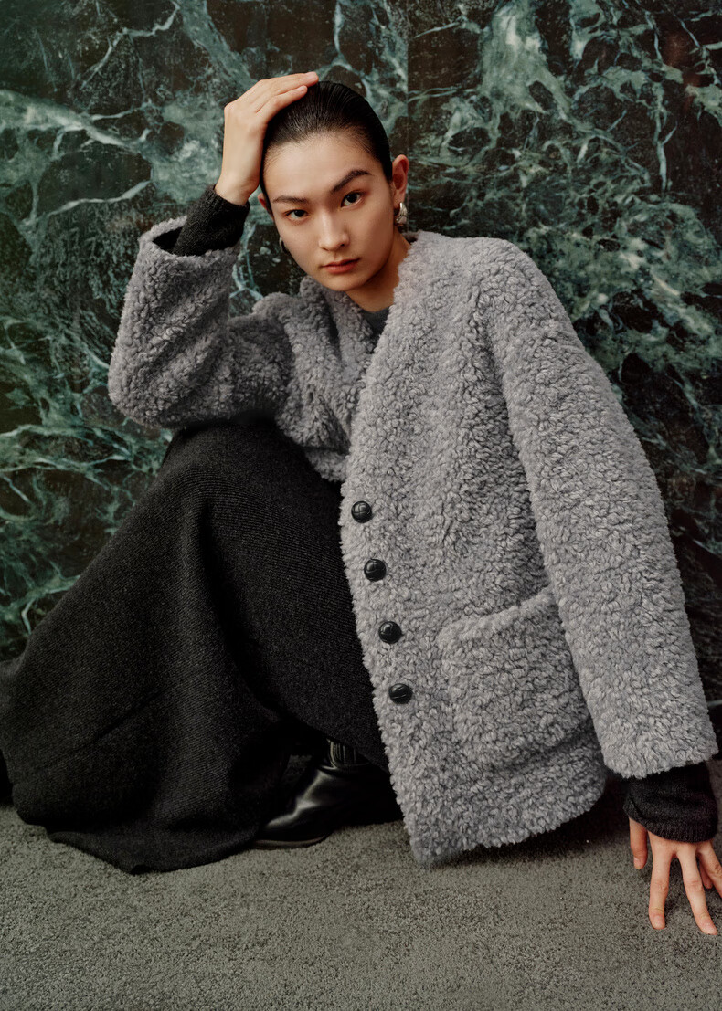 Enos Yashi Shopping Mall Same Style 2025 Winter New Commuting Granular Velvet Profile Short Woolen Jacket Women 41031005 Feather Gray M