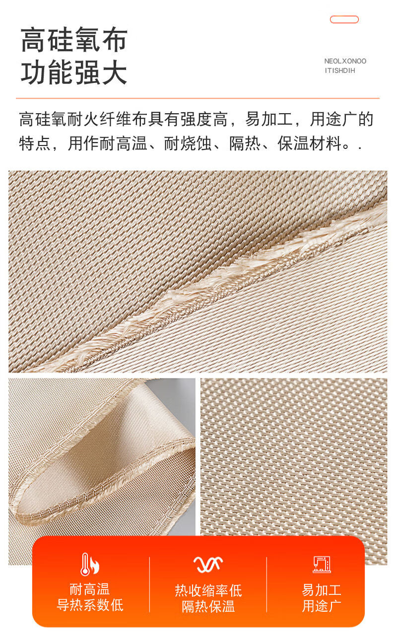 High silica cloth flame retardant and high temperature resistant Class A fire retardant cloth welded fire curtain high strength tensile non-stick fire blanket high silica cloth 1.3mm thick * 1 meter * 1 meter