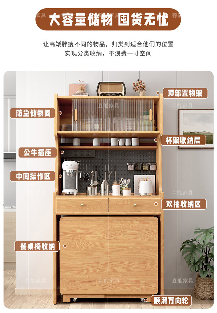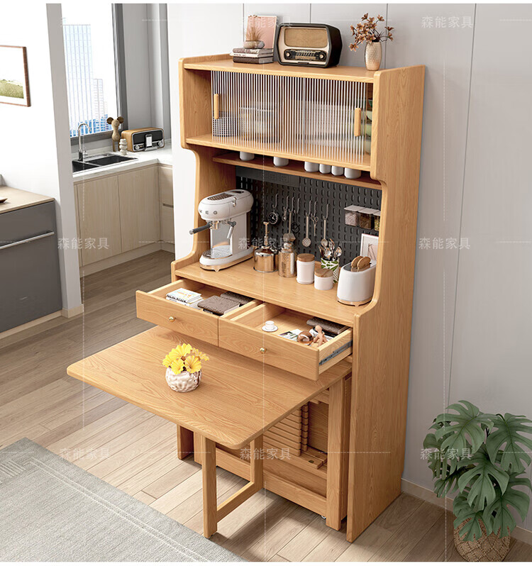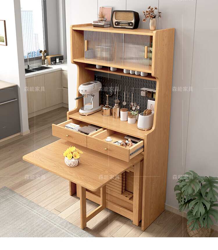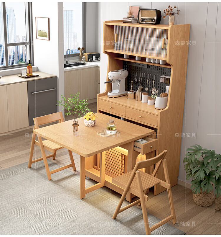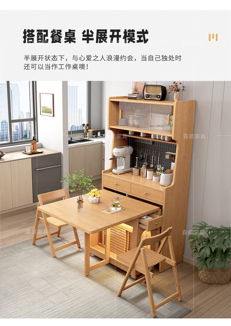 Yunbin Guangdong Foshan sideboard solid wood sideboard dining table integrated high cabinet small apartment household storage cabinet foldable solid wood color 87cm all solid wood sideboard